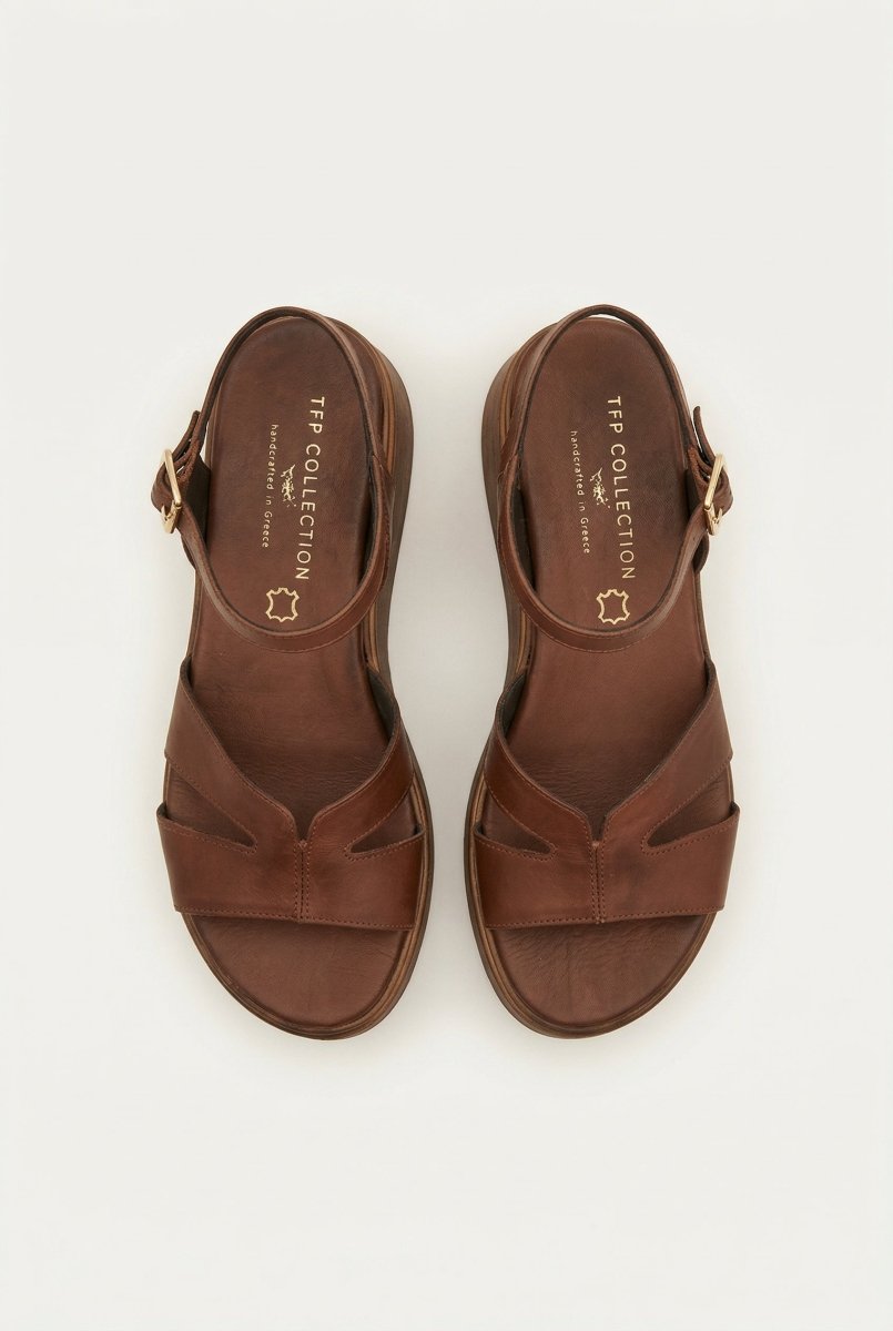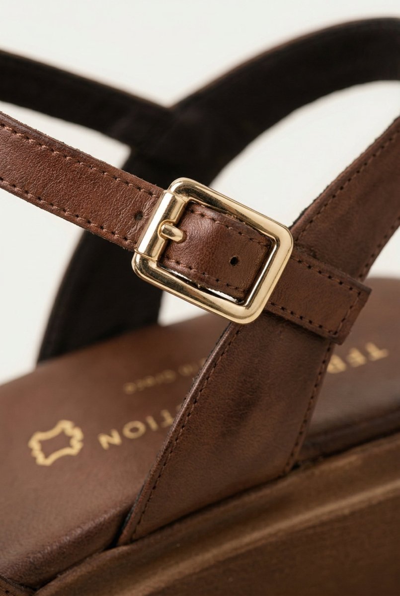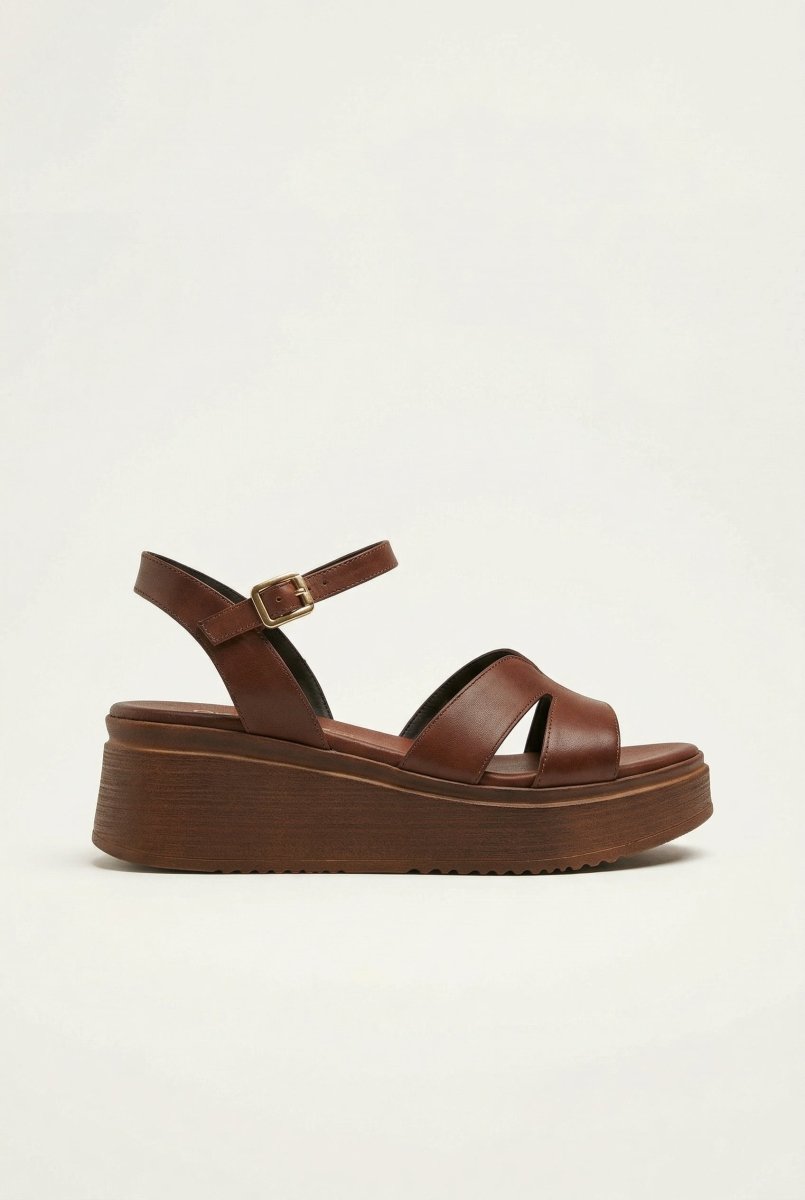 Leather Flatform Sandals - Brown Matte