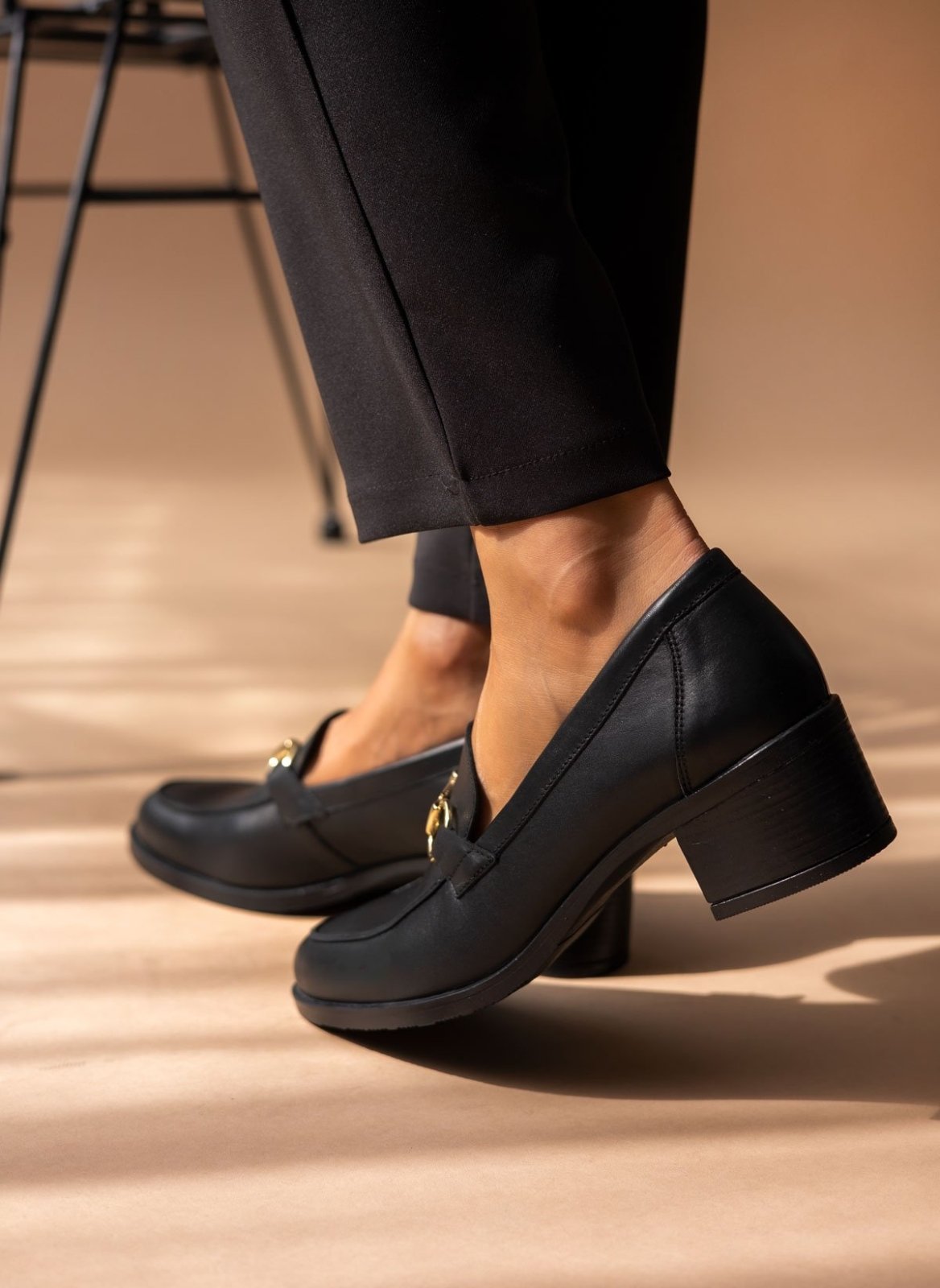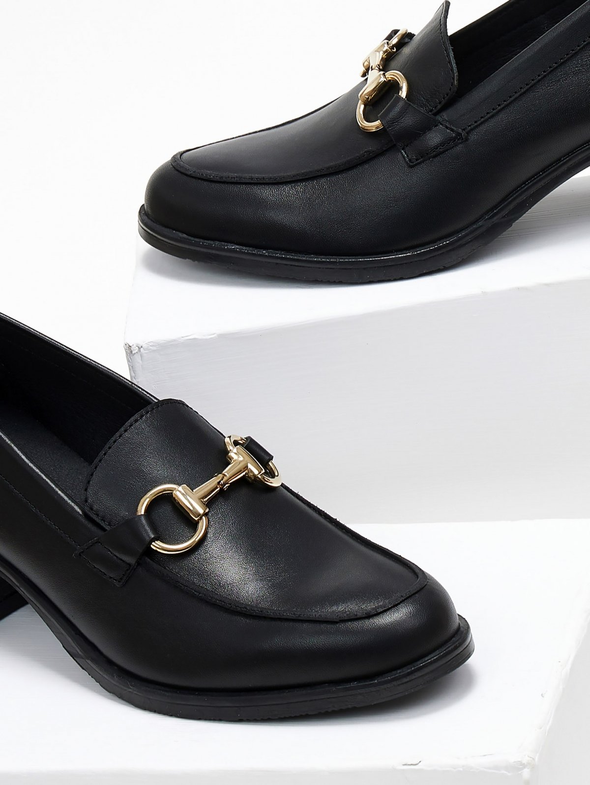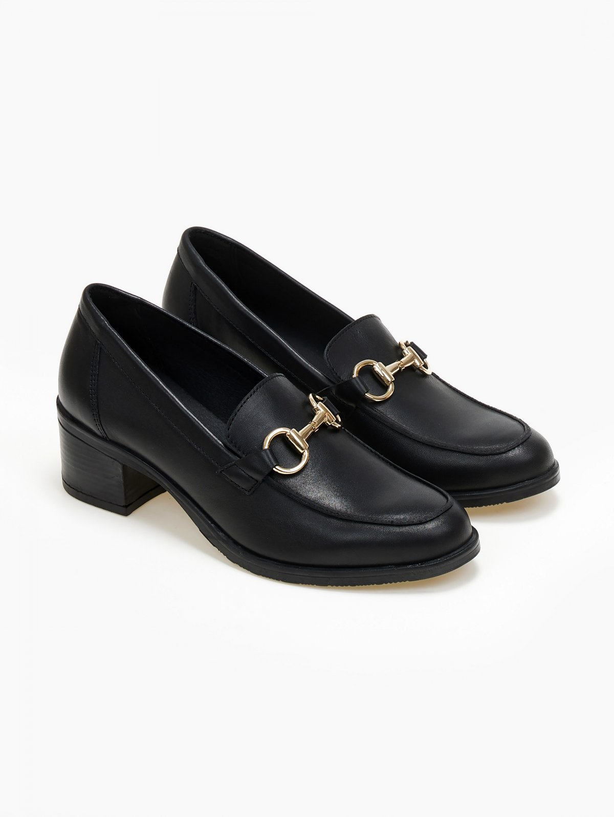 Loafers δερμάτινα με μεταλλική λεπτομέρεια Ragazza 0465-Α - Μαύρο