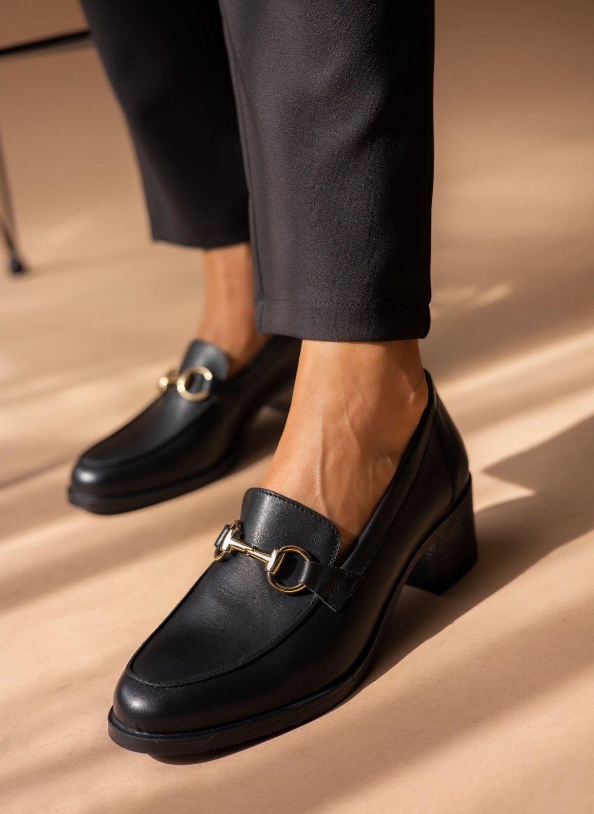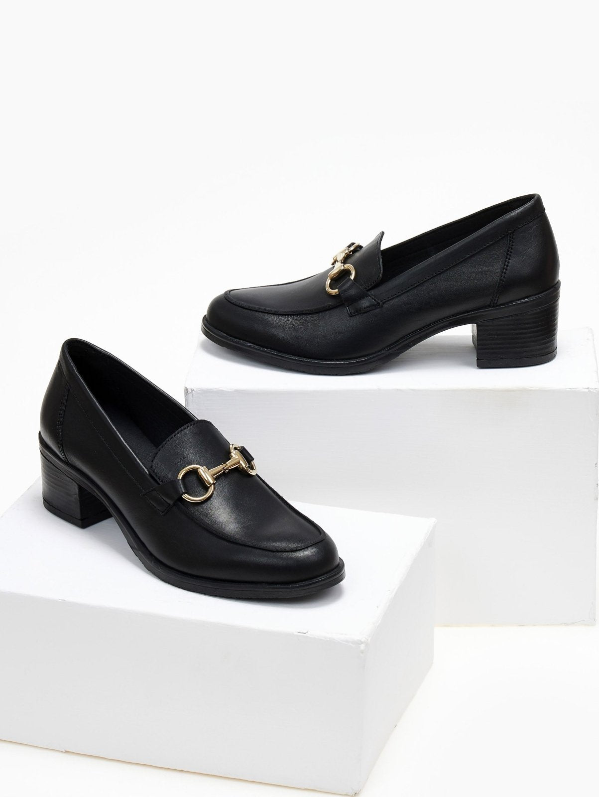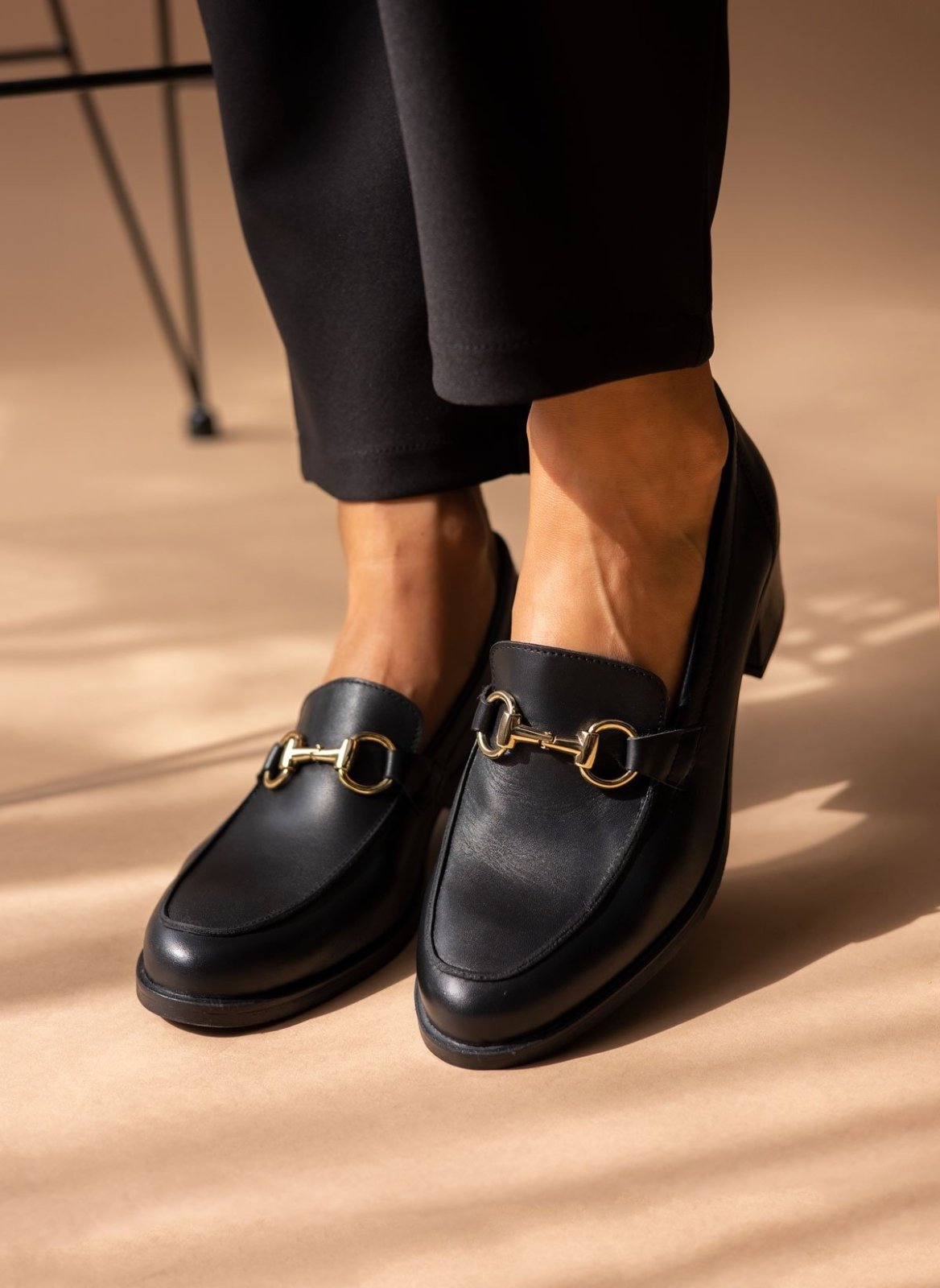 Loafers δερμάτινα με μεταλλική λεπτομέρεια Ragazza 0465-Α - Μαύρο