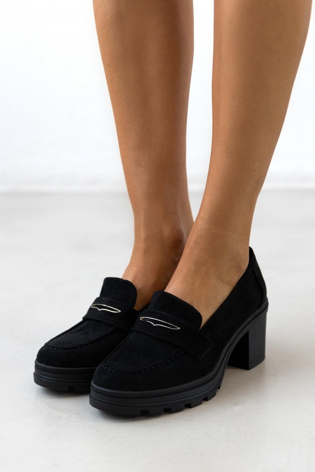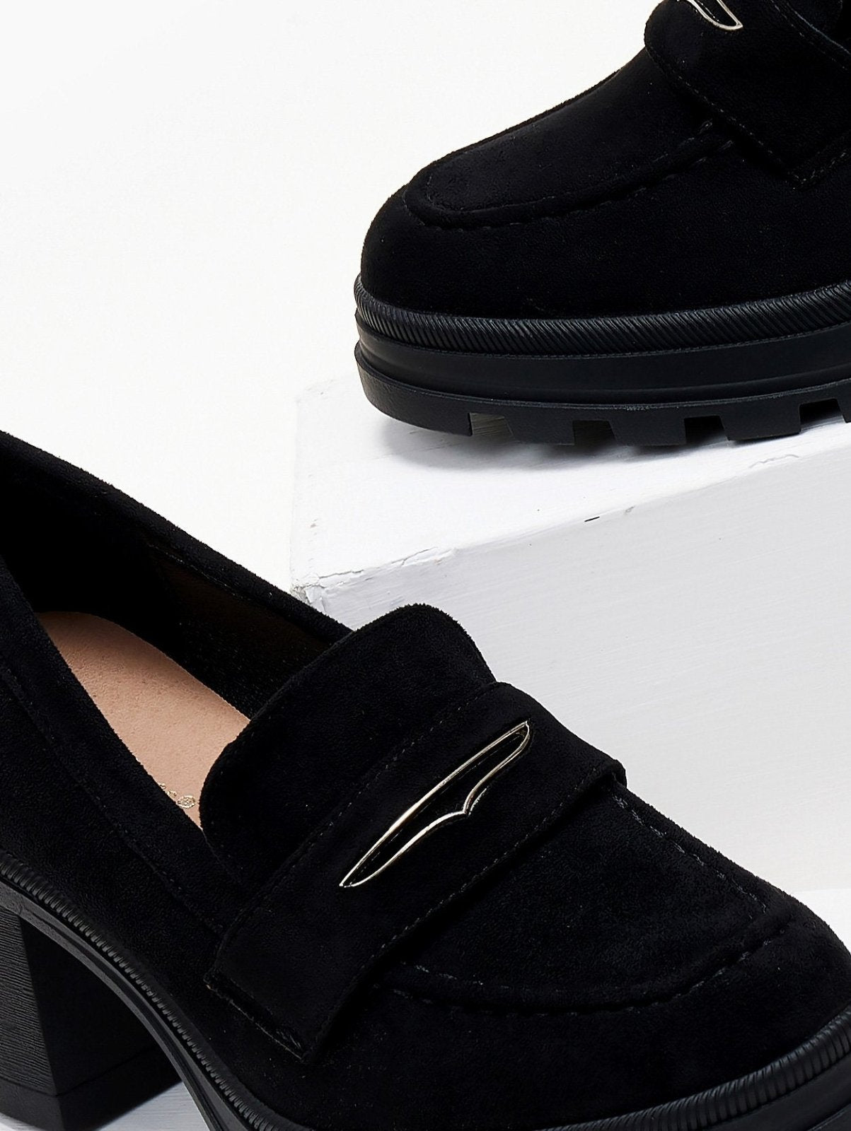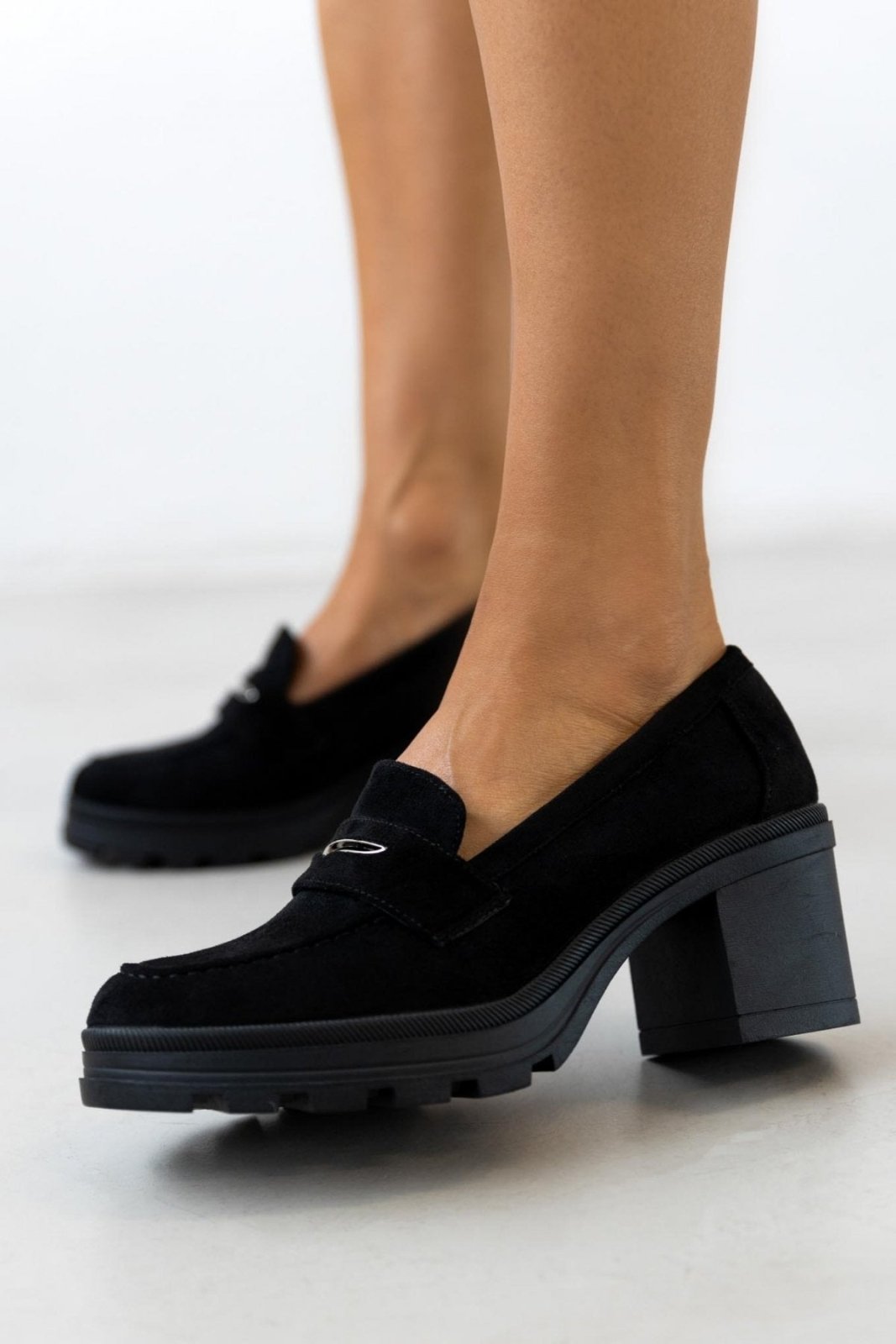 Loafers suede με τακούνι. Έχουν chunky σόλα. Cut σχέδιο στο πάνω μέρος. Μαλακός πάτος.