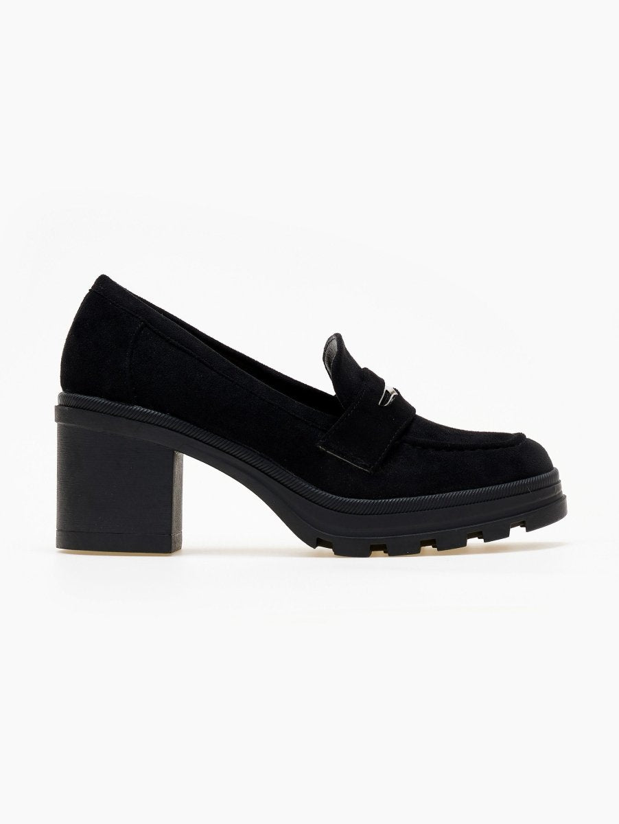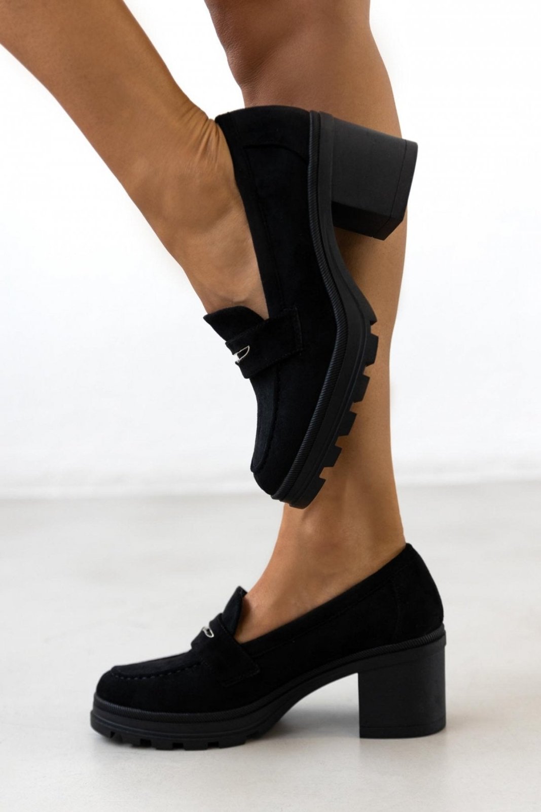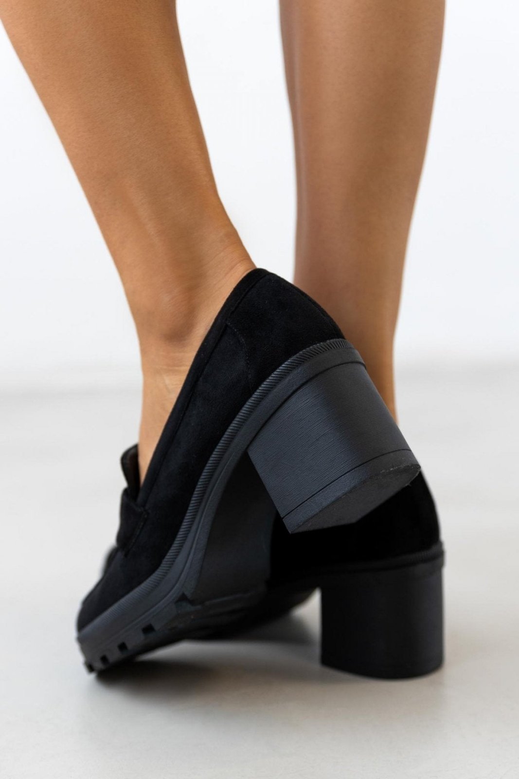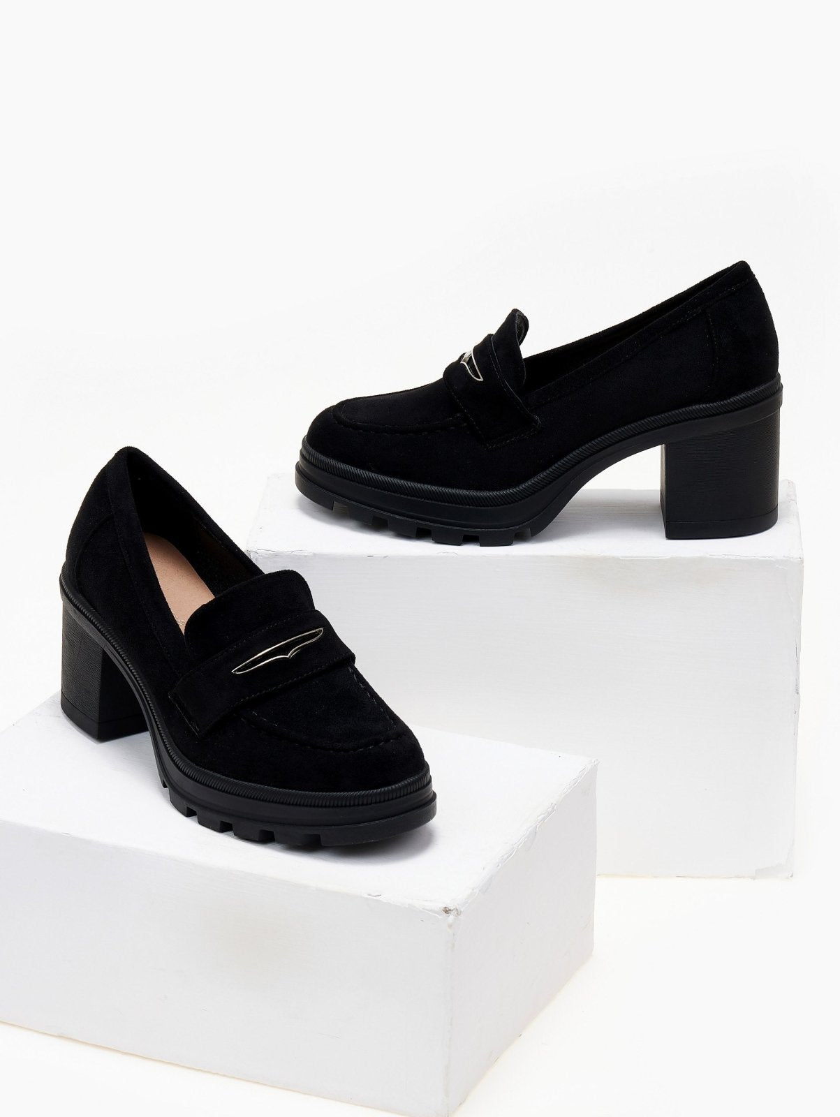 Loafers suede με τακούνι. Έχουν chunky σόλα. Cut σχέδιο στο πάνω μέρος. Μαλακός πάτος.