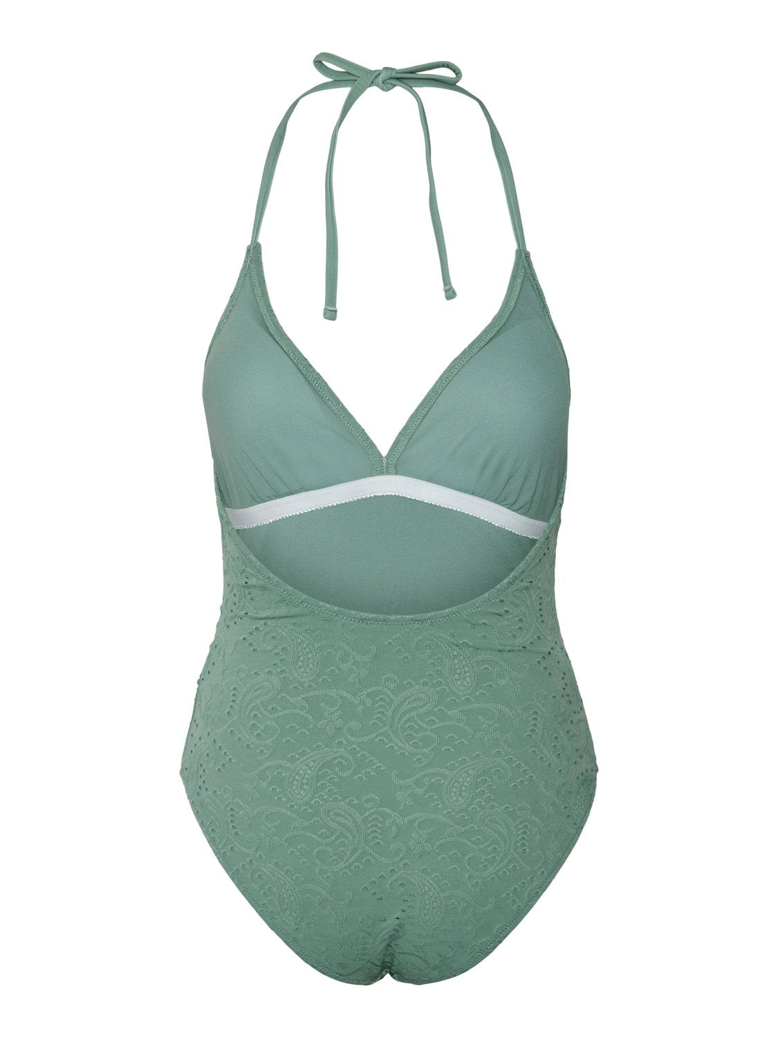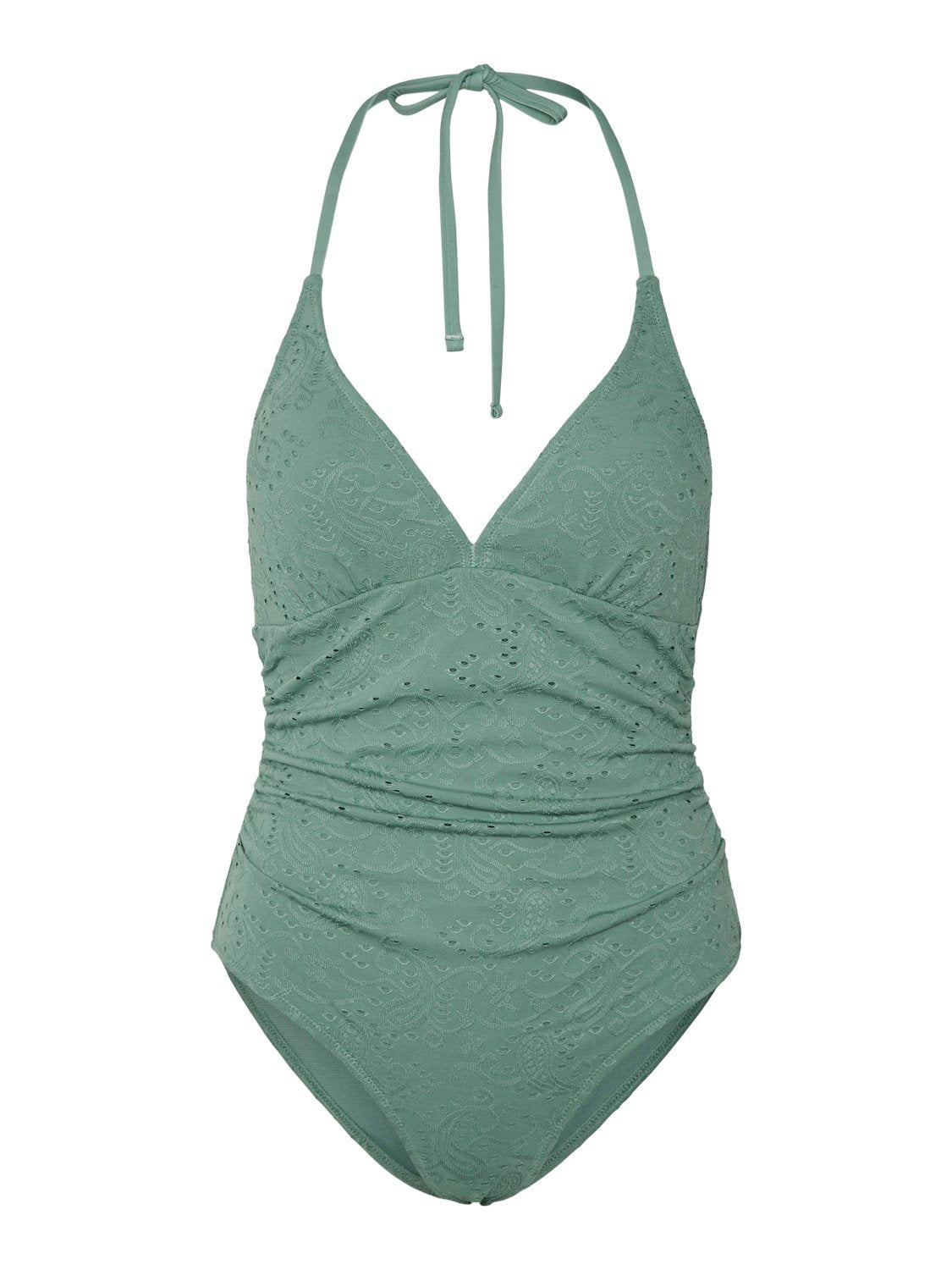 Μαγιό ολόσωμο Vero Moda. Έχει ανάγλυφο διάτρητο σχέδιο. Σχέδιο σούρες στο πλάι. Δένει με κορδόνι στο λαιμό.