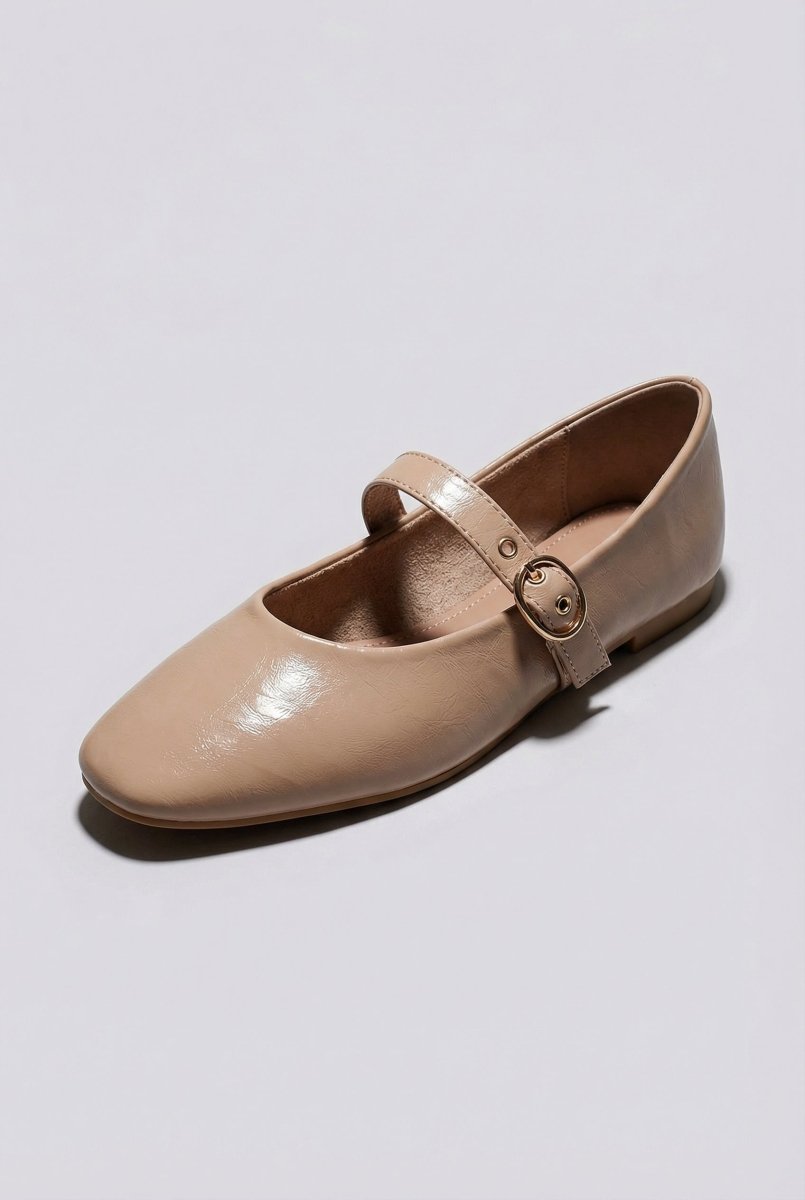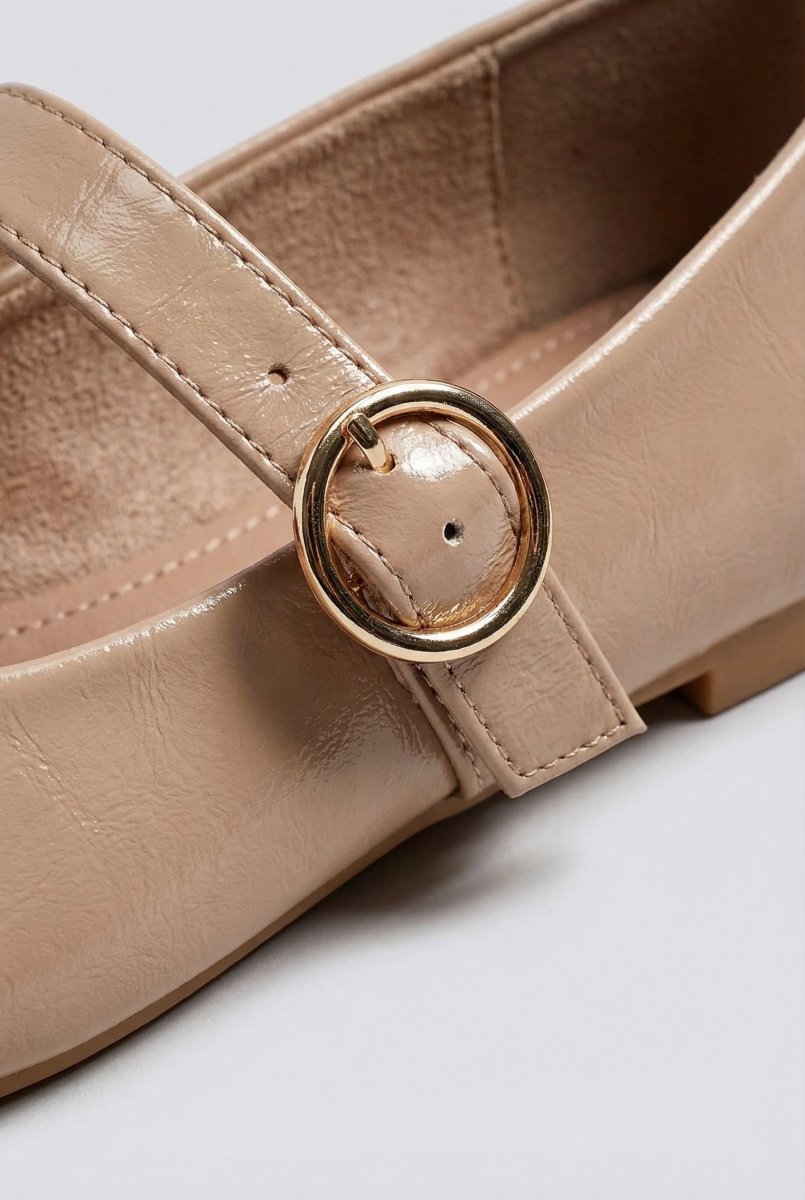 Mary Jane Ballet Flats With Buckle - Nude