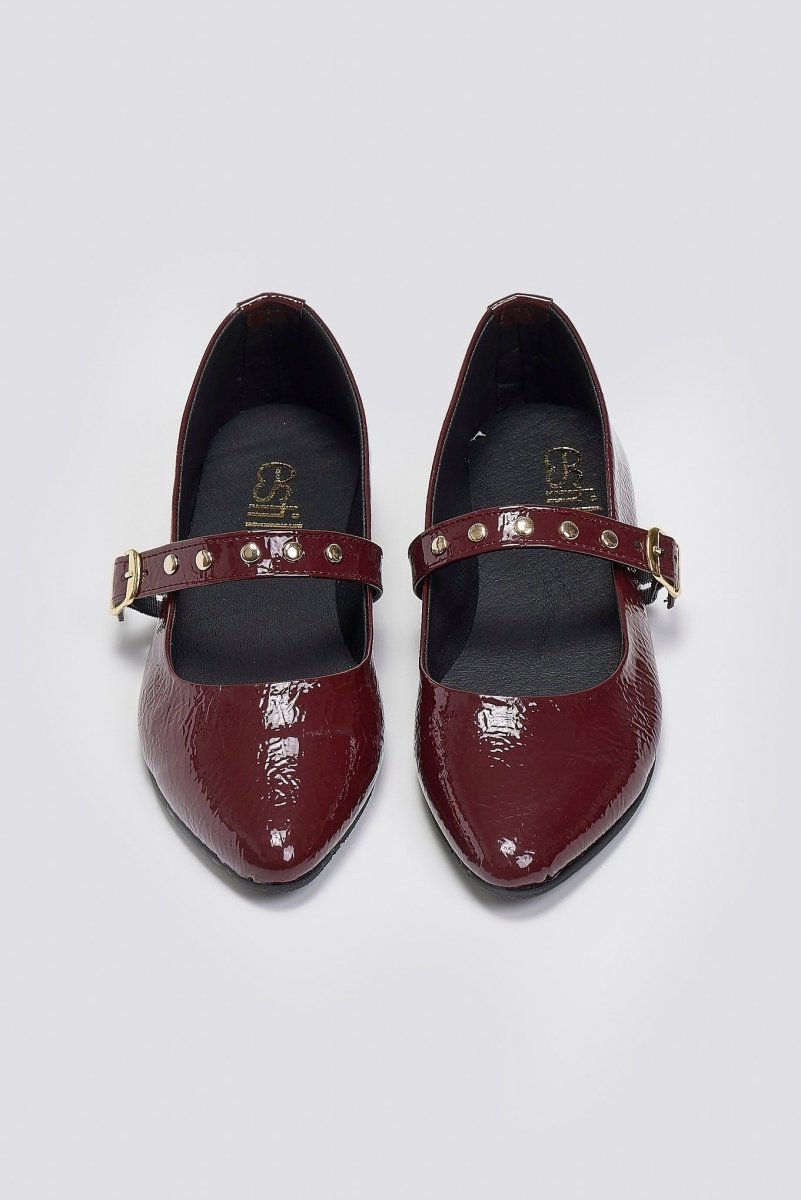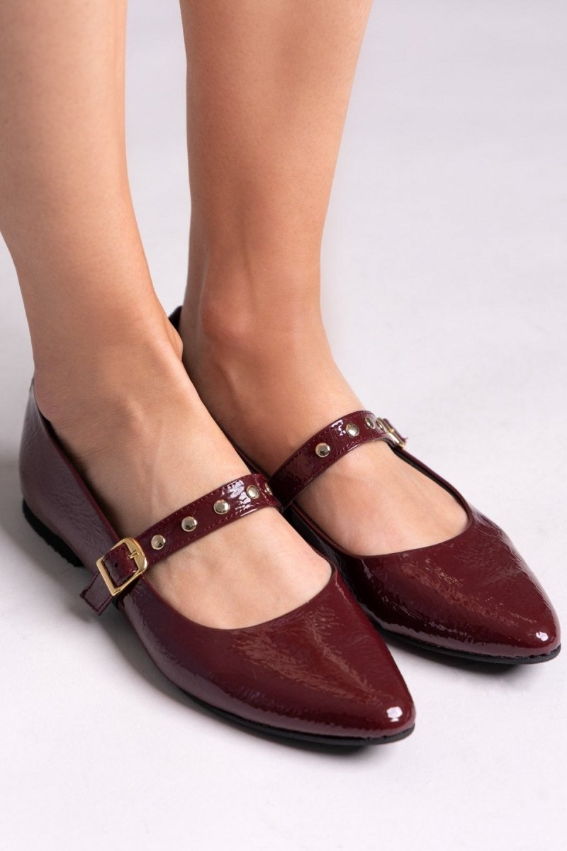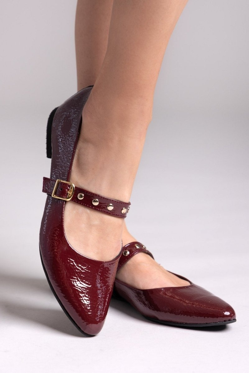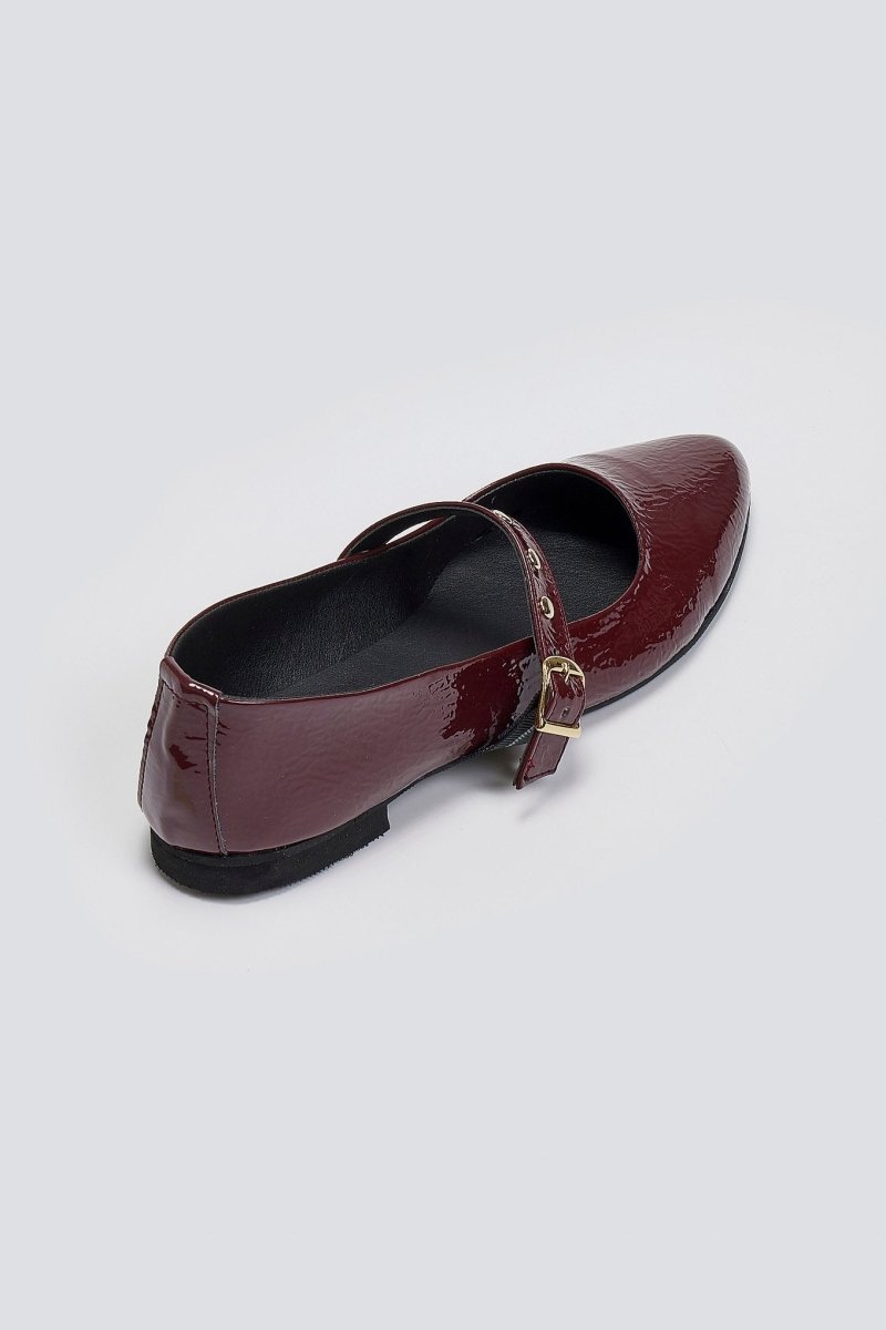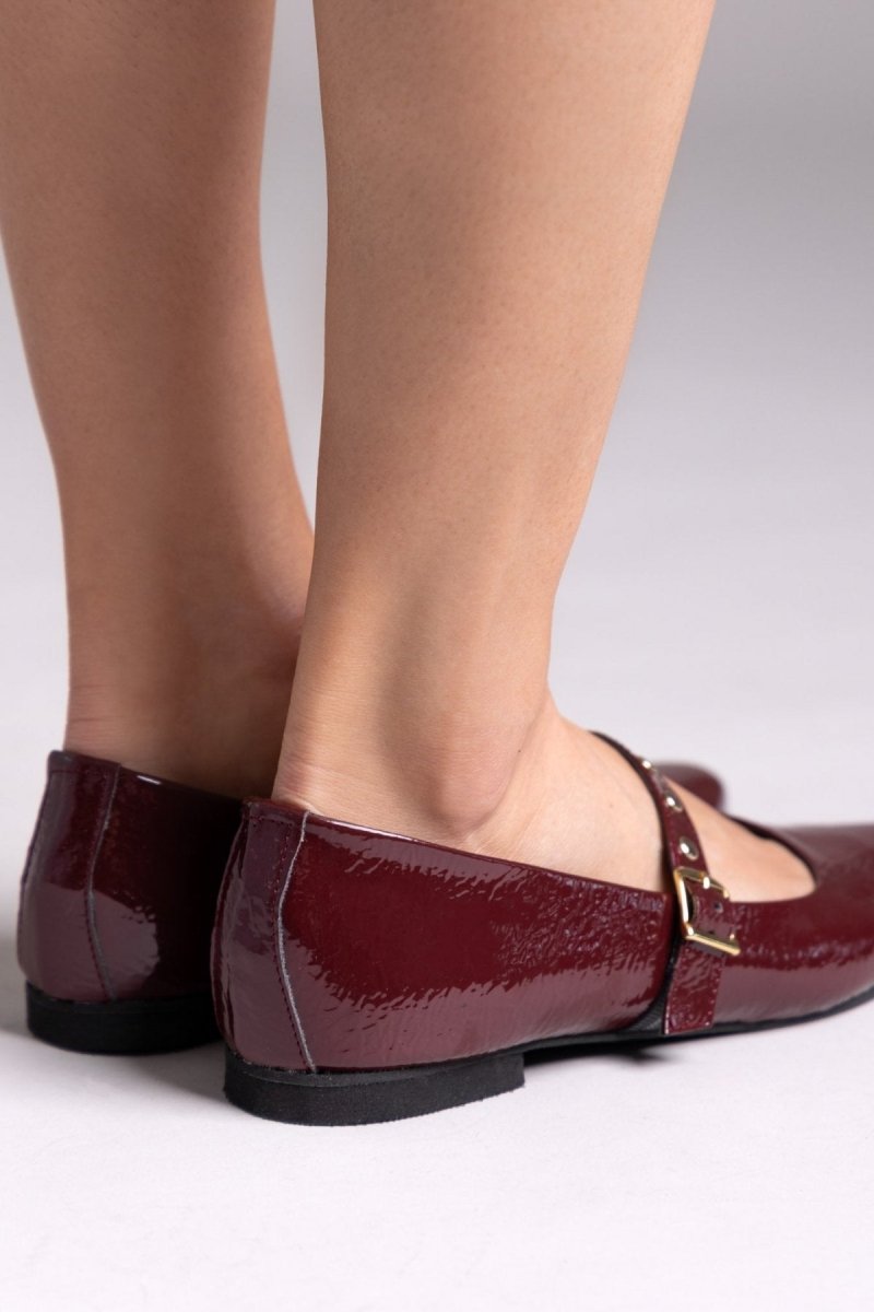 Mary Janes λουστρίνι ESTIL. Λουράκι με τρουκς και μεταλλικό κούμπωμα στο πλάι. Δερμάτινος πάτος. Ελληνικής κατασκευής.