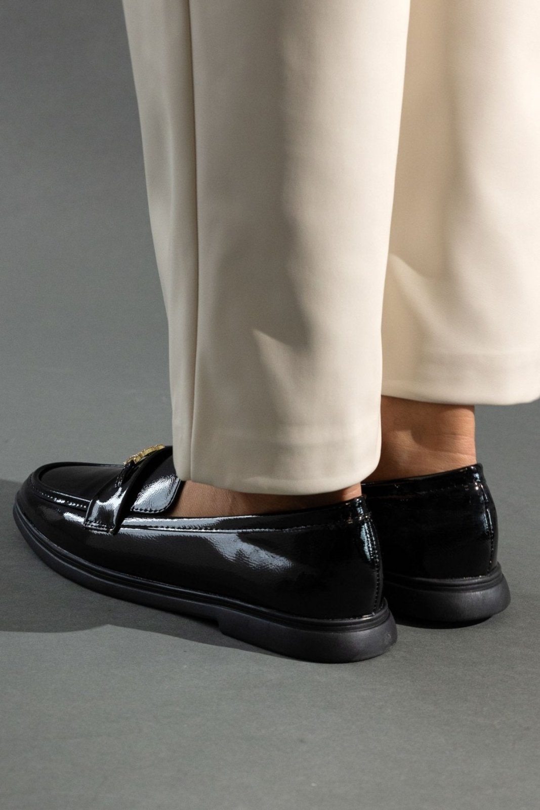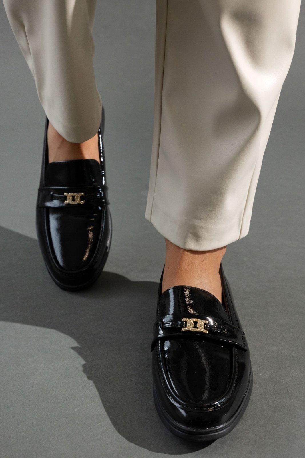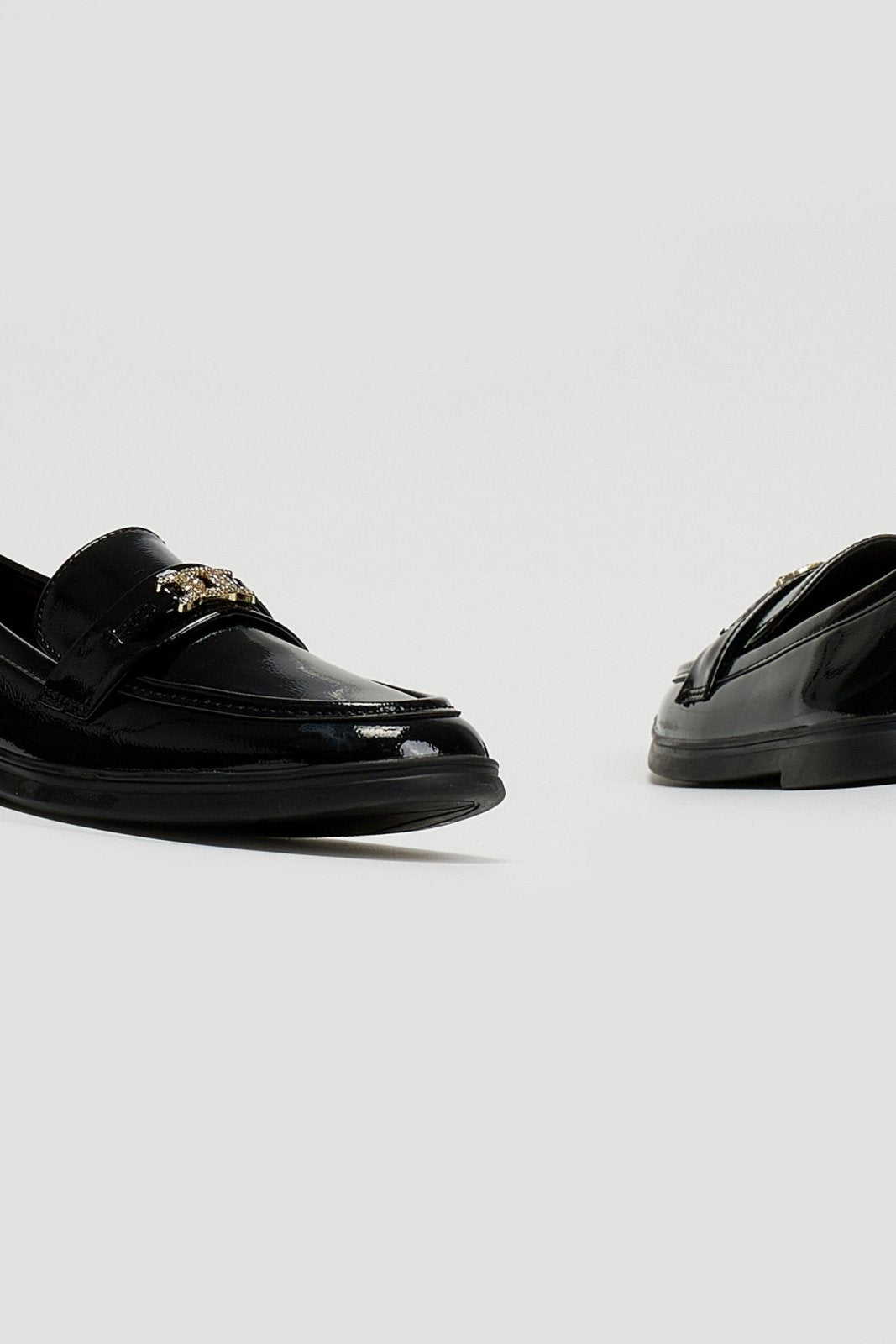 Μοκασίνια φλατ λουστρίνι ERYNN. Διακριτικό μεταλλικό διακοσμητικό με στρας στο επάνω μέρος. Μαλακή σόλα από λάστιχο.