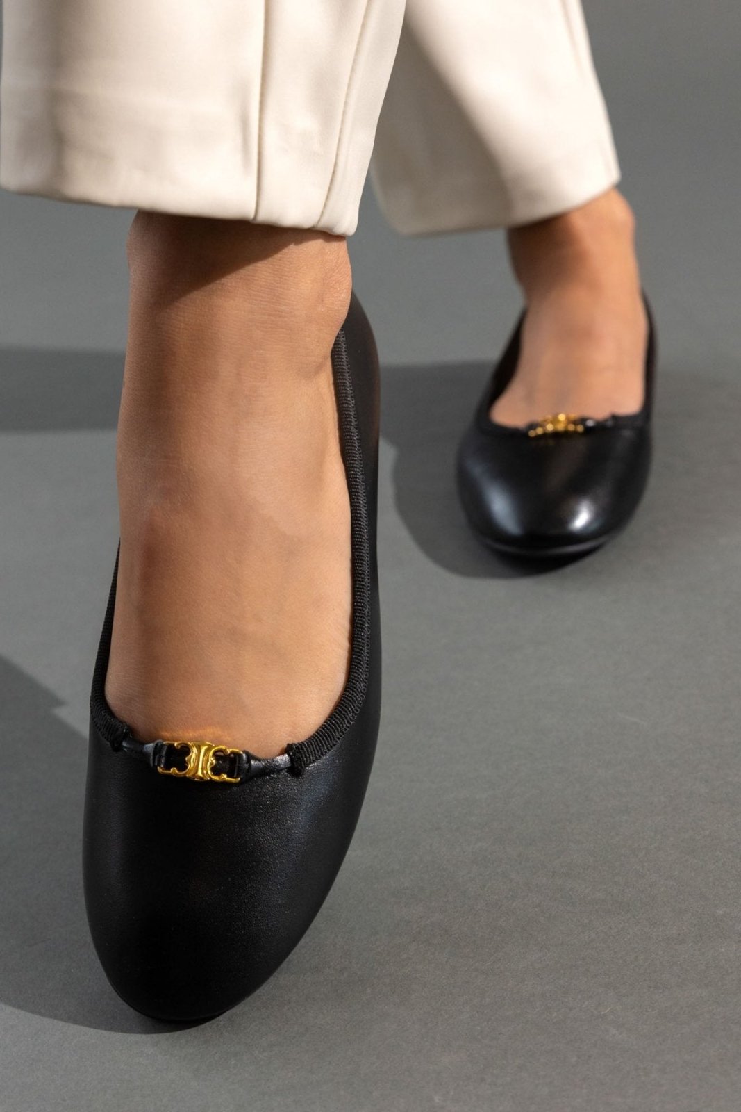 Μπαλαρίνες φλατ basic ERYNN. Έχουν διακριτικό μεταλλικό διακοσμητικό. Στρογγυλή γραμμή.