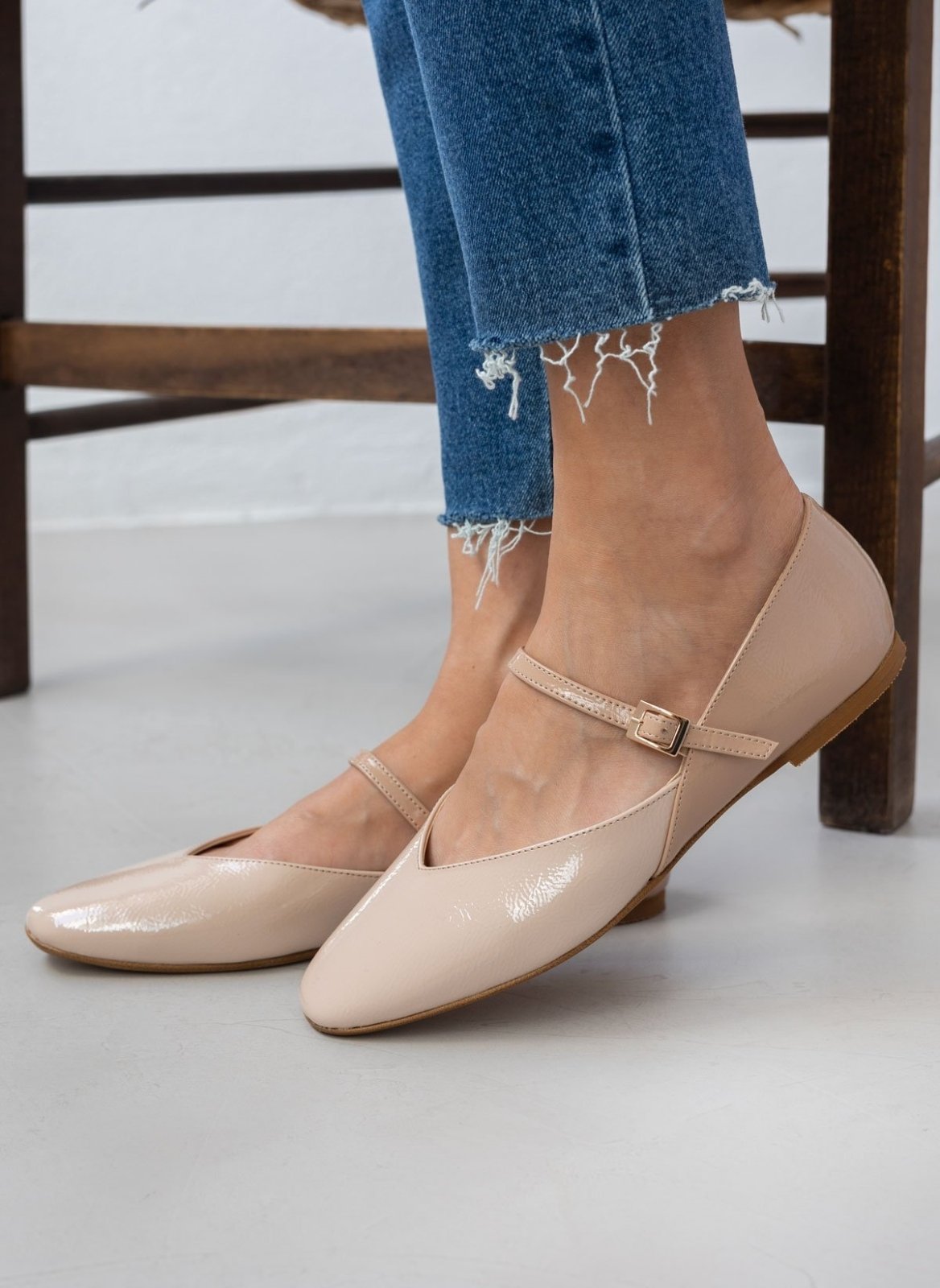 Μπαλαρίνες με λουράκι λουστρίνι TFP - Nude