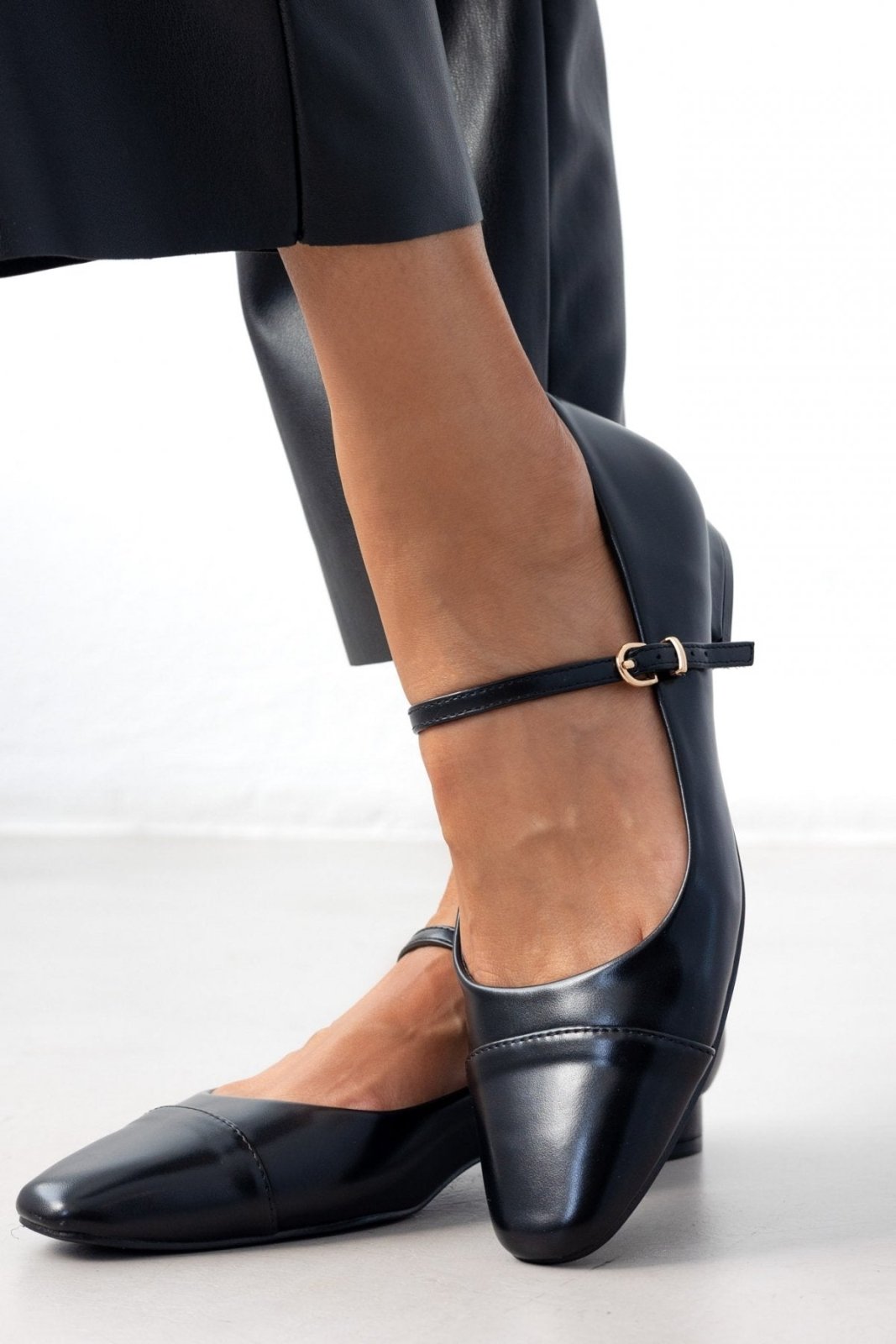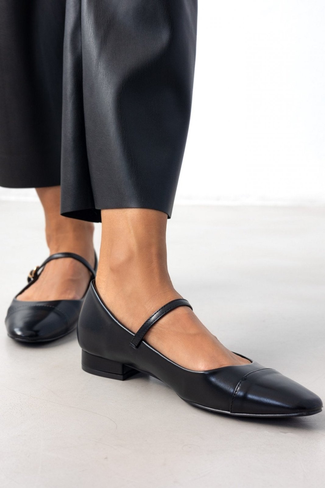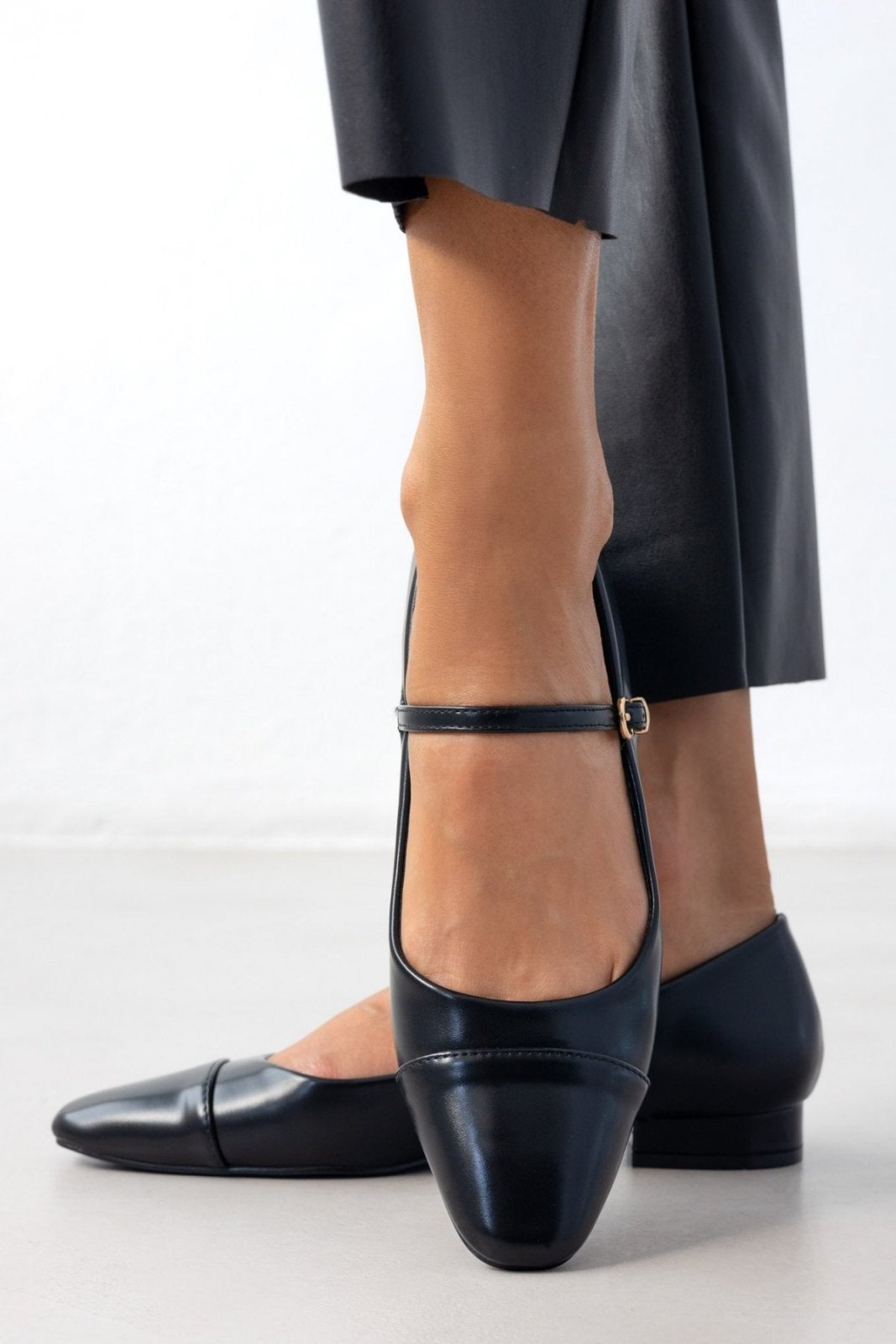 Μπαλαρίνες με λουράκι στο κουτεπιέ. Διακριτικό λάστιχο στο κούμπωμα για καλύτερη εφαρμοφή.