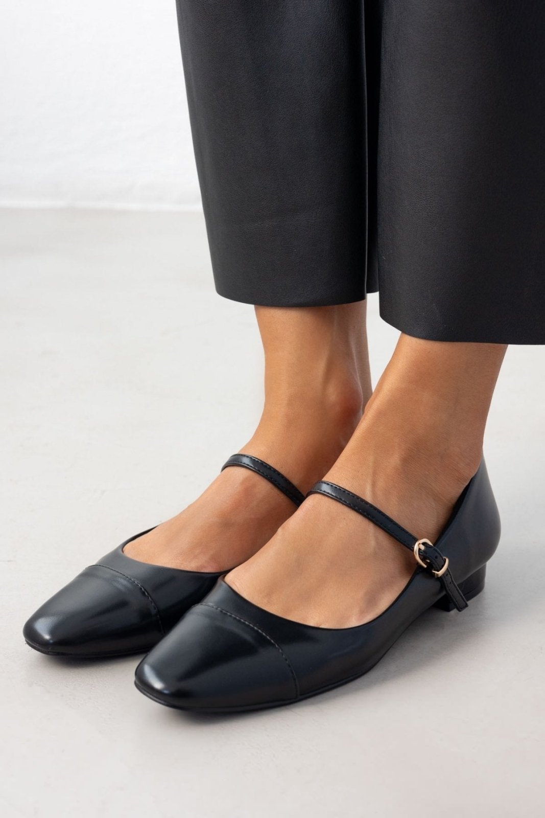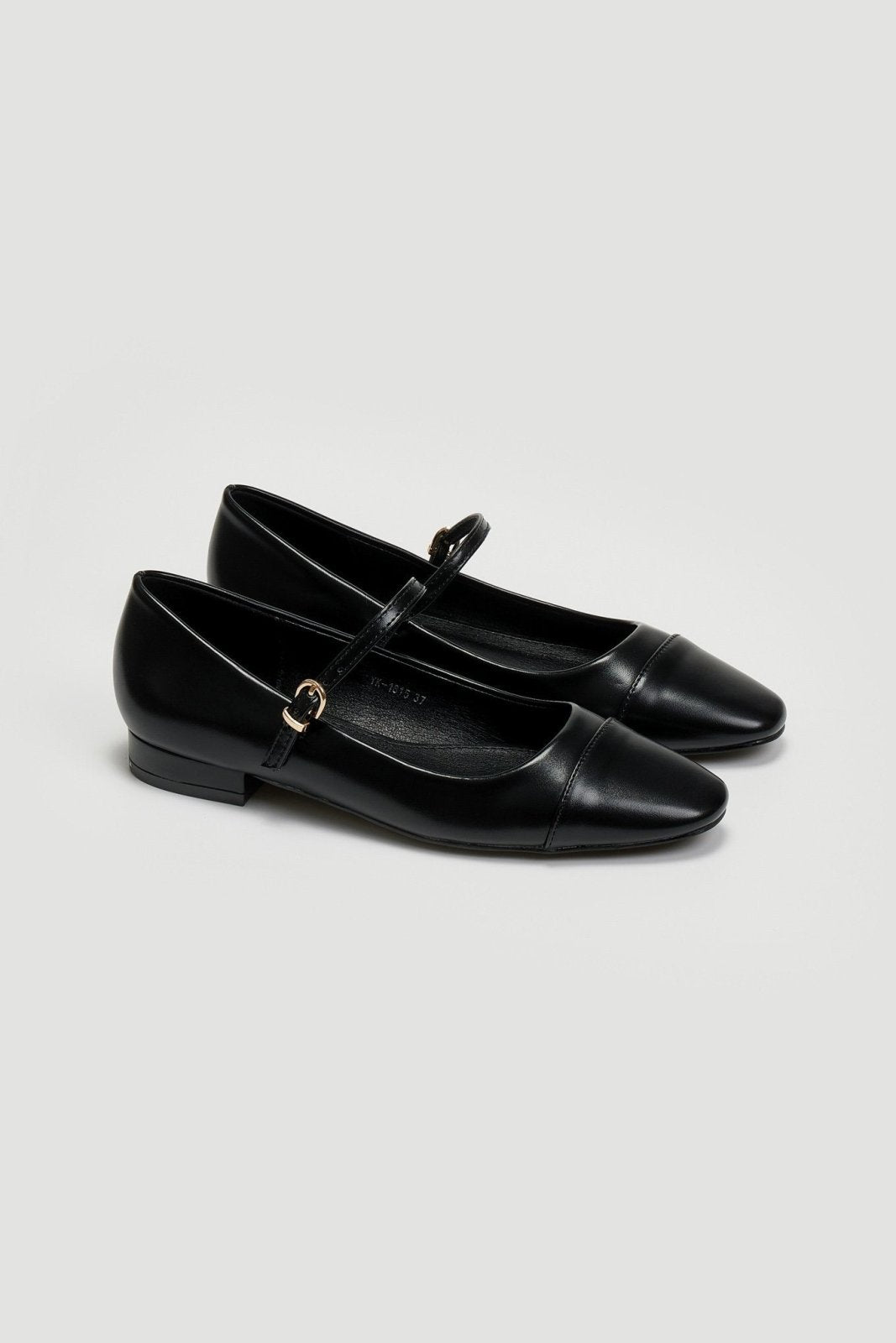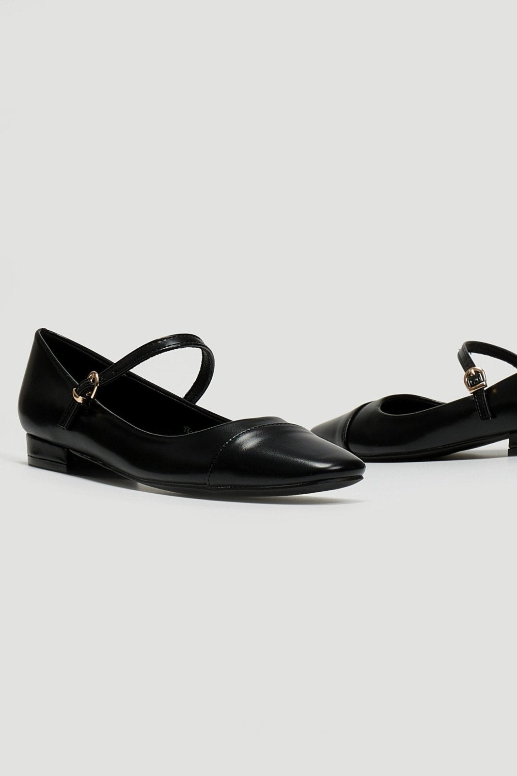 Μπαλαρίνες με λουράκι στο κουτεπιέ. Διακριτικό λάστιχο στο κούμπωμα για καλύτερη εφαρμοφή.