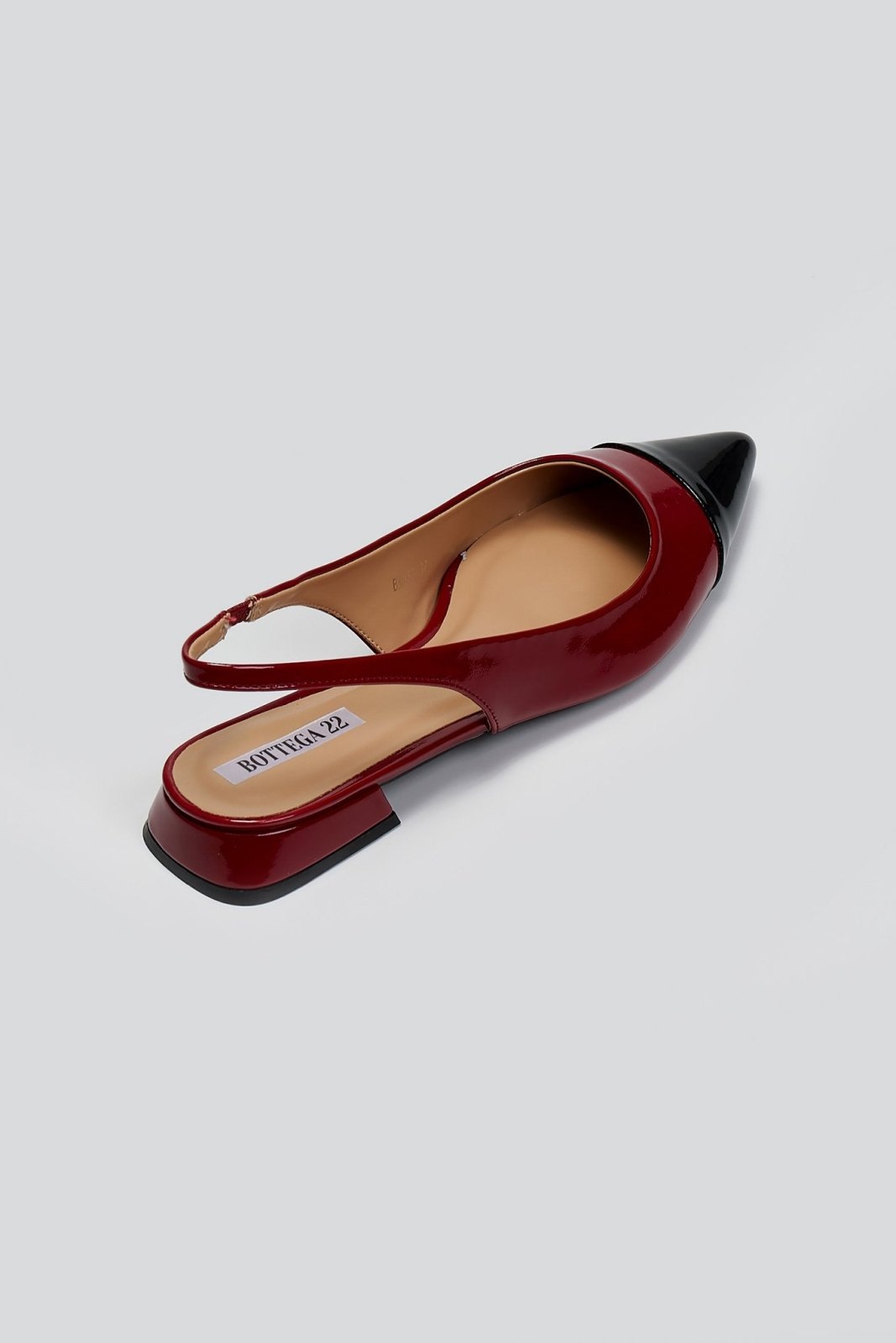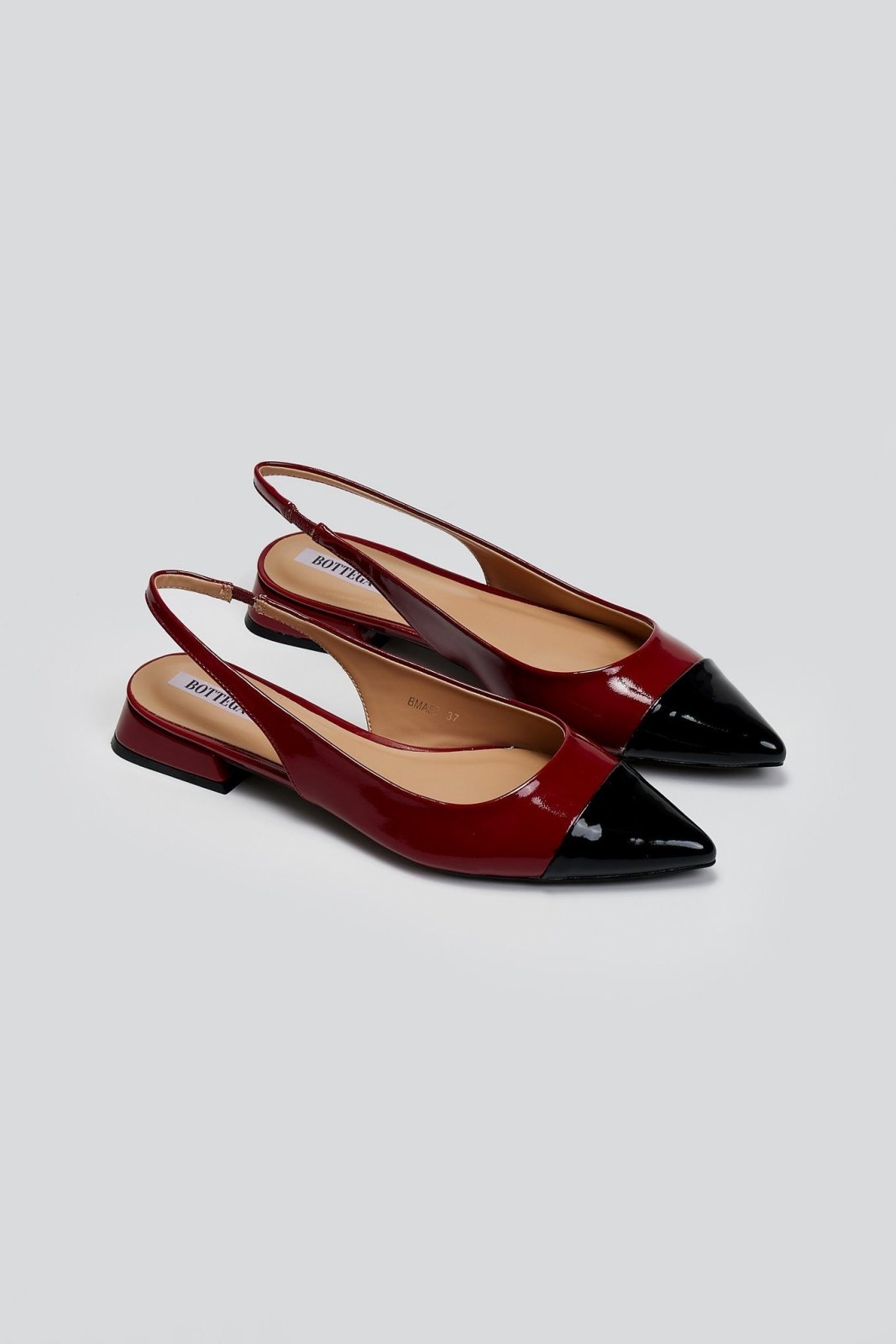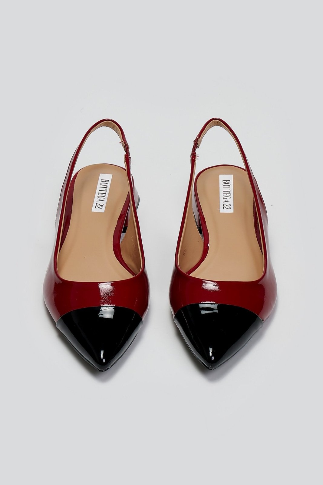 Μπαλαρίνες λουστρίνι μυτερές slingback. Λεπτομέρεια λουστρίνι στη μπροστινή πλευρά. Διακριτικό λάστιχο στην εσωτερική πλευρά για καλύτερη εφαρμογή.