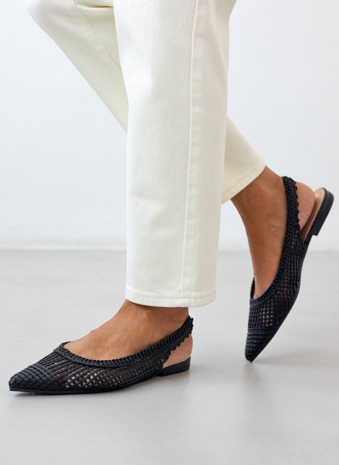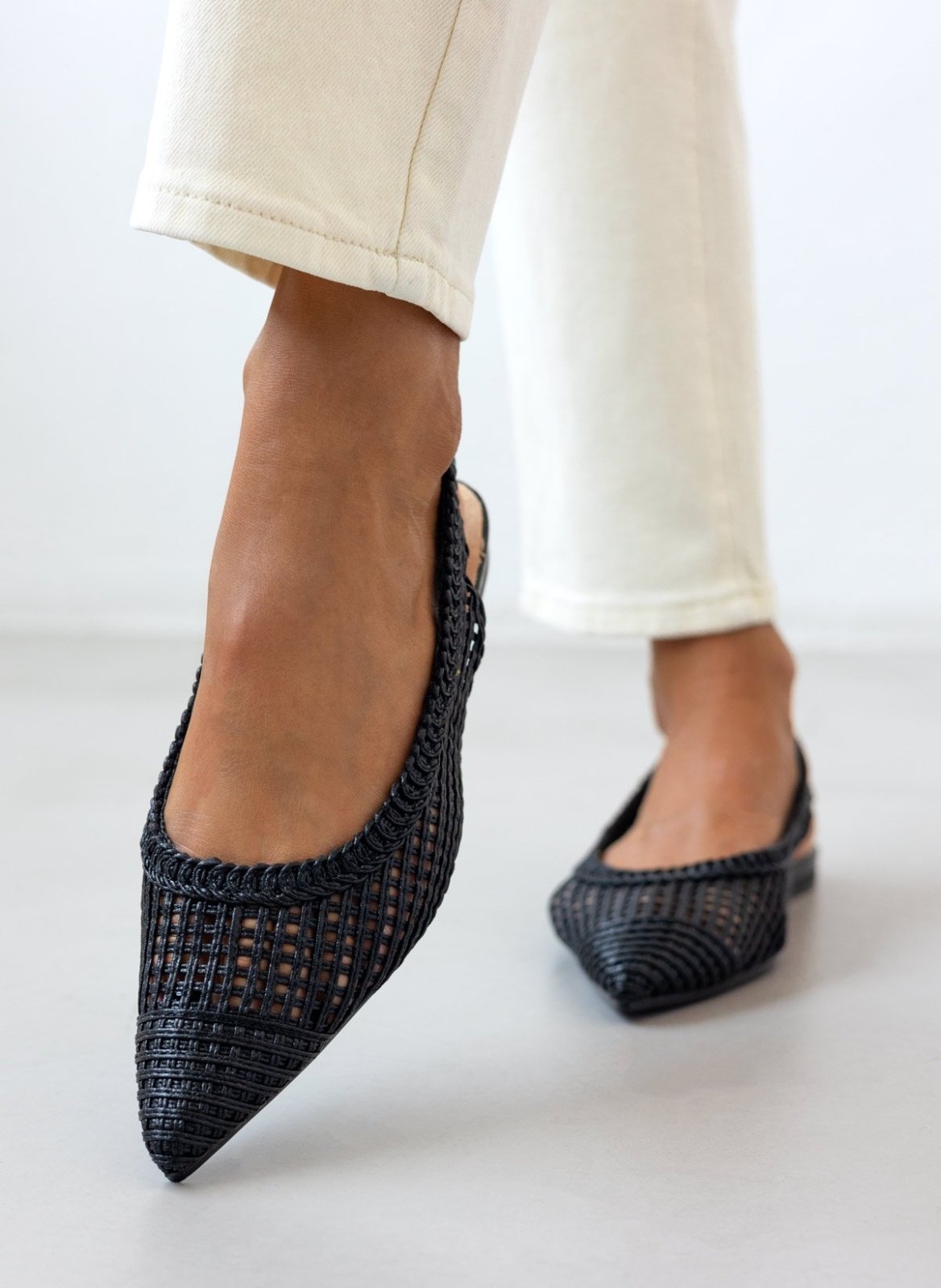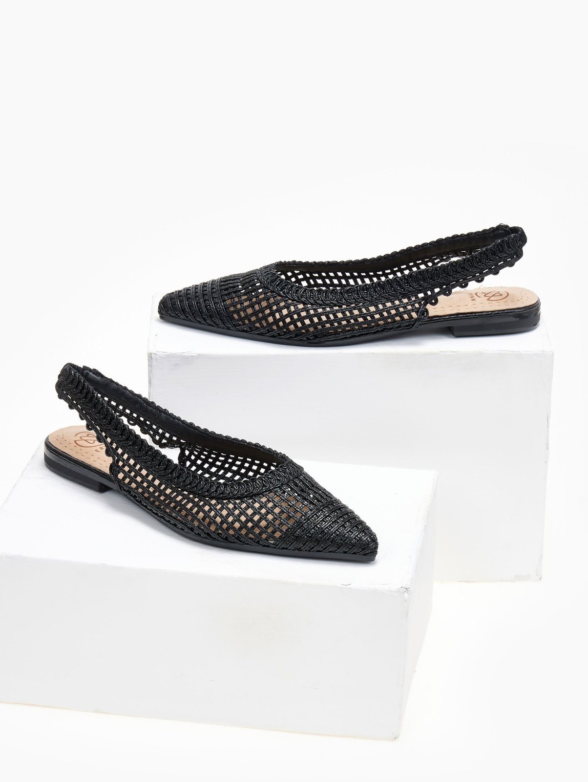 Μπαλαρίνες μυτερές με πλεκτό σχέδιο Erynn. Έχουν ανοιχτή φτέρνα. Διακριτικό λάστιχο στο ίδιο χρώμα στο πίσω μέρος.