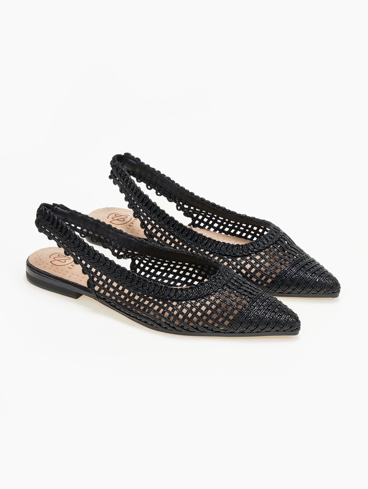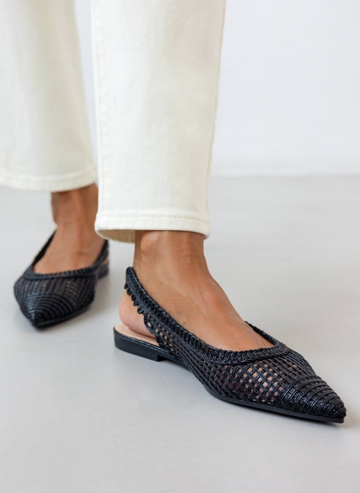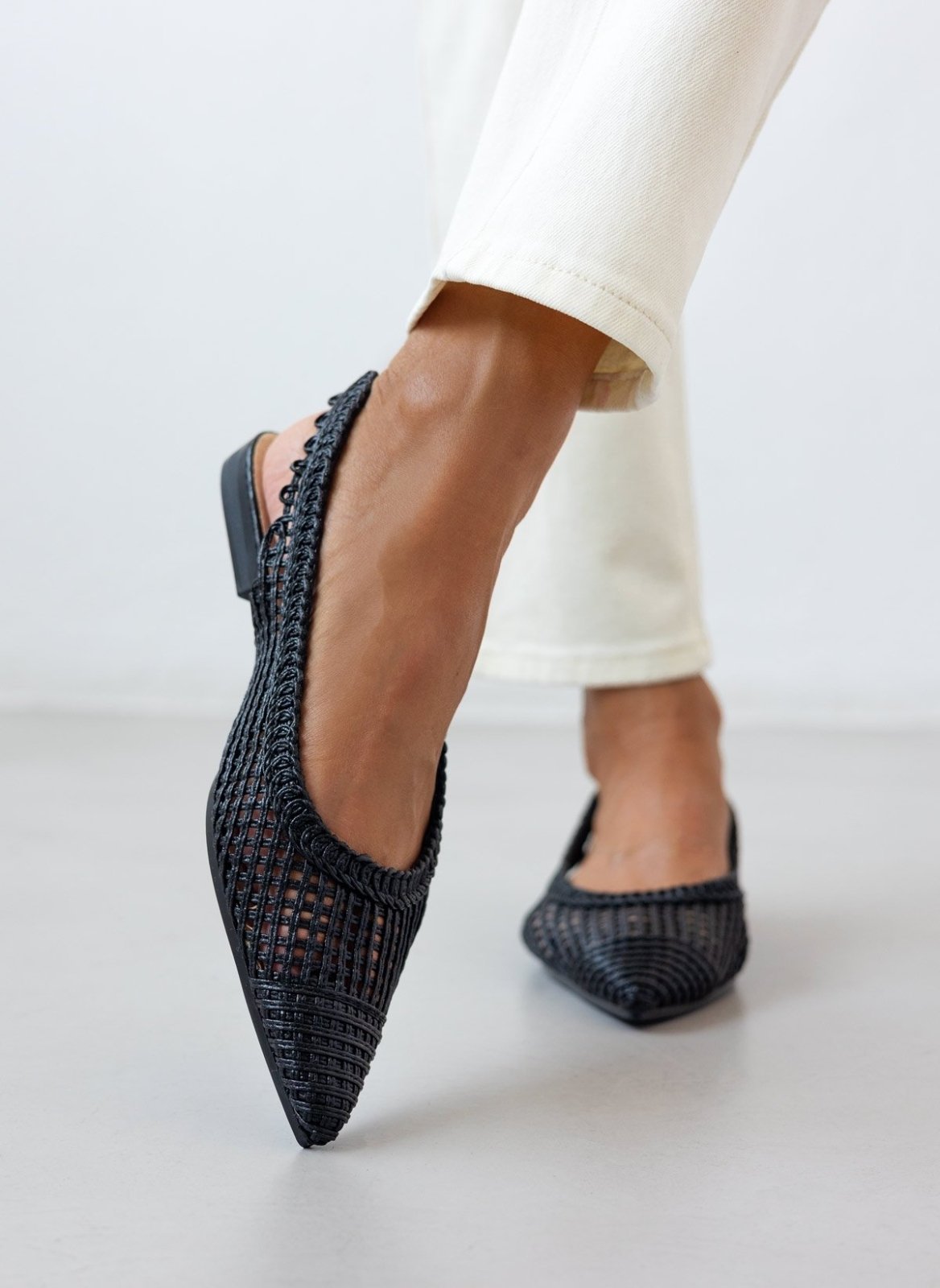 Μπαλαρίνες μυτερές με πλεκτό σχέδιο Erynn. Έχουν ανοιχτή φτέρνα. Διακριτικό λάστιχο στο ίδιο χρώμα στο πίσω μέρος.