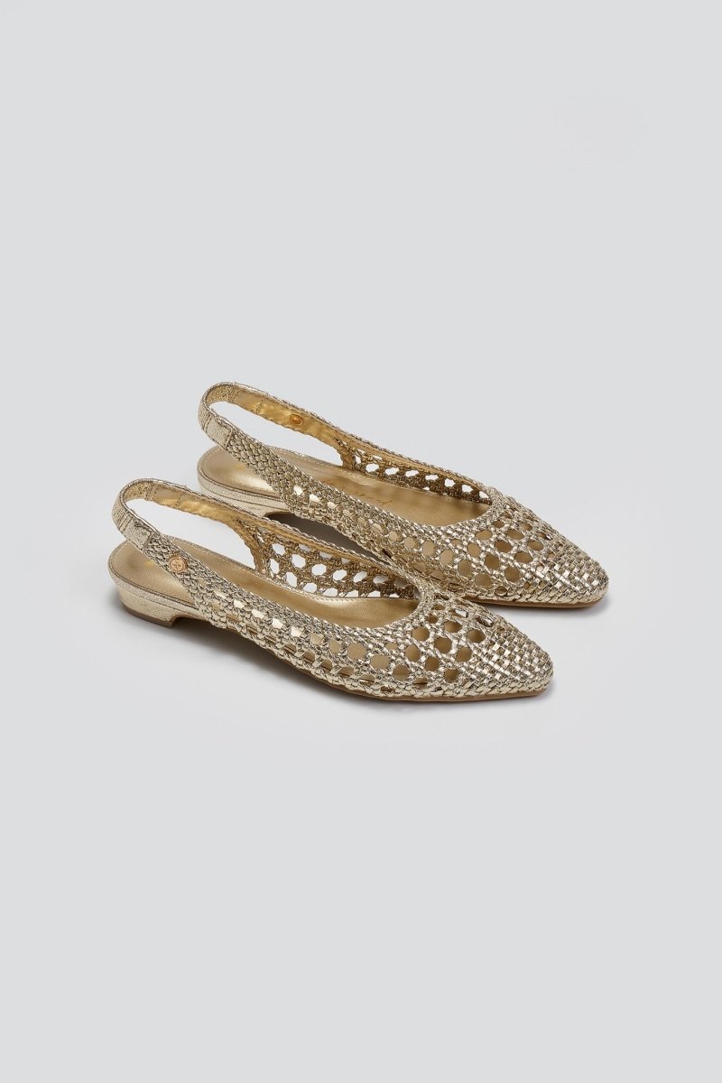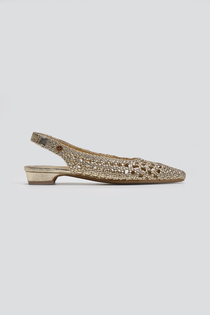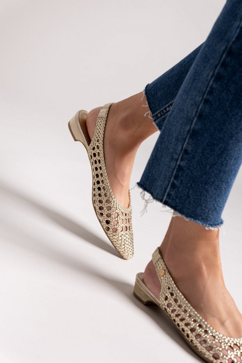 Μπαλαρίνες μυτερές με διάτρητο πλεκτό σχέδιο. Slingback λουράκι με διακριτικό λάστιχο στο πίσω μέρος. Comfort biotech μαλακός πάτος με memory foam. Peta Vegan approved.