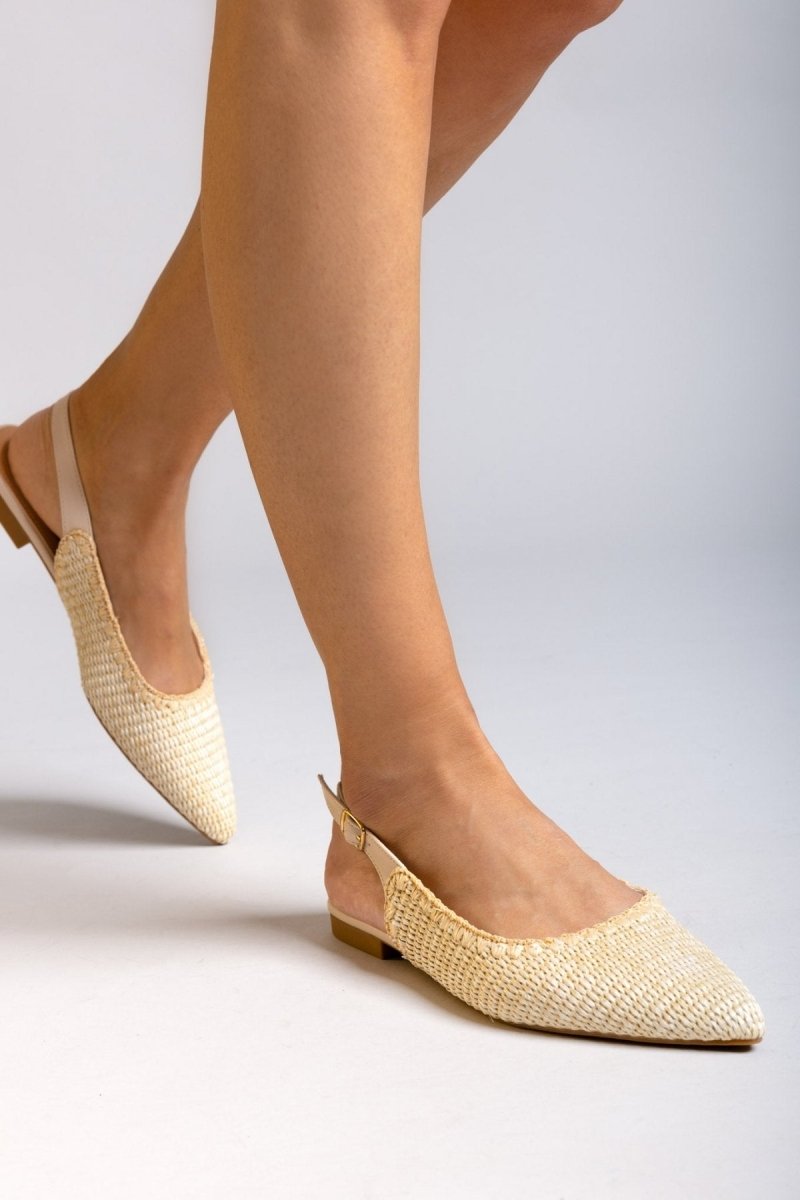 Μπαλαρίνες μυτερές slingback από ψάθα ERYNN - Μπεζ