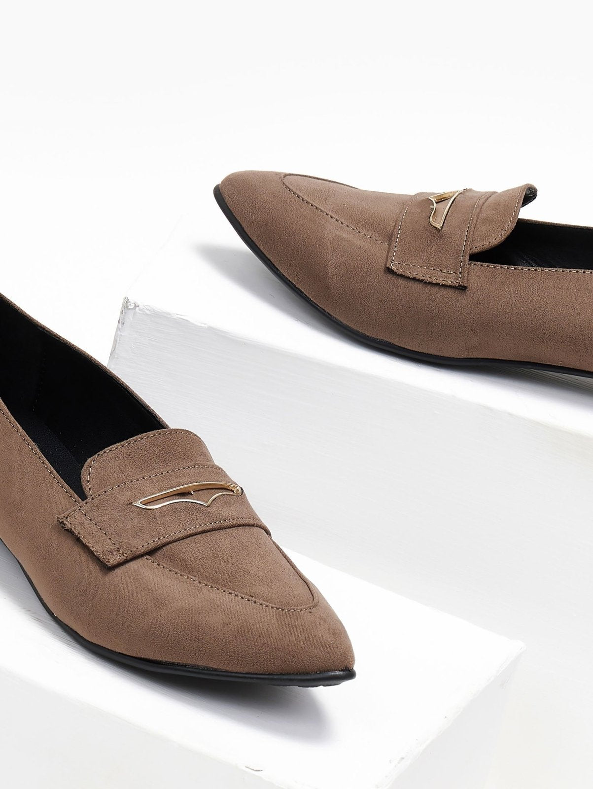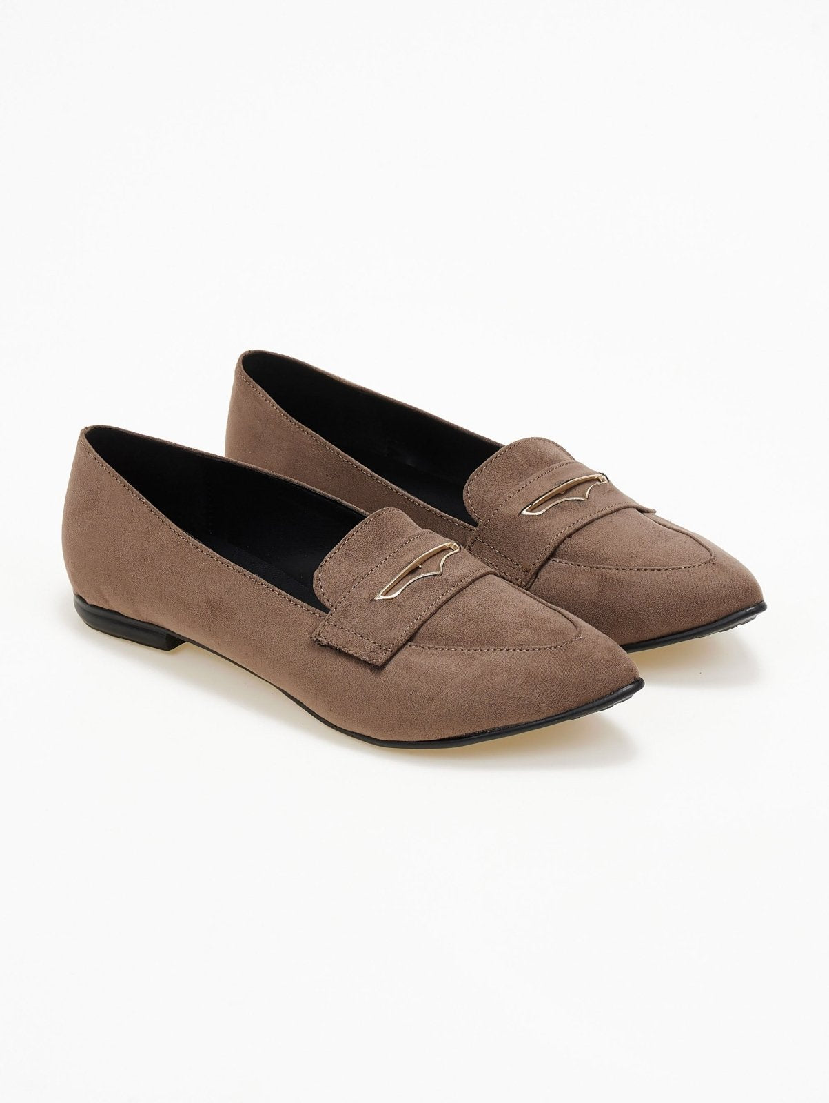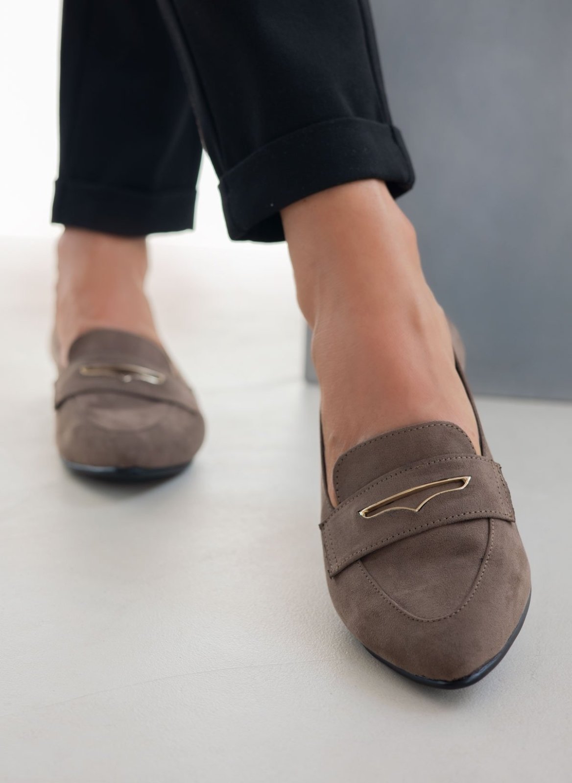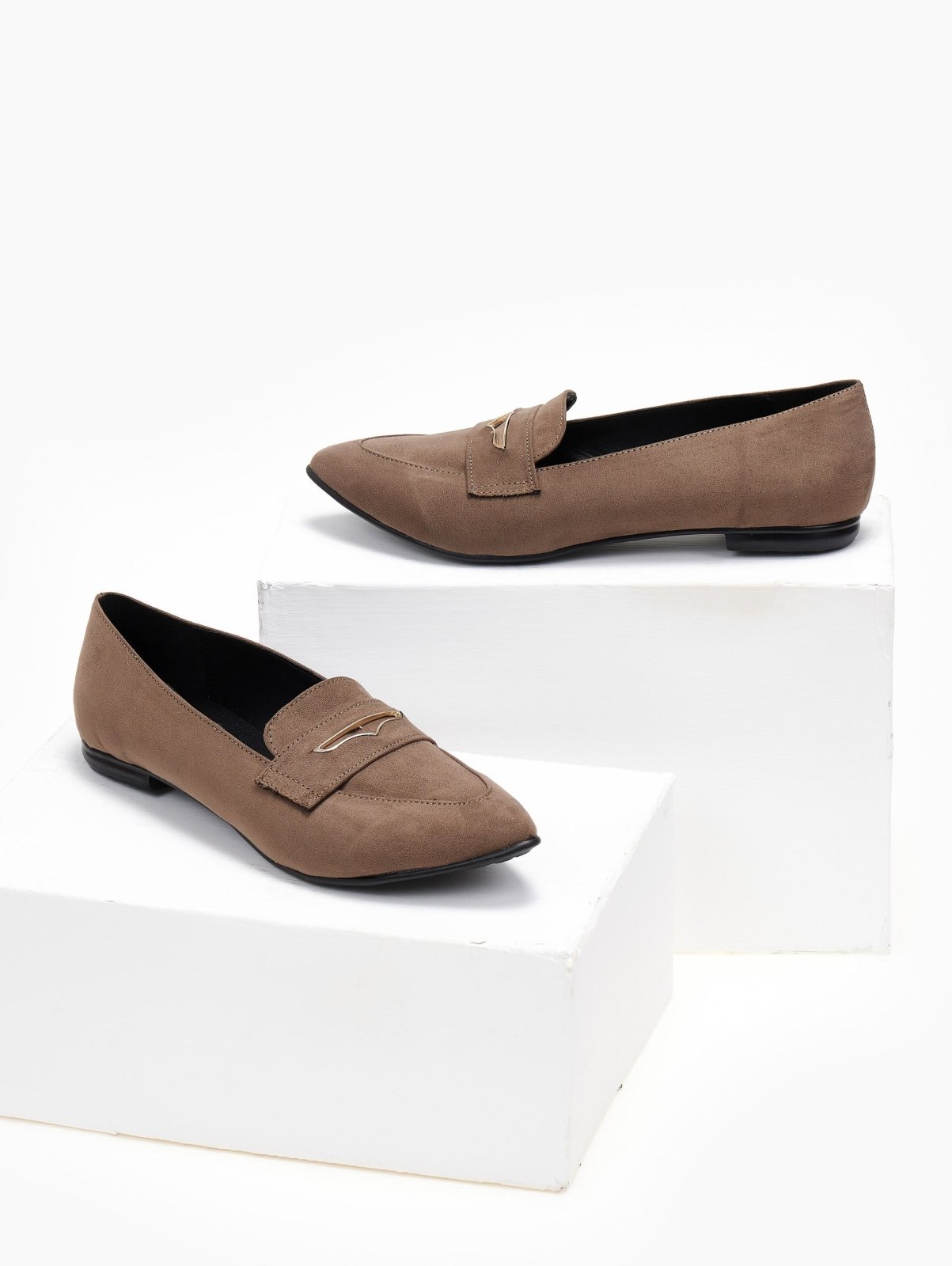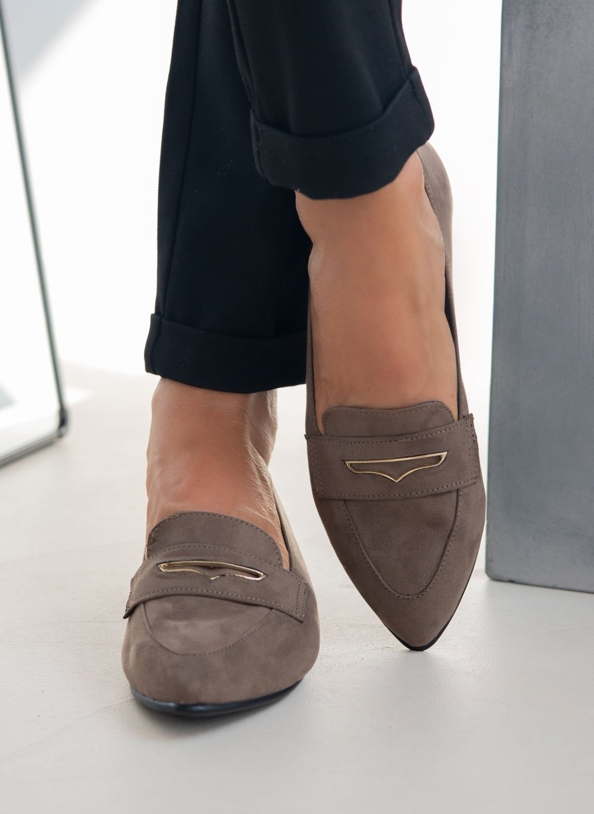 Μπαλαρίνες suede estil. Έχουν μεταλλικό σχέδιο και ραφές στο πάνω μέρος. Φλάτ με μυτερή γραμμή. Ελληνικής κατασκευής.