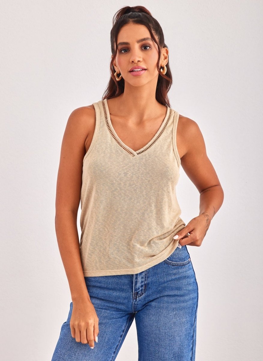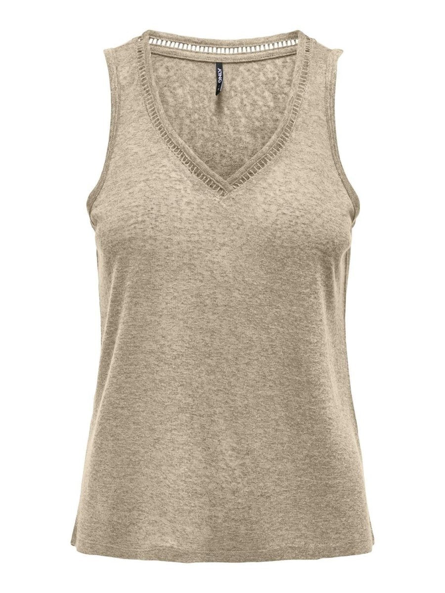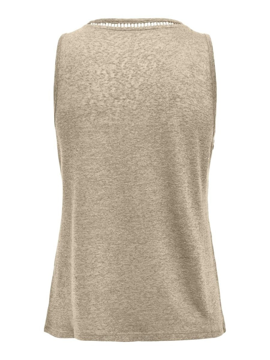 Μπλούζα αμάνικη με v cut ONLY. Έχει διάτρητο σχέδιο. Λεπτή ύφανση. Ίσια γραμμή.