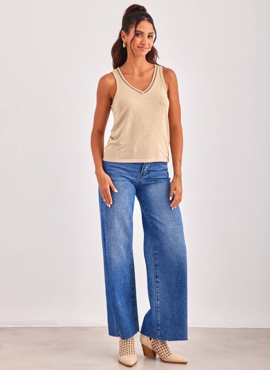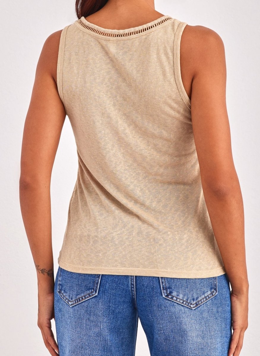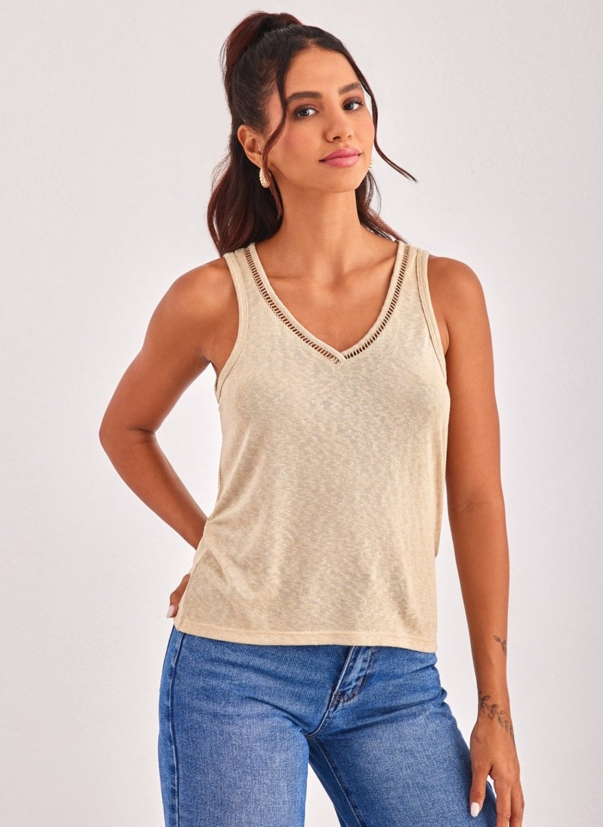 Μπλούζα αμάνικη με v cut ONLY. Έχει διάτρητο σχέδιο. Λεπτή ύφανση. Ίσια γραμμή.