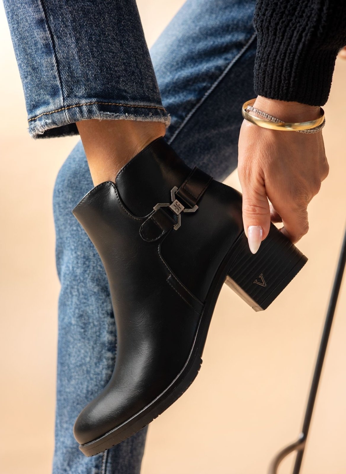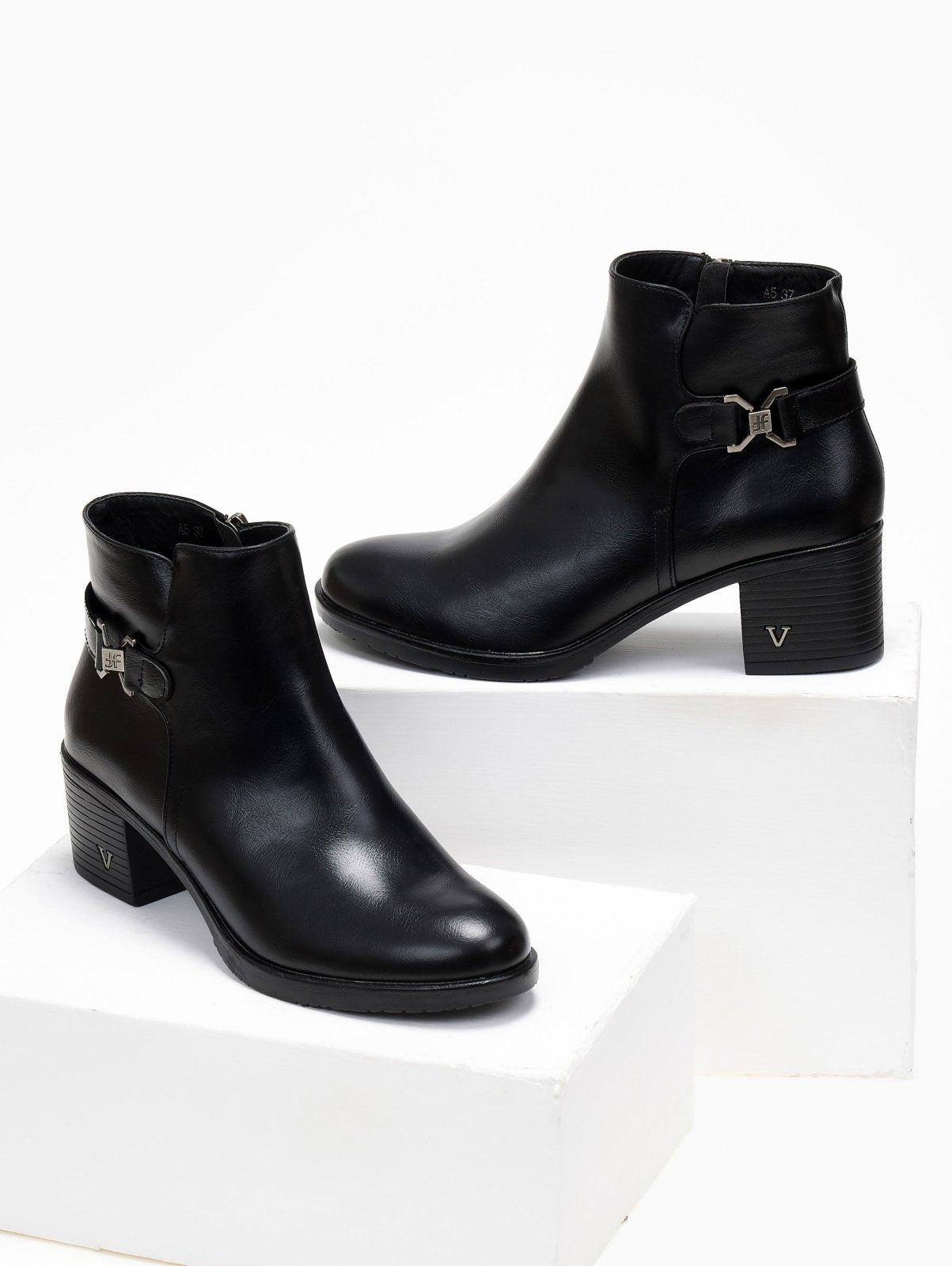 Μποτάκια αστραγάλου με μεταλλικό στοιχείο - Μαύρο