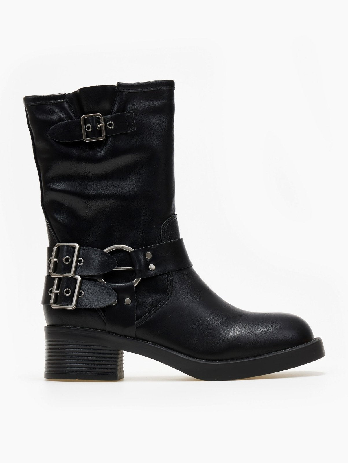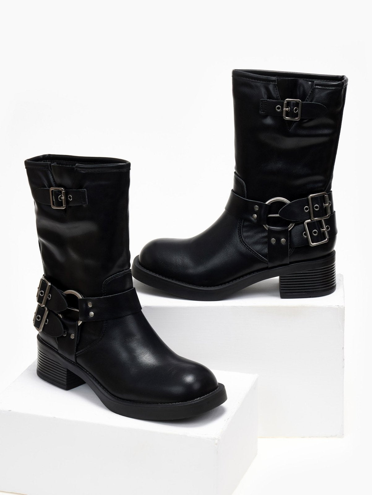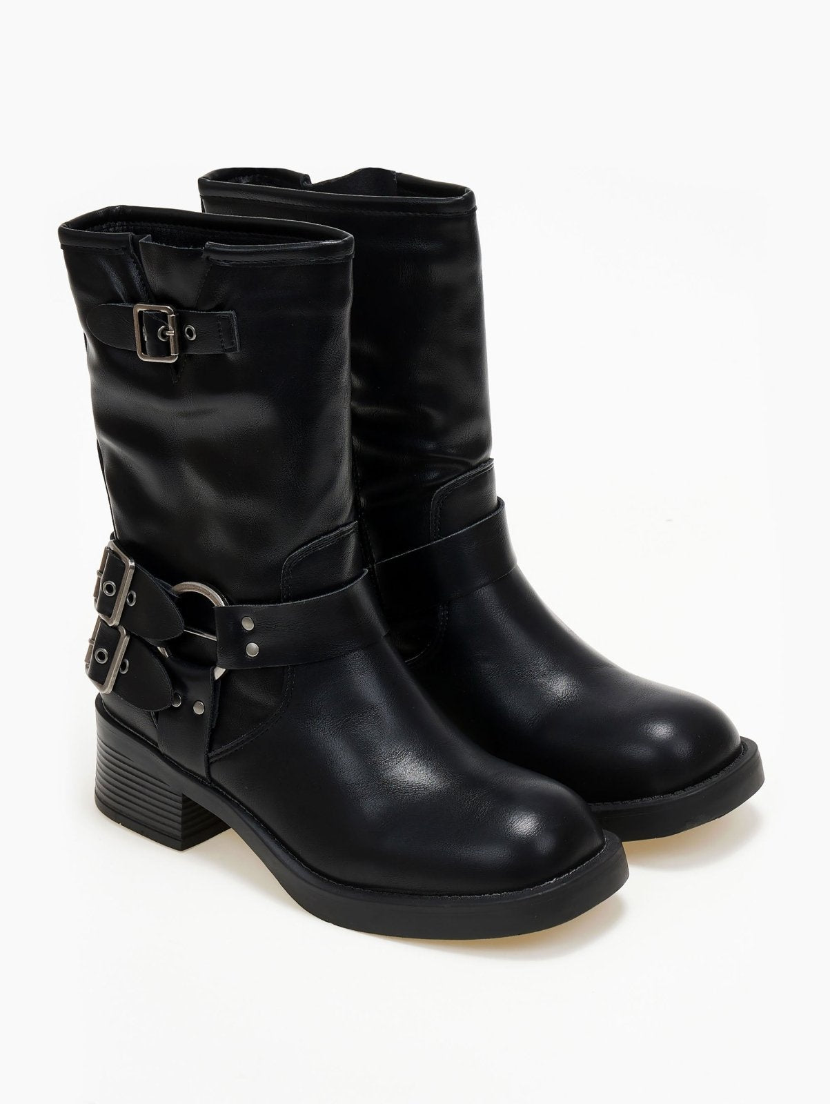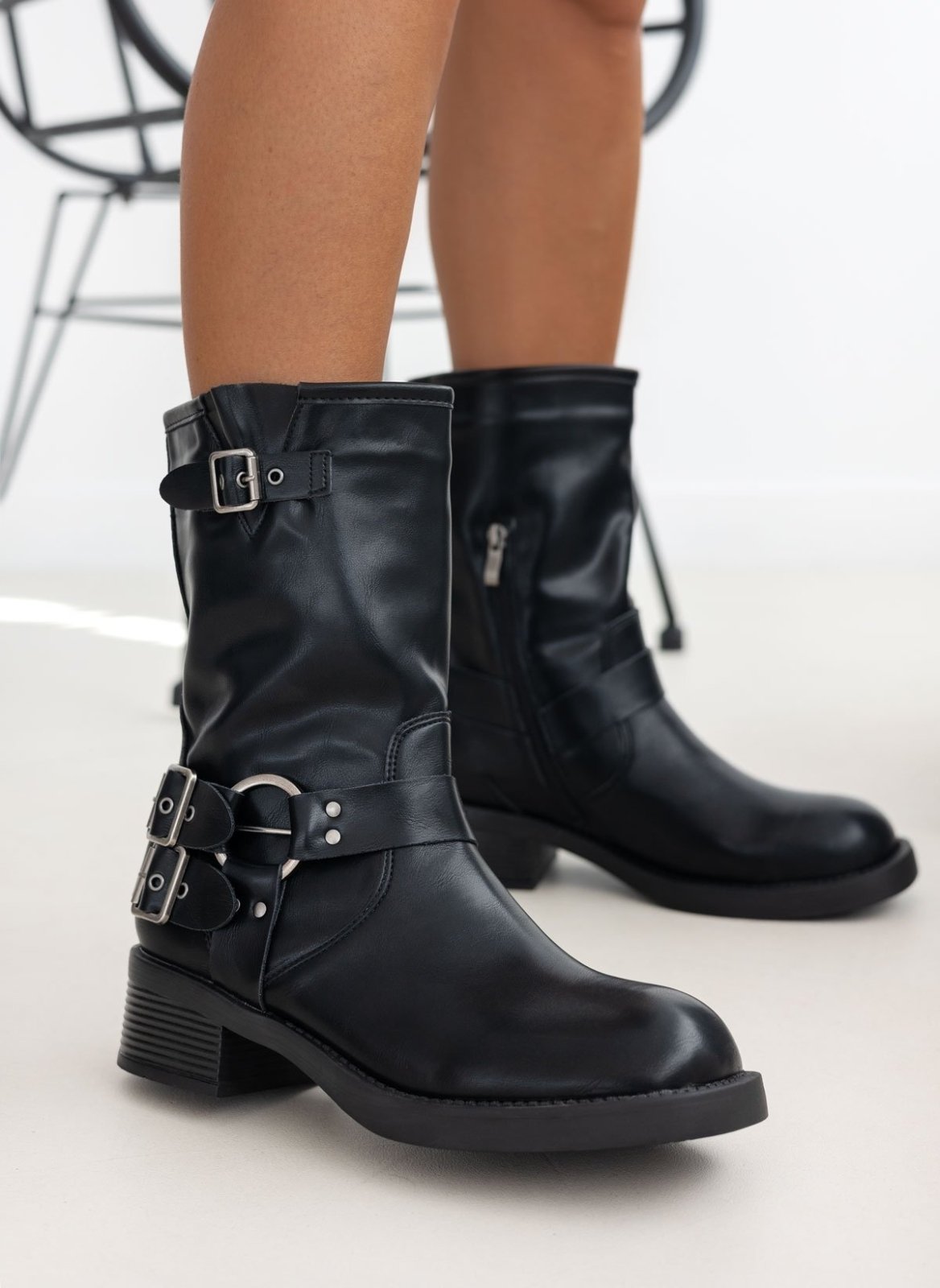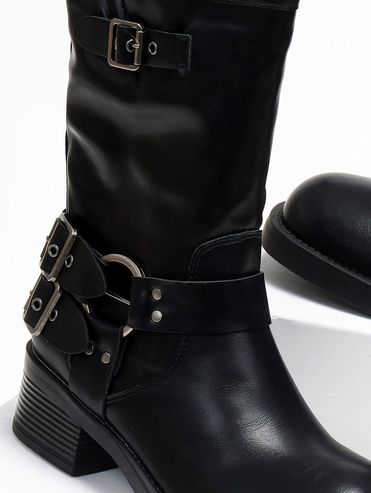 Μποτάκια biker με έντονους τοκάδες - Μαύρο