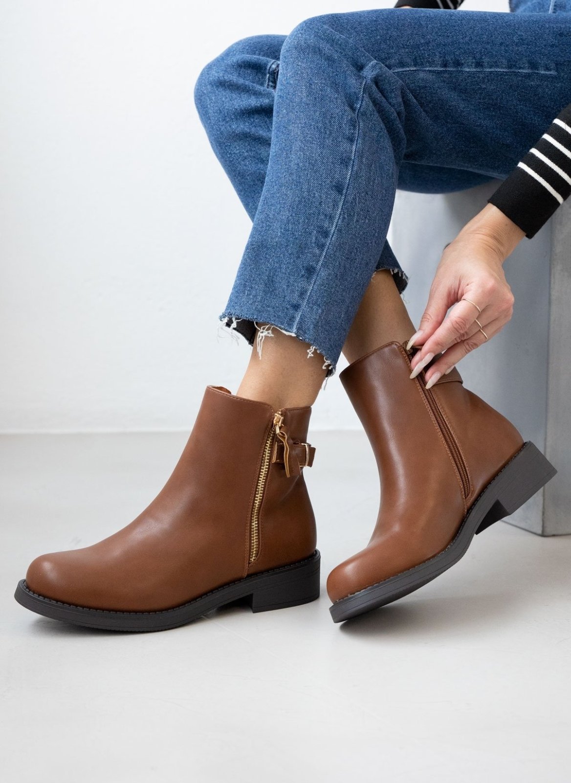 Μποτάκια casual με μεταλλικό φερμουάρ - Ταμπά