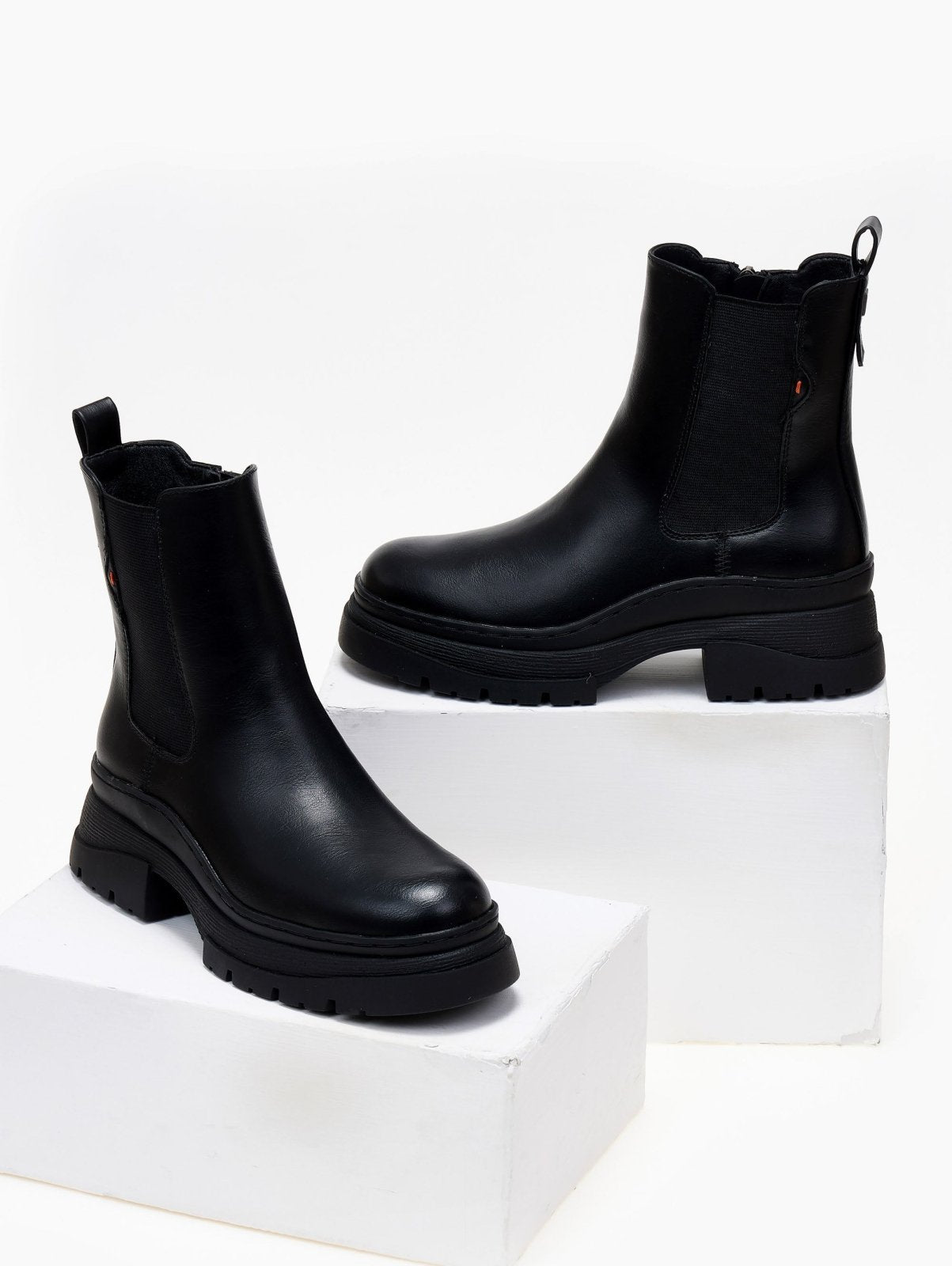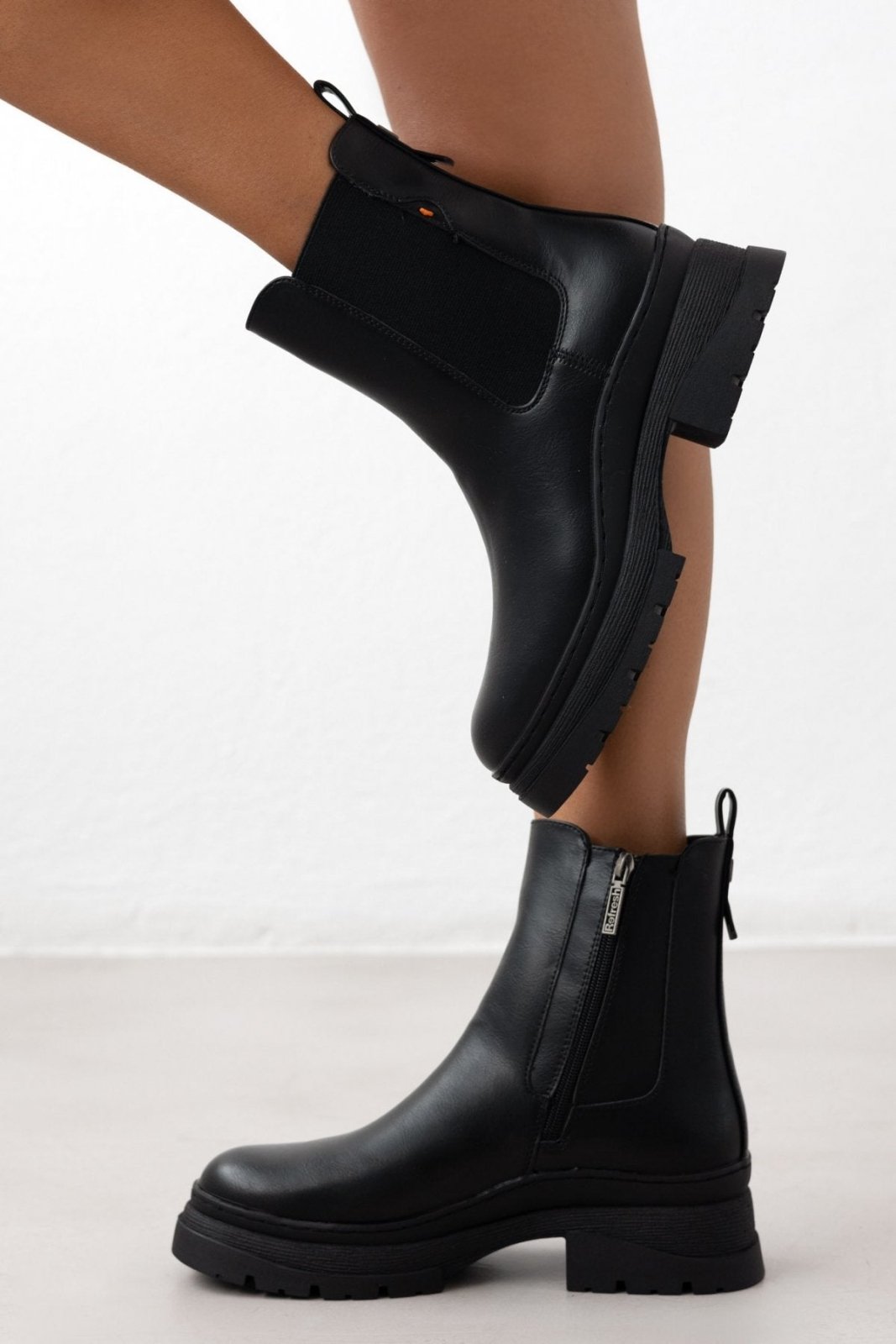 Μποτάκια chelsea Refresh. Λάστιχο στην εξωτερική τους πλευρά. Κλείνουν με φερμουάρ. Ψηλη chunky σόλα. Μεταλλικό λογότυπο στο πίσω μέρος. Comfort biotech μαλακός πάτος με memory foam. Peta Vegan approved.