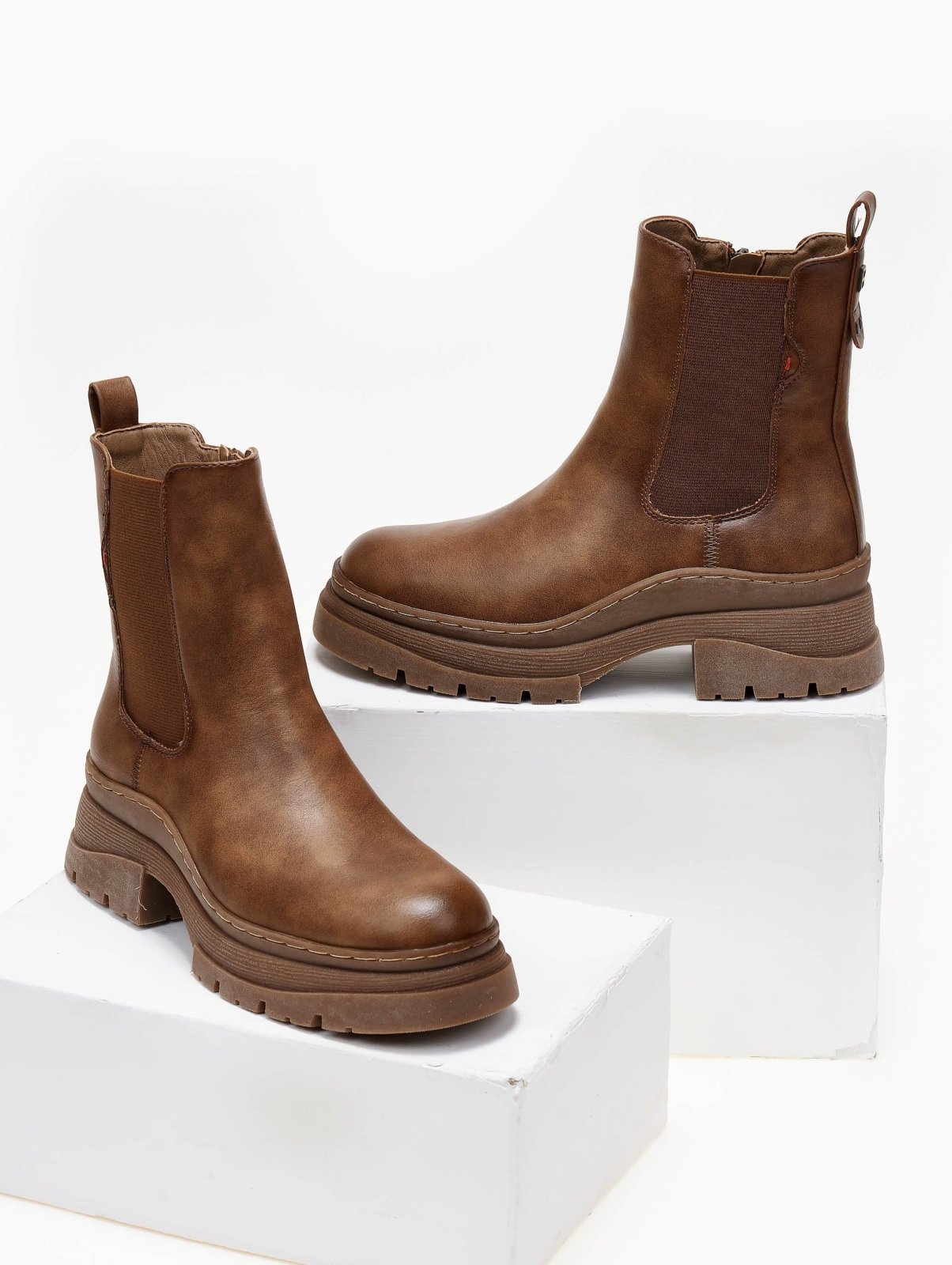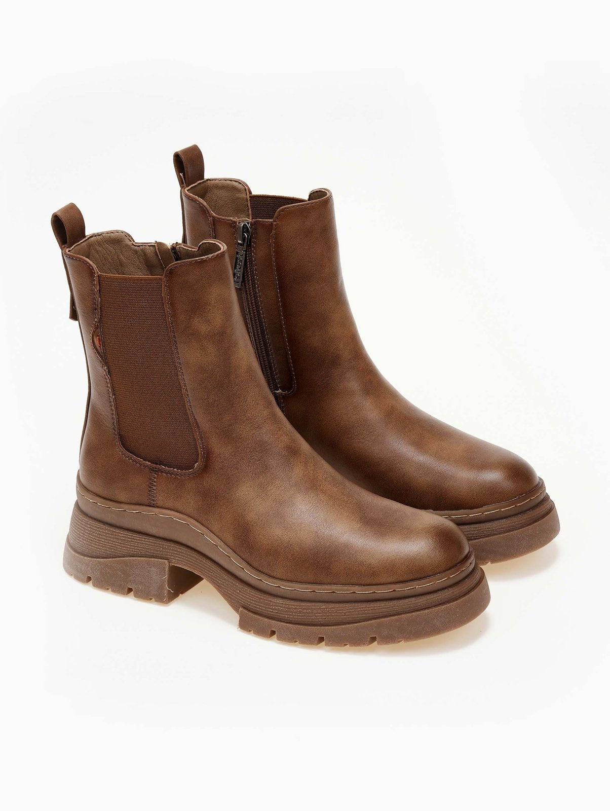 Μποτάκια chelsea Refresh. Λάστιχο στην εξωτερική τους πλευρά. Κλείνουν με φερμουάρ. Ψηλη chunky σόλα. Μεταλλικό λογότυπο στο πίσω μέρος. Comfort biotech μαλακός πάτος με memory foam. Peta Vegan approved.