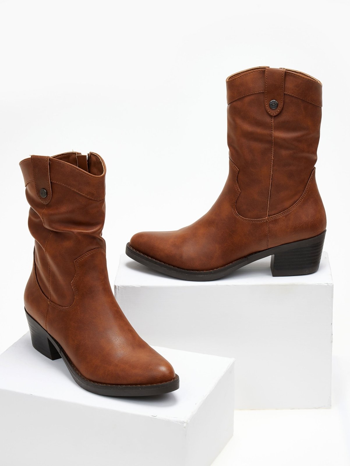 Μποτάκια western Refresh. Έχουν χοντρό τακούνι και σούρες. Διακριτικό λογότυπο στο πλάι. Μυτερή γραμμή. Φερμουάρ στο εσωτερικό τους. Comfort μαλακός πάτος με memory foam. Peta vegan approved.