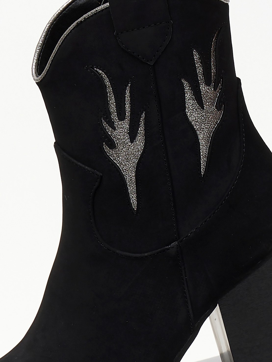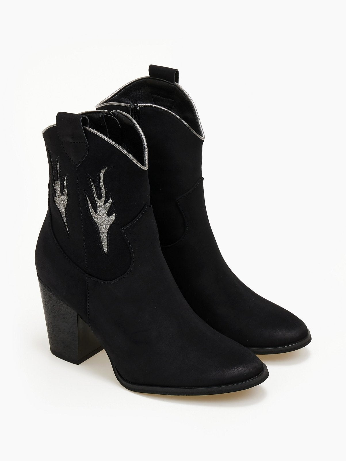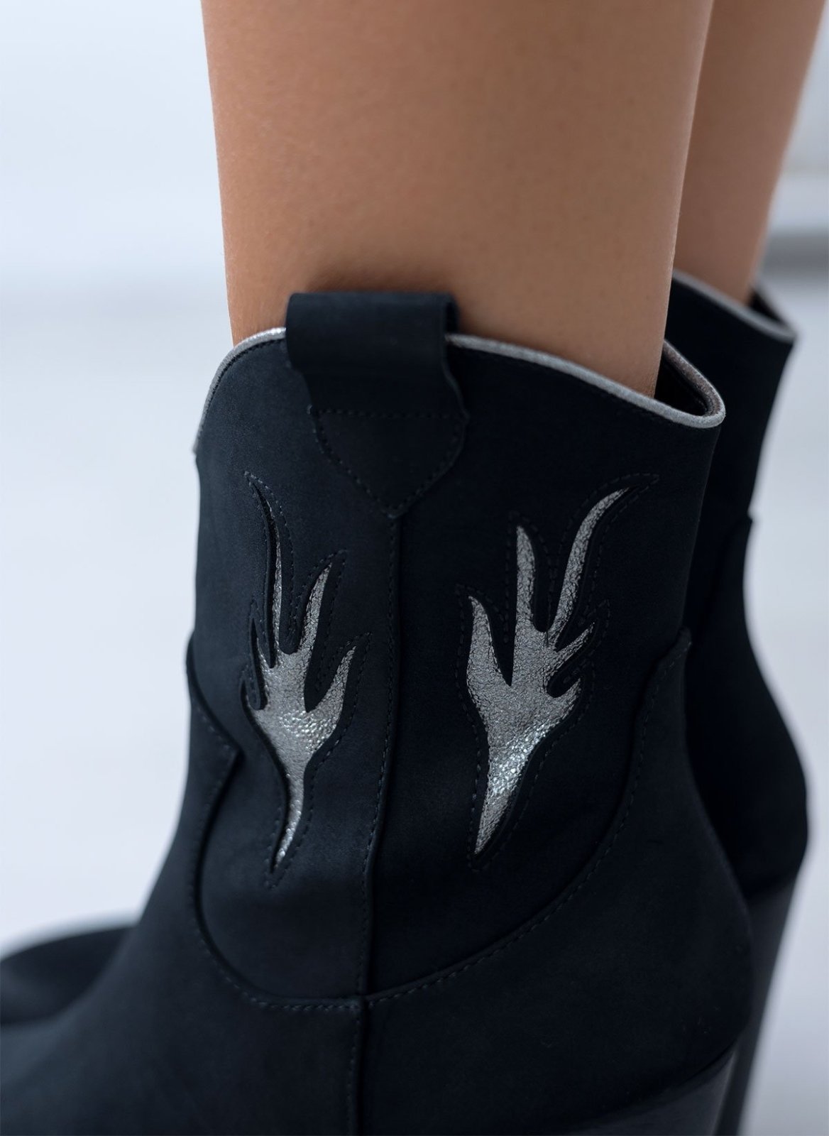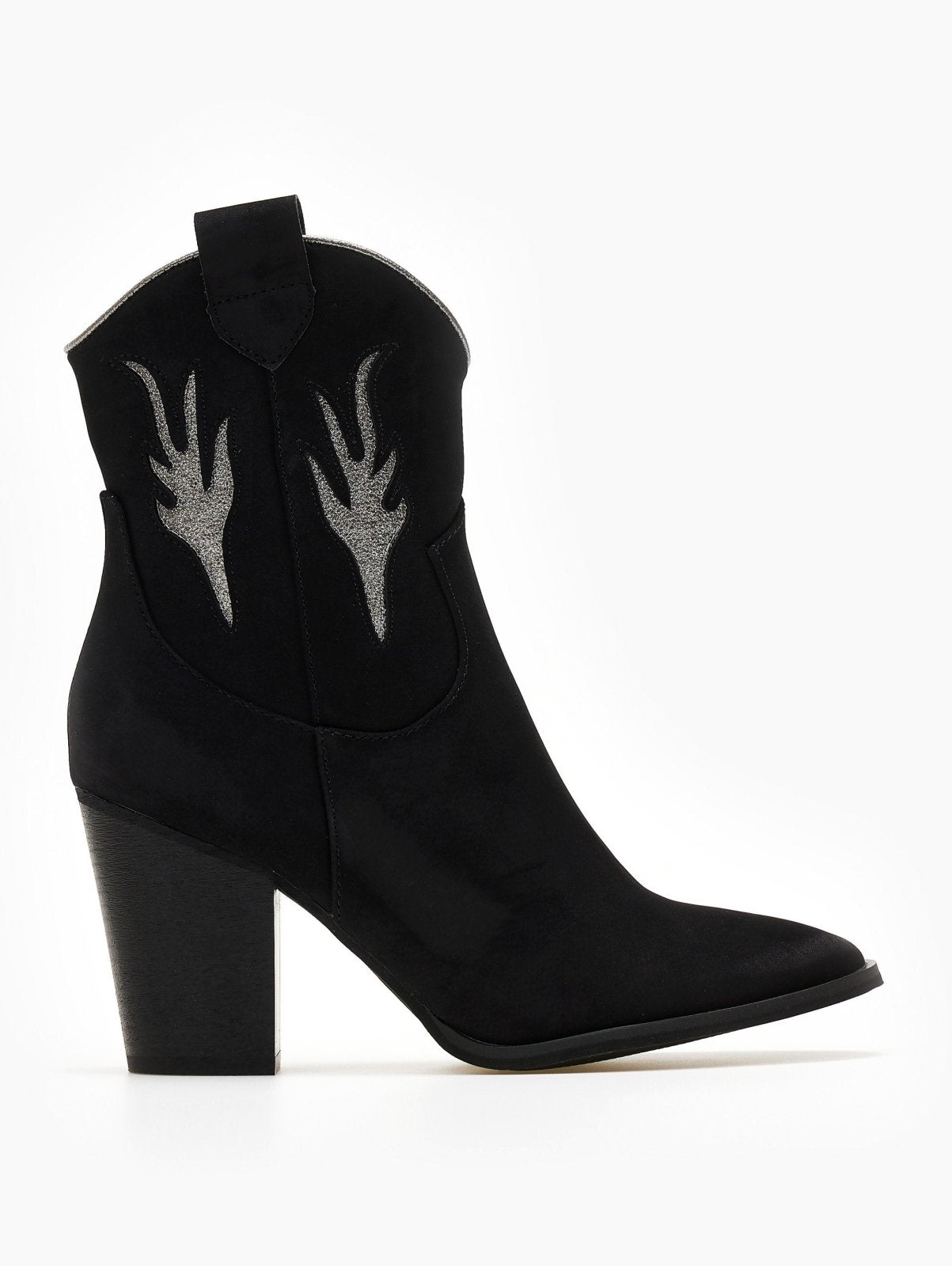 Μποτάκια cowboy suede με διχρωμία ERYNN - Μαύρο/Ασημί