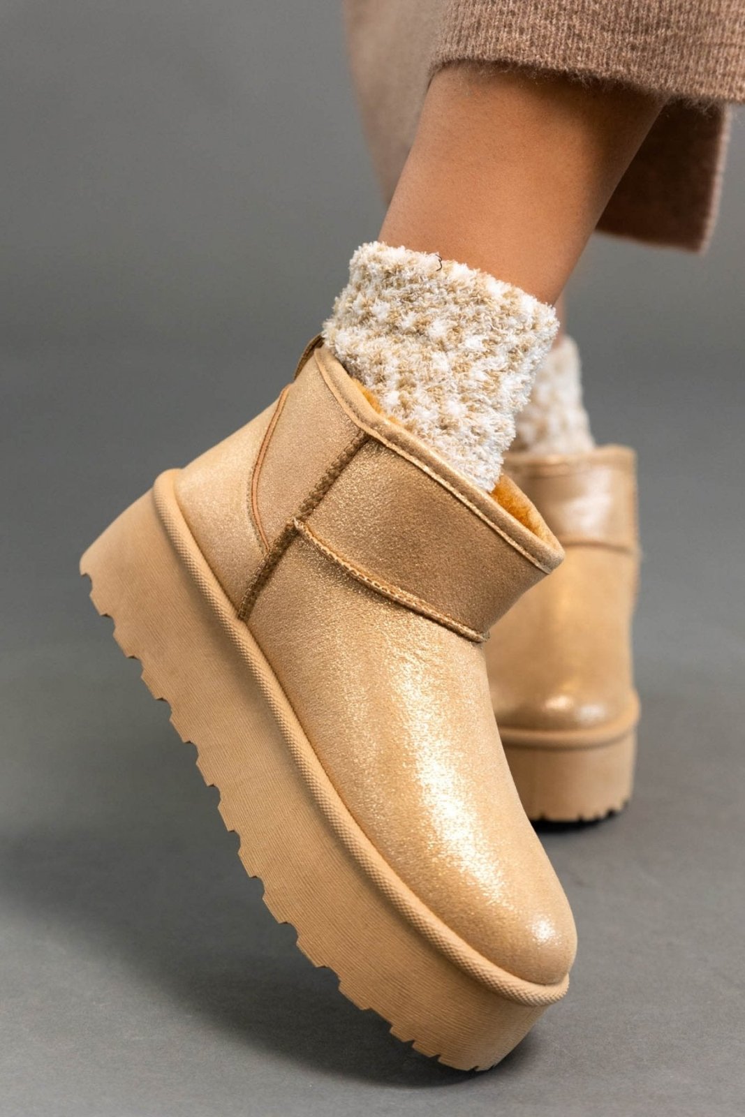 Μποτάκια κοντά με γούνα και ψηλή σόλα ERYNN - Χαλκός