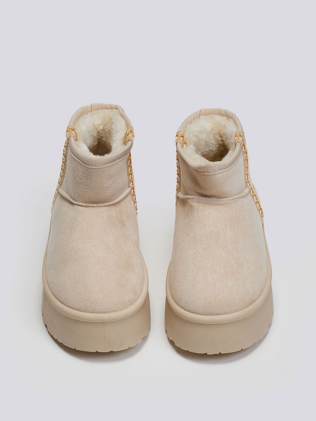 Μποτάκια κοντά suede ERYNN. Επένδυση με συνθετική γούνα. Ψηλή flatform σόλα. Λεπτομέρεια με ραφές.