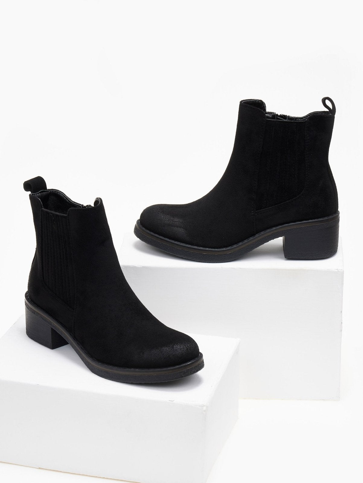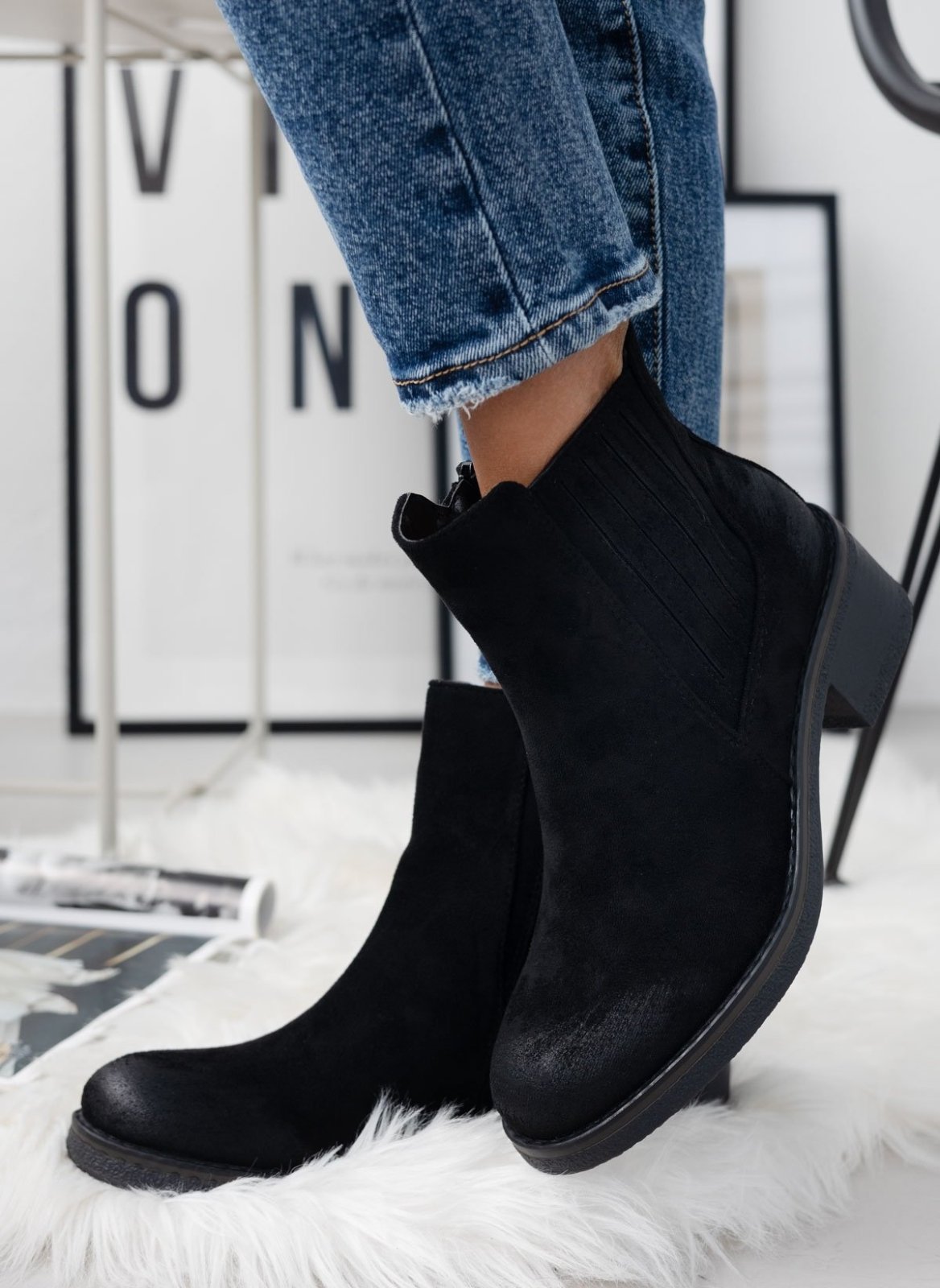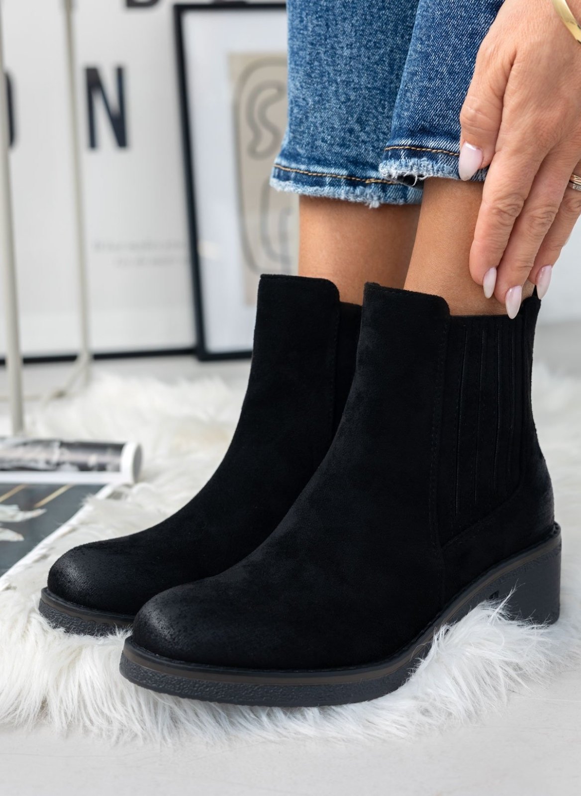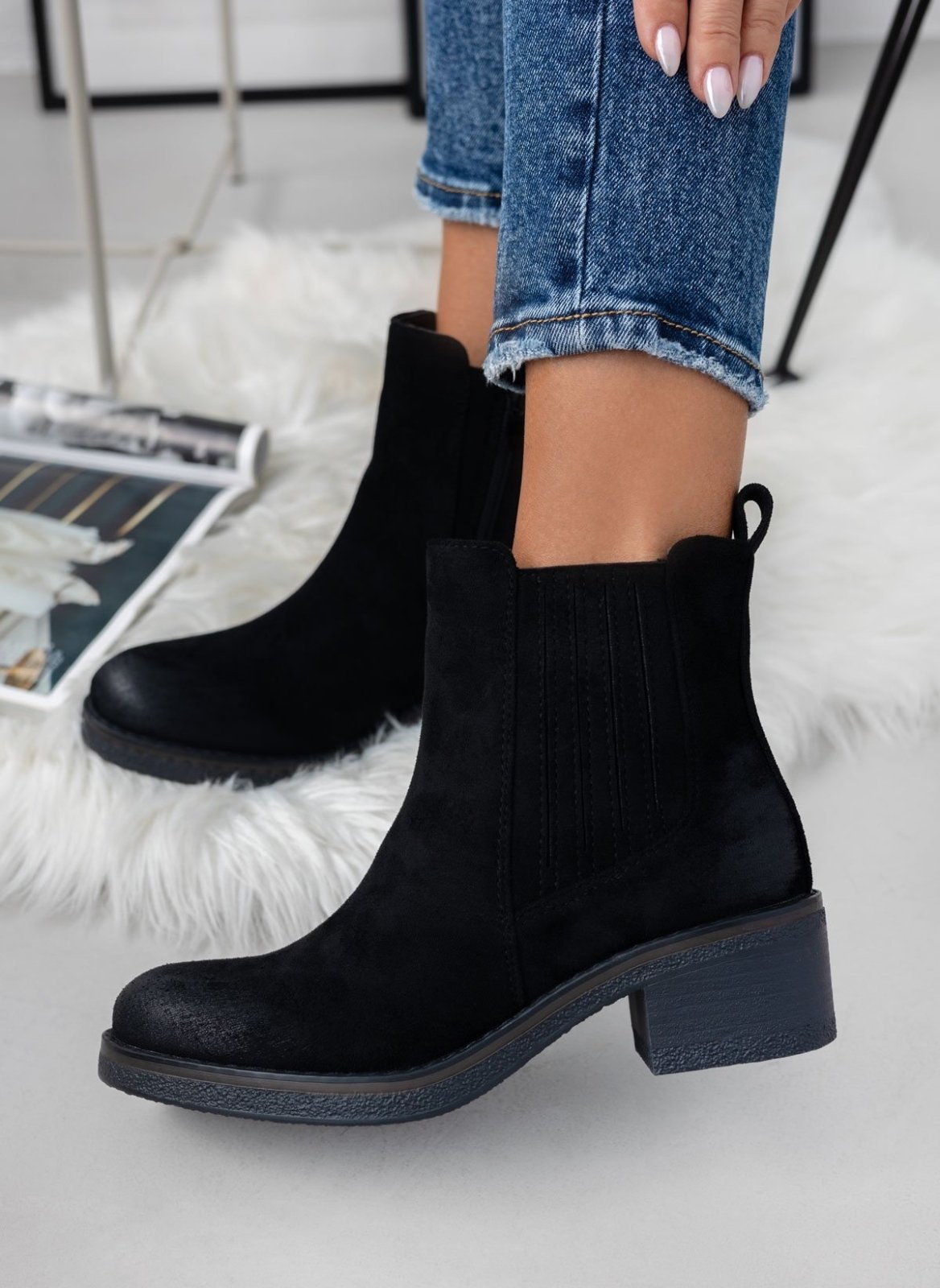 Μποτάκια suede με κρεπ τακούνι ERYNN - Μαύρο