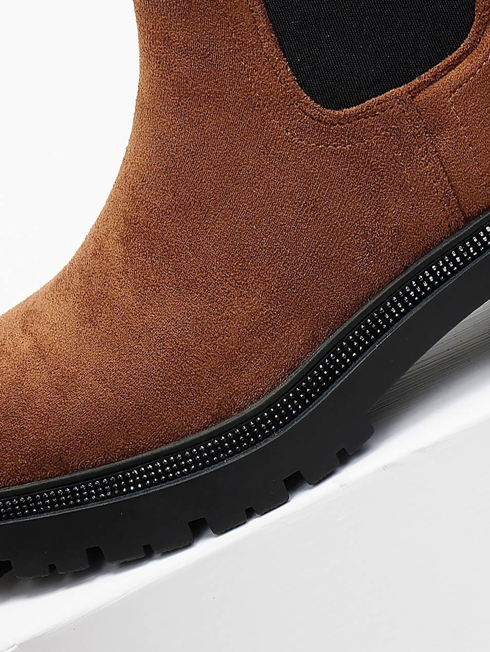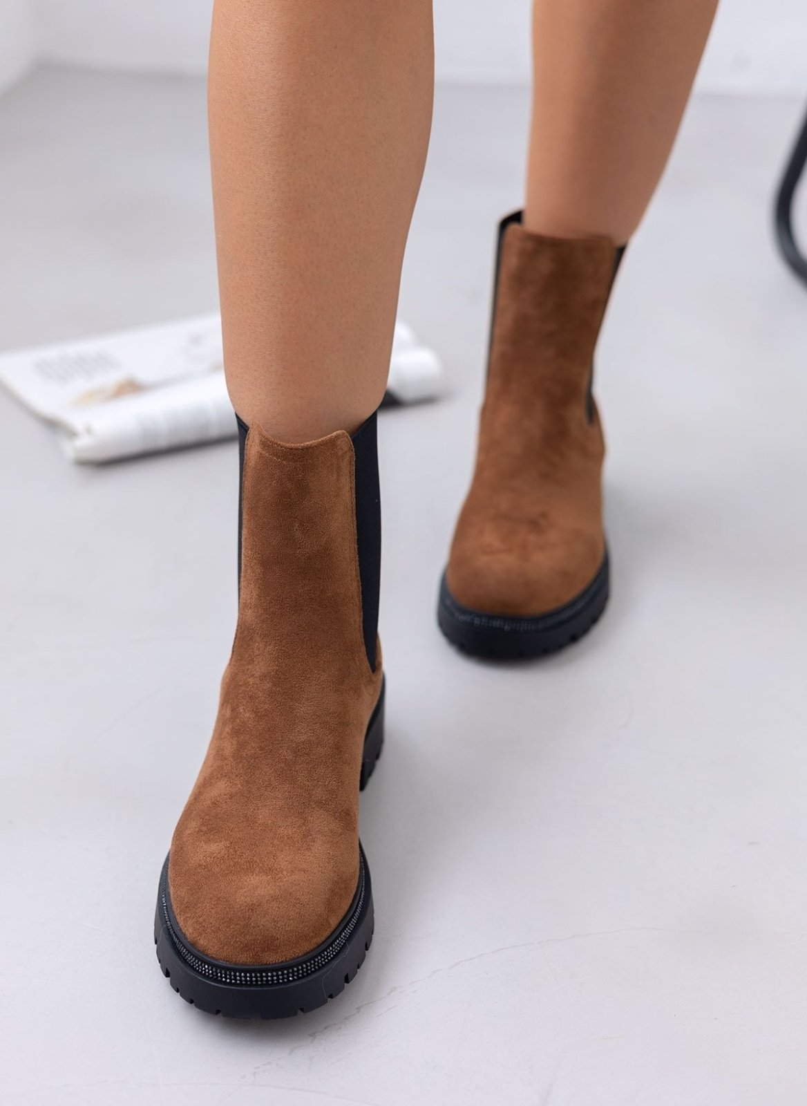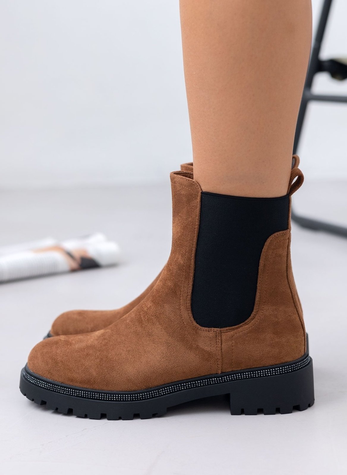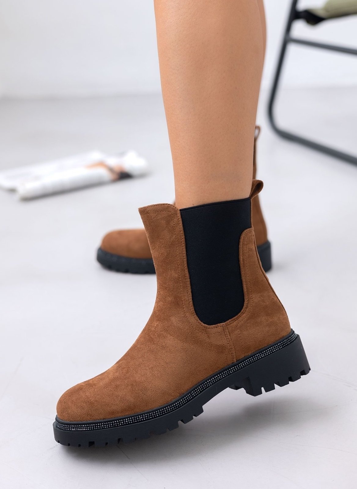 Μποτάκια suede με λάστιχο και στρας ERYNN - Κάμελ