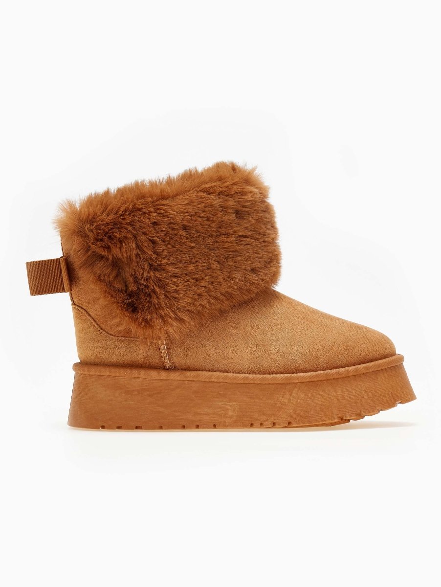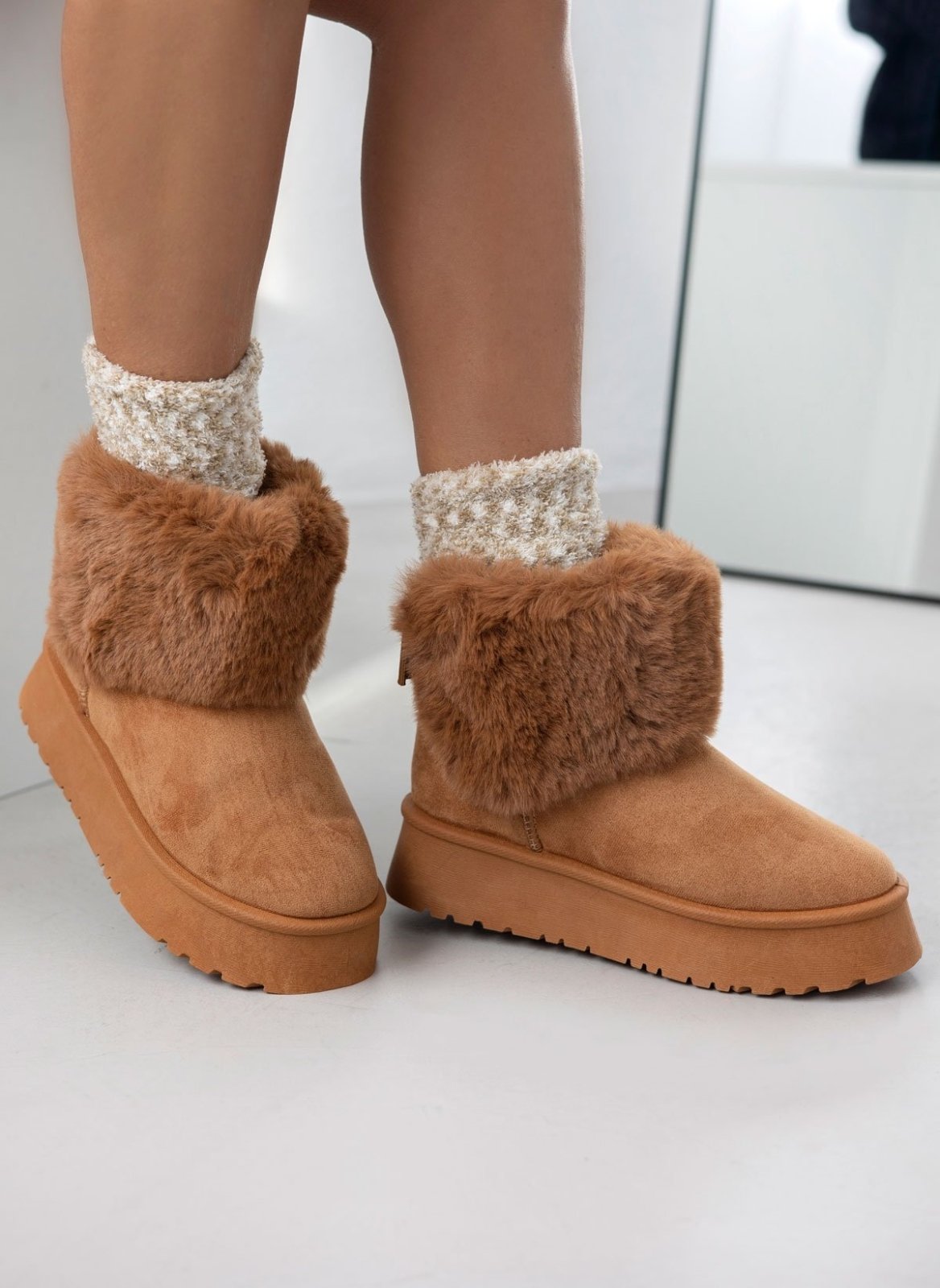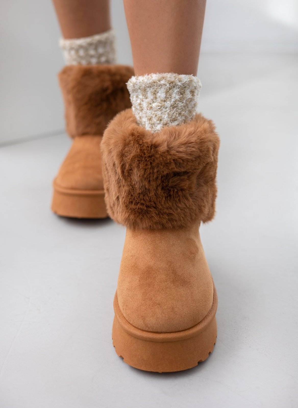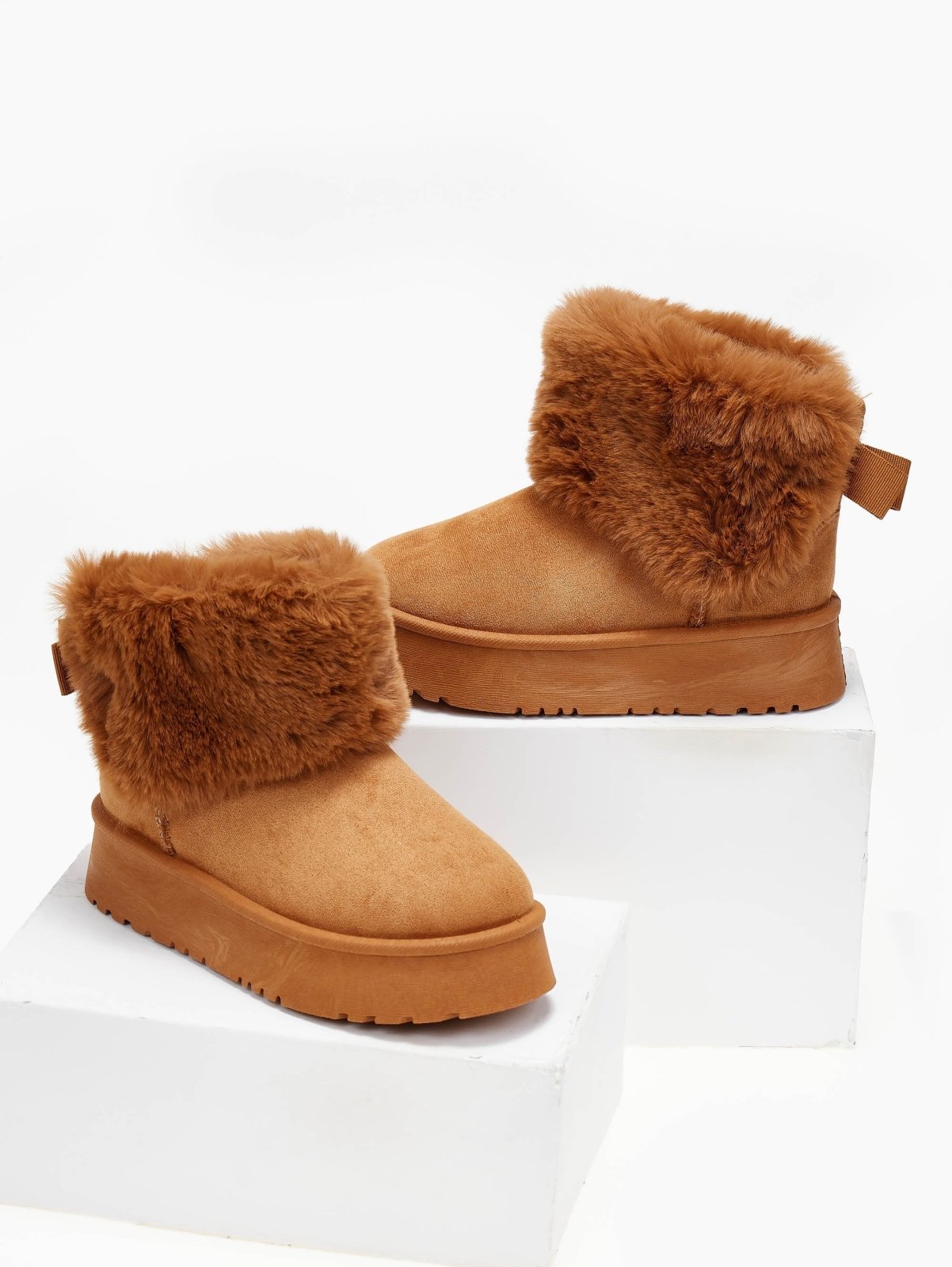 Μποτάκια suede με συνθετική γούνα - Κάμελ