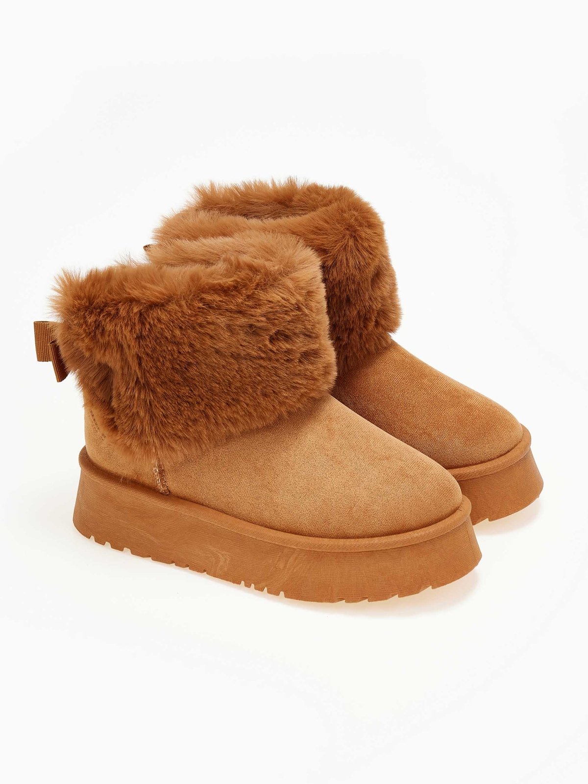 Μποτάκια suede με επένδυση από συνθετική γούνα. Έχουν σχέδιο φιογκάκι στο πίσω μέρος. Ψηλή σόλα.