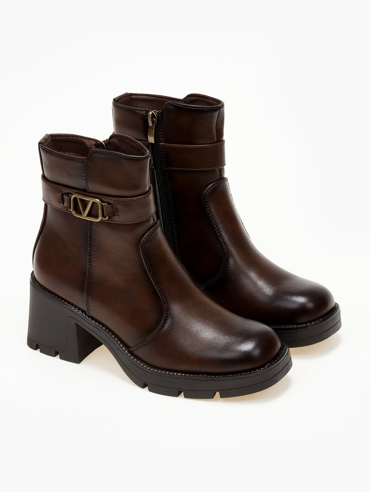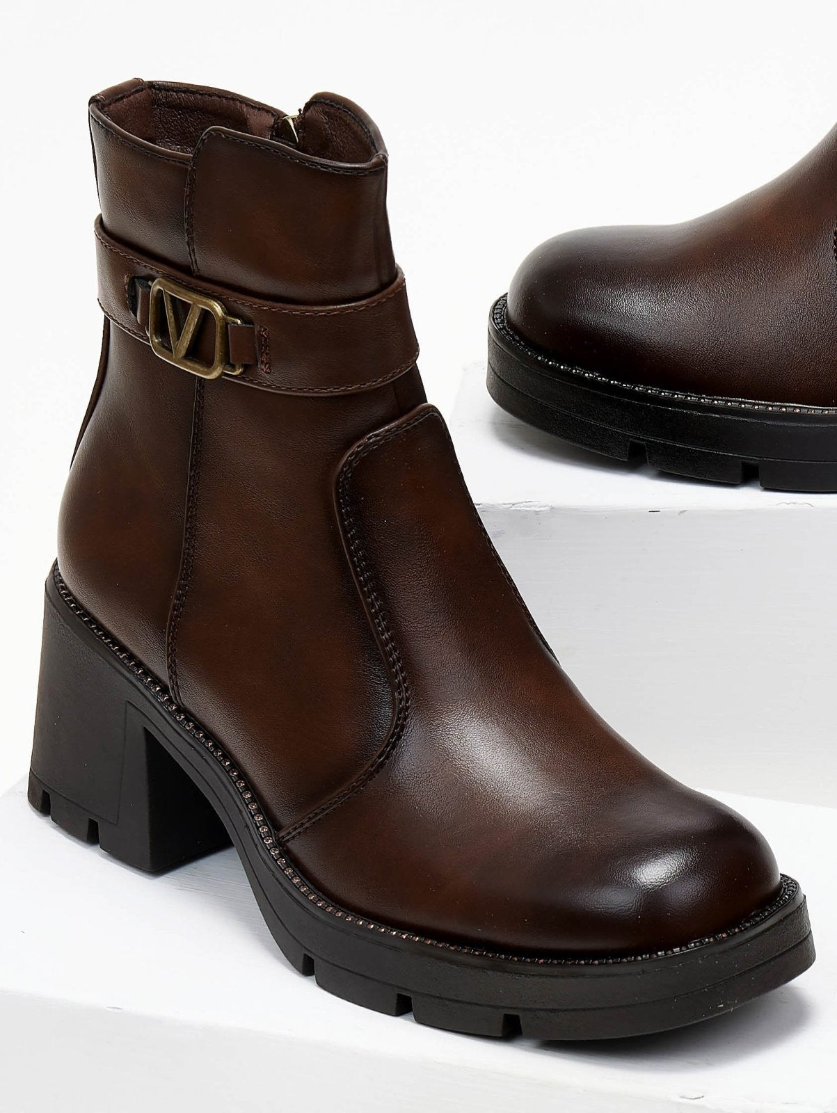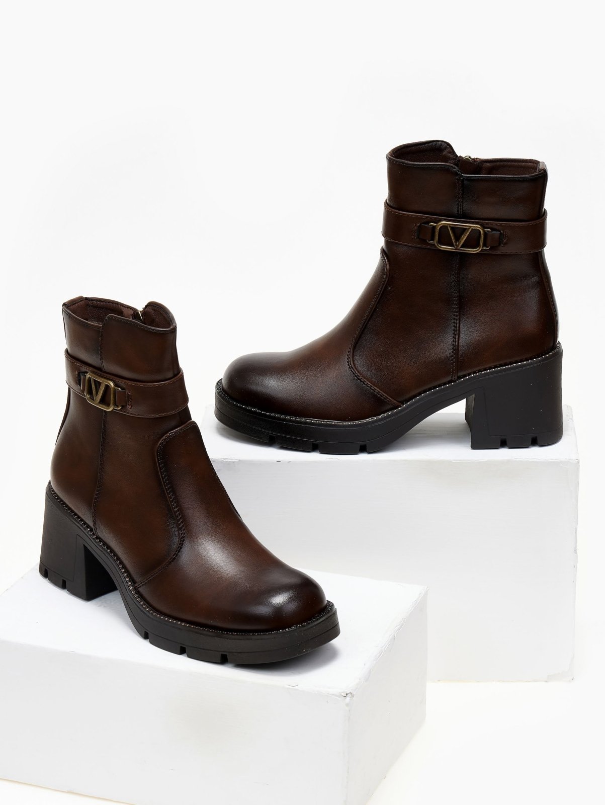 Μποτάκια με τοκά και strass - Καφέ