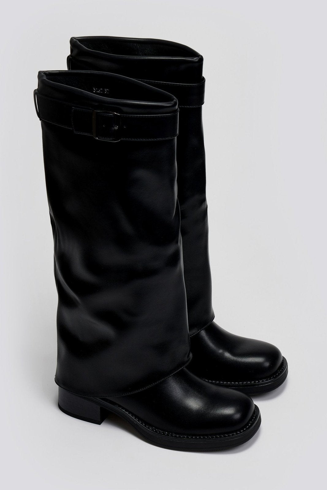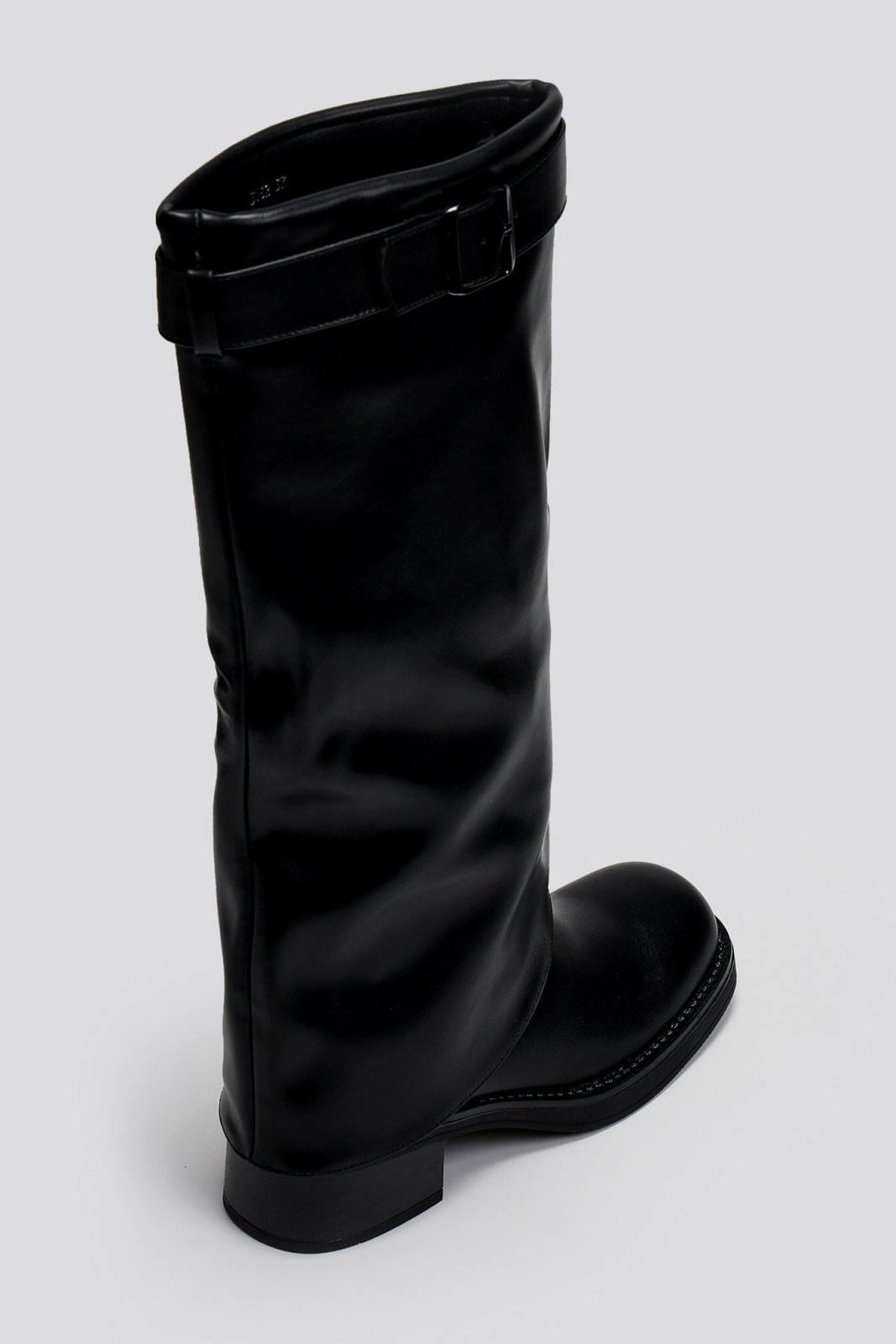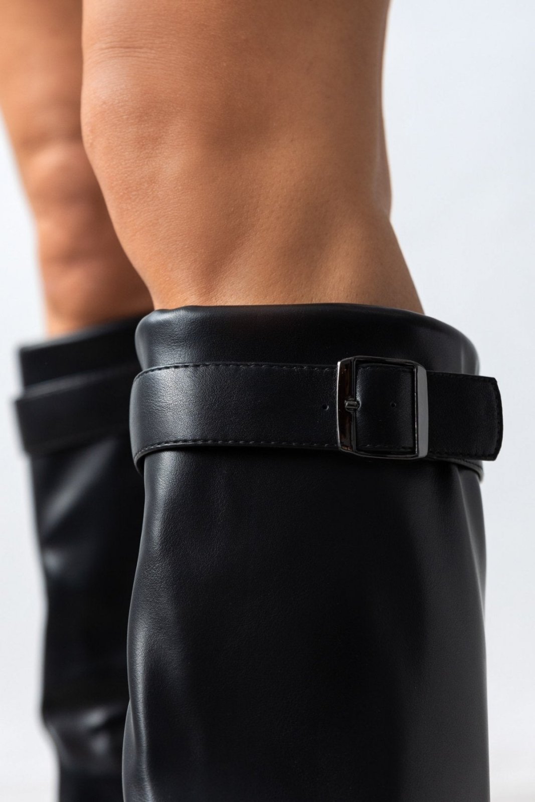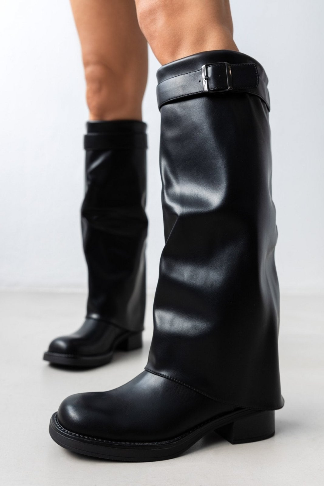 Μπότες casual με εφέ γκέτας. Ζωνάκι με μεταλλικό τοκά στο τελείωμα. Φερμουάρ στην εσωτερική τους πλευρά.