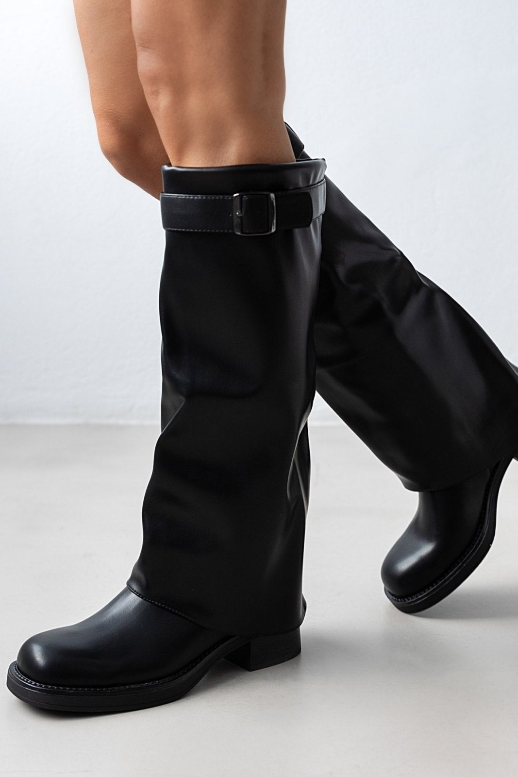 Μπότες casual με εφέ γκέτας - Μαύρο