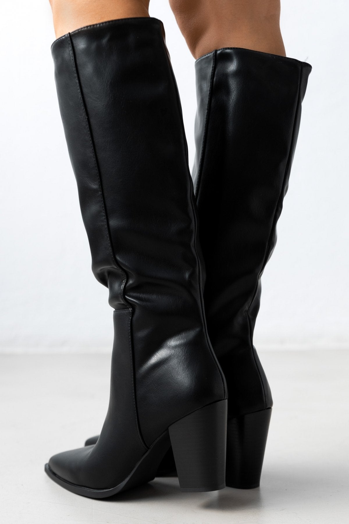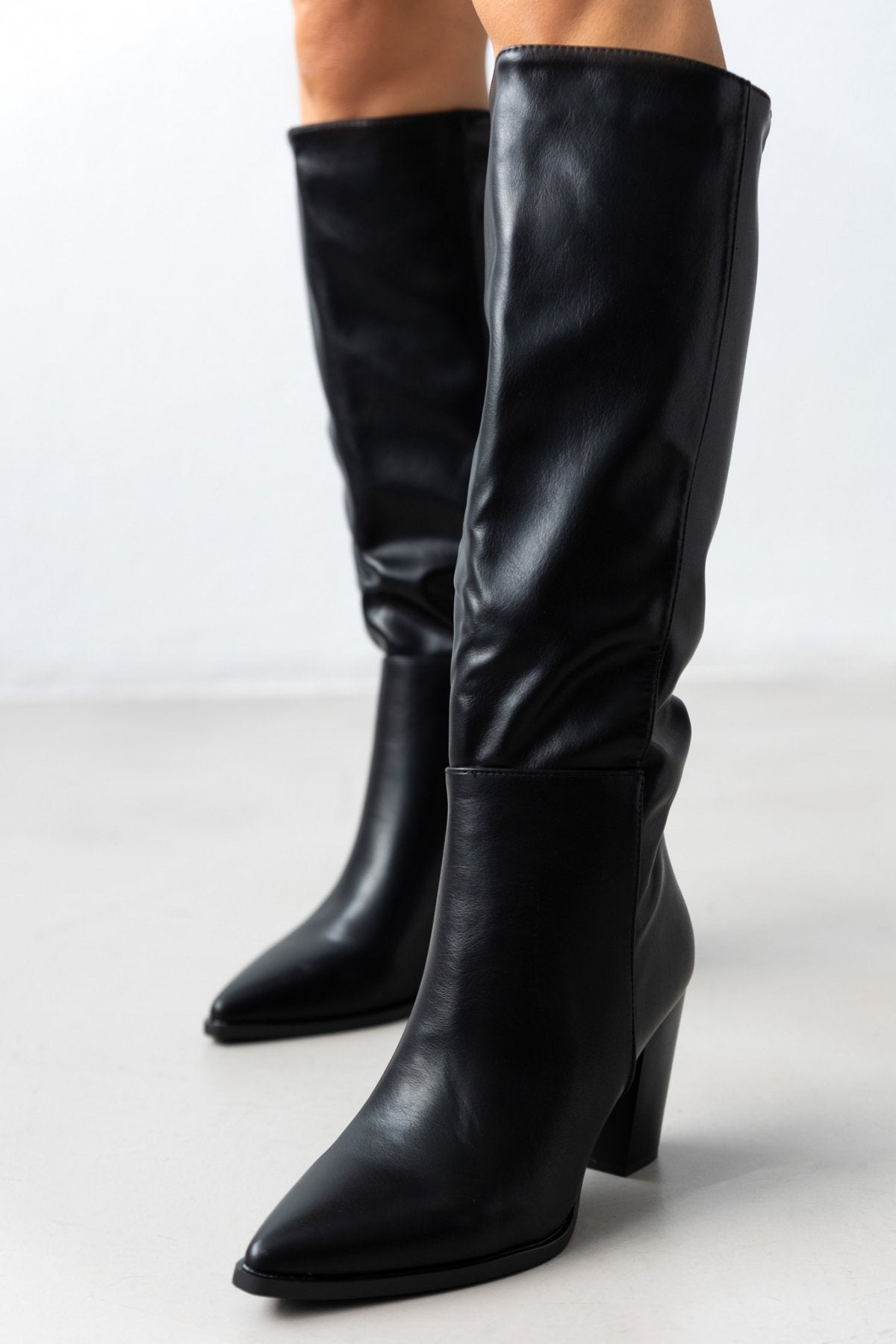 Μπότες μυτερές με χοντρό τακούνι - Μαύρο