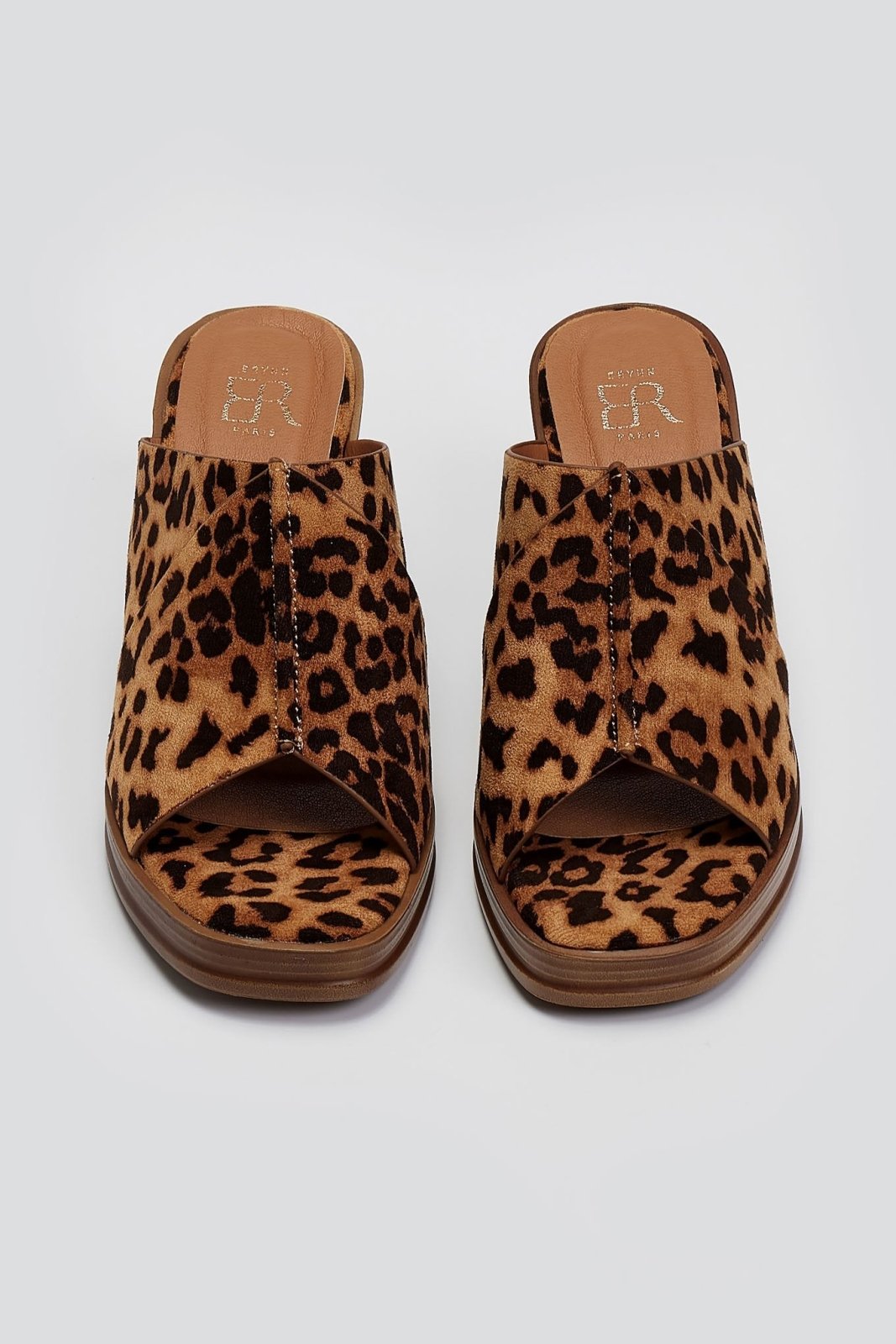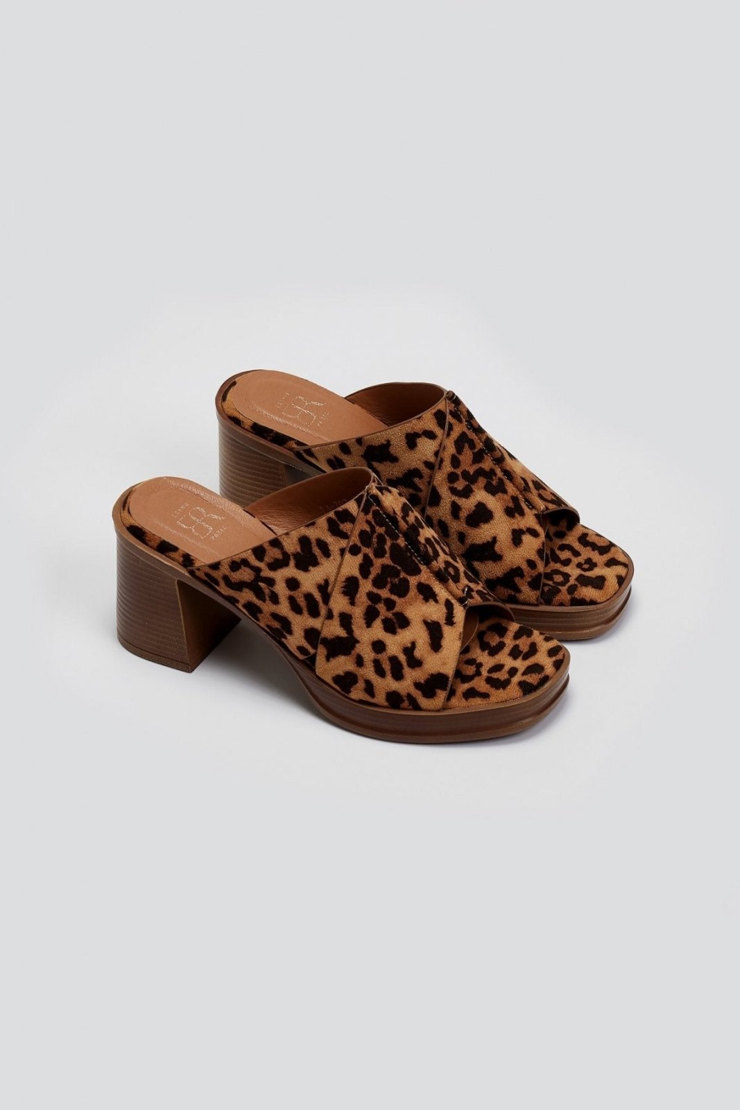 Mules με φαρδιά suede φάσα ERYNN. Έχουν μικρά ανοίγματα στο πλάι. Ψηλό χοντρό τακούνι με φιάπα.Ελαφριά σόλα.