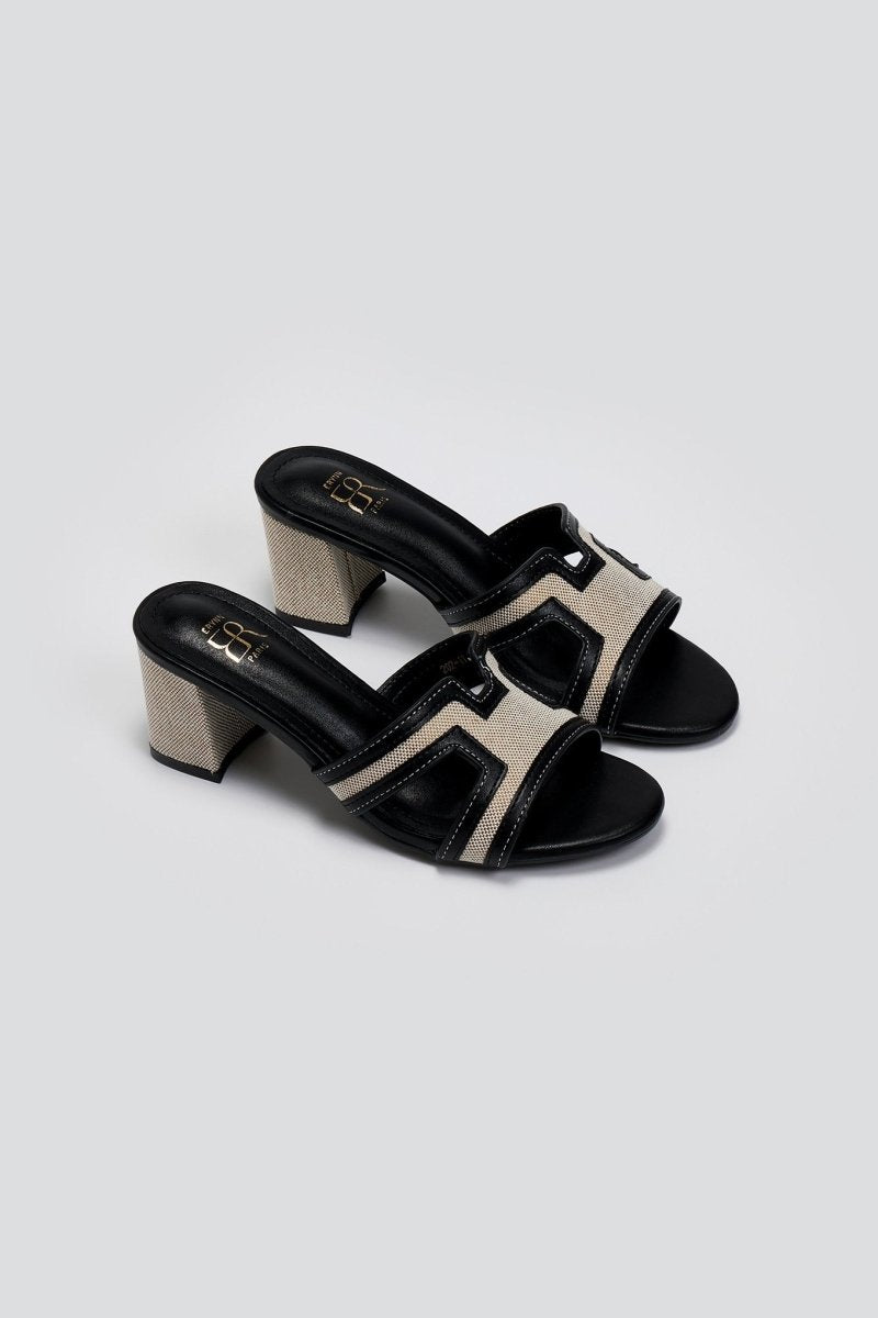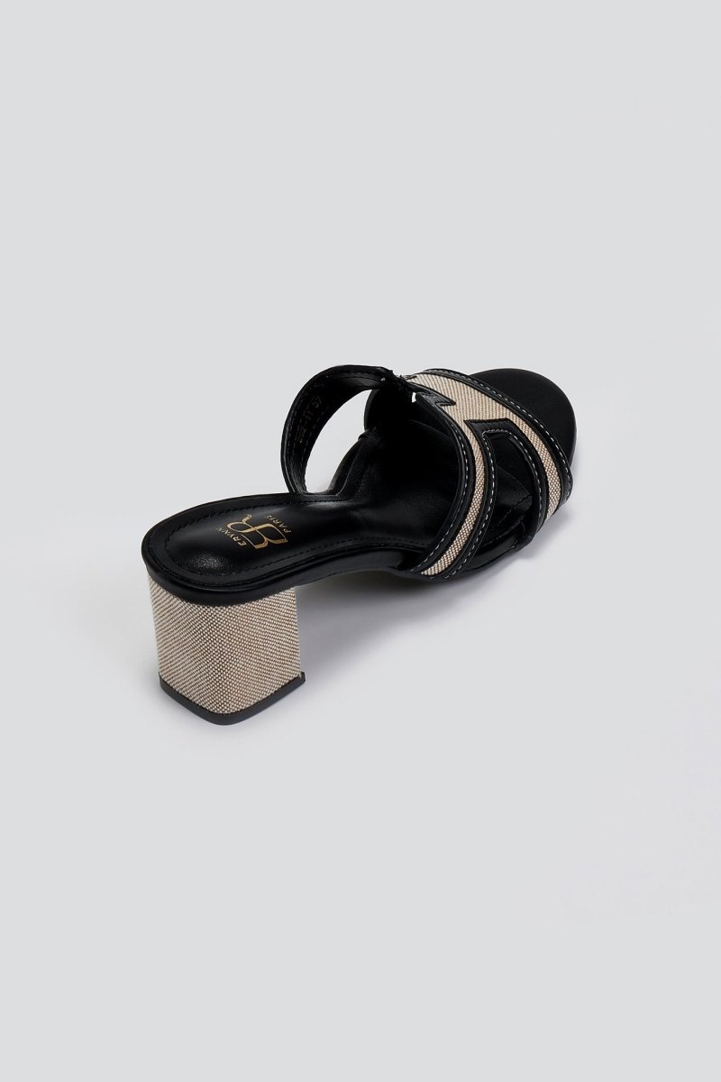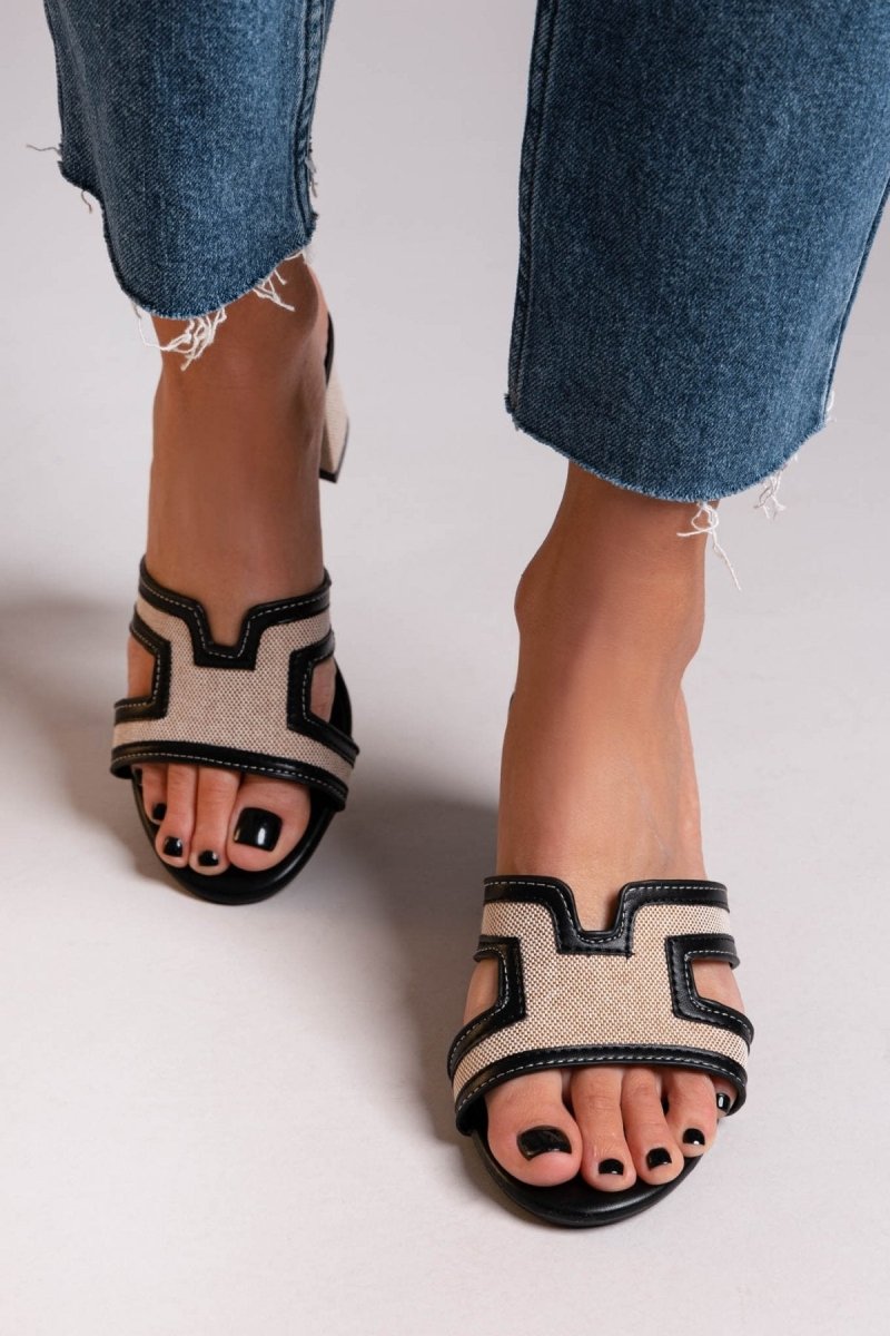Mules ανοιχτά με ύφασμα ERYNN. Φαρδιά φάσα με ανοίγματα. Χαμηλό τετράγωνο τακούνι.