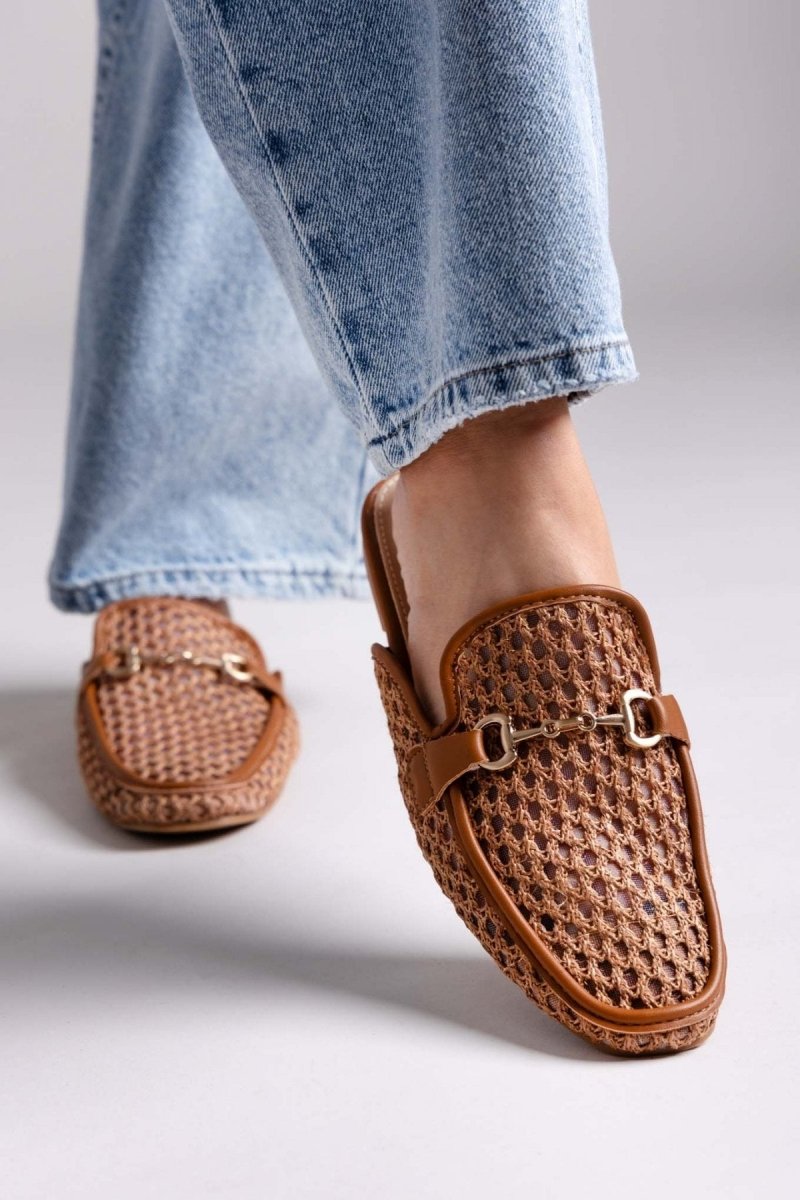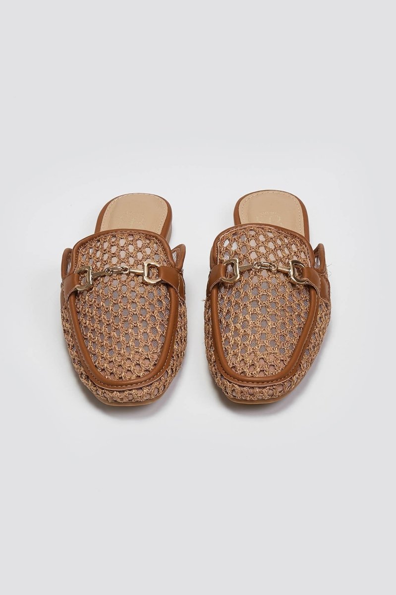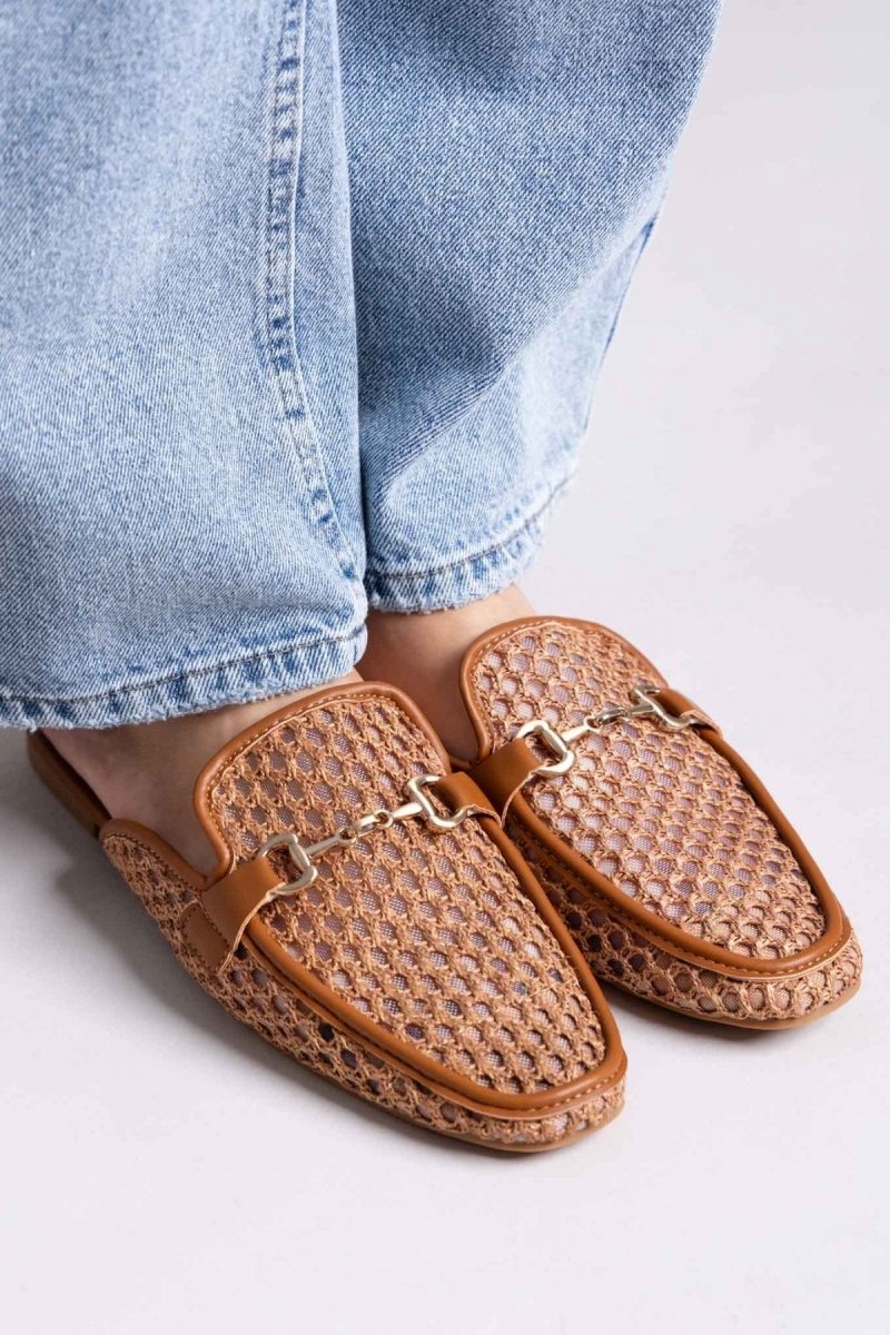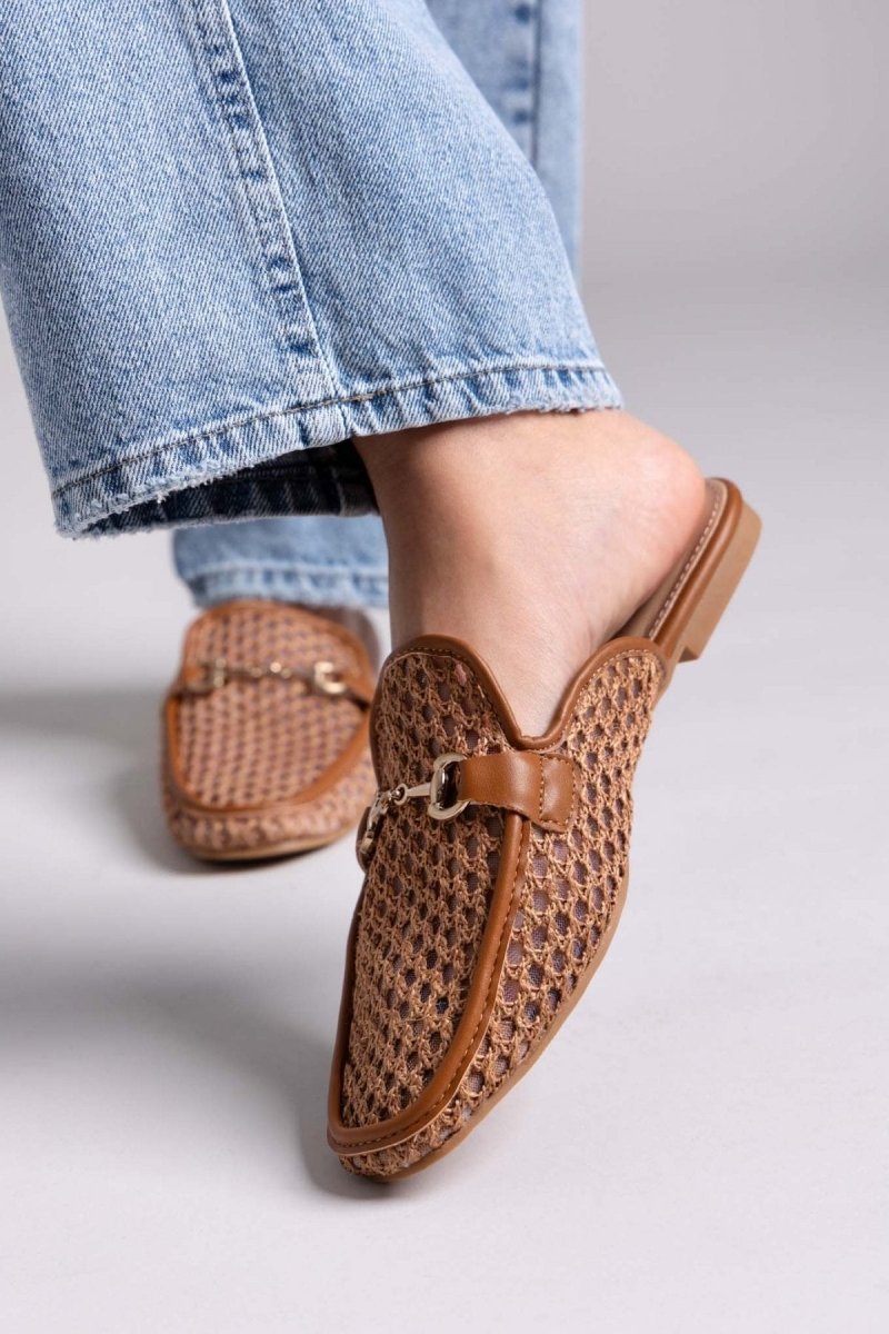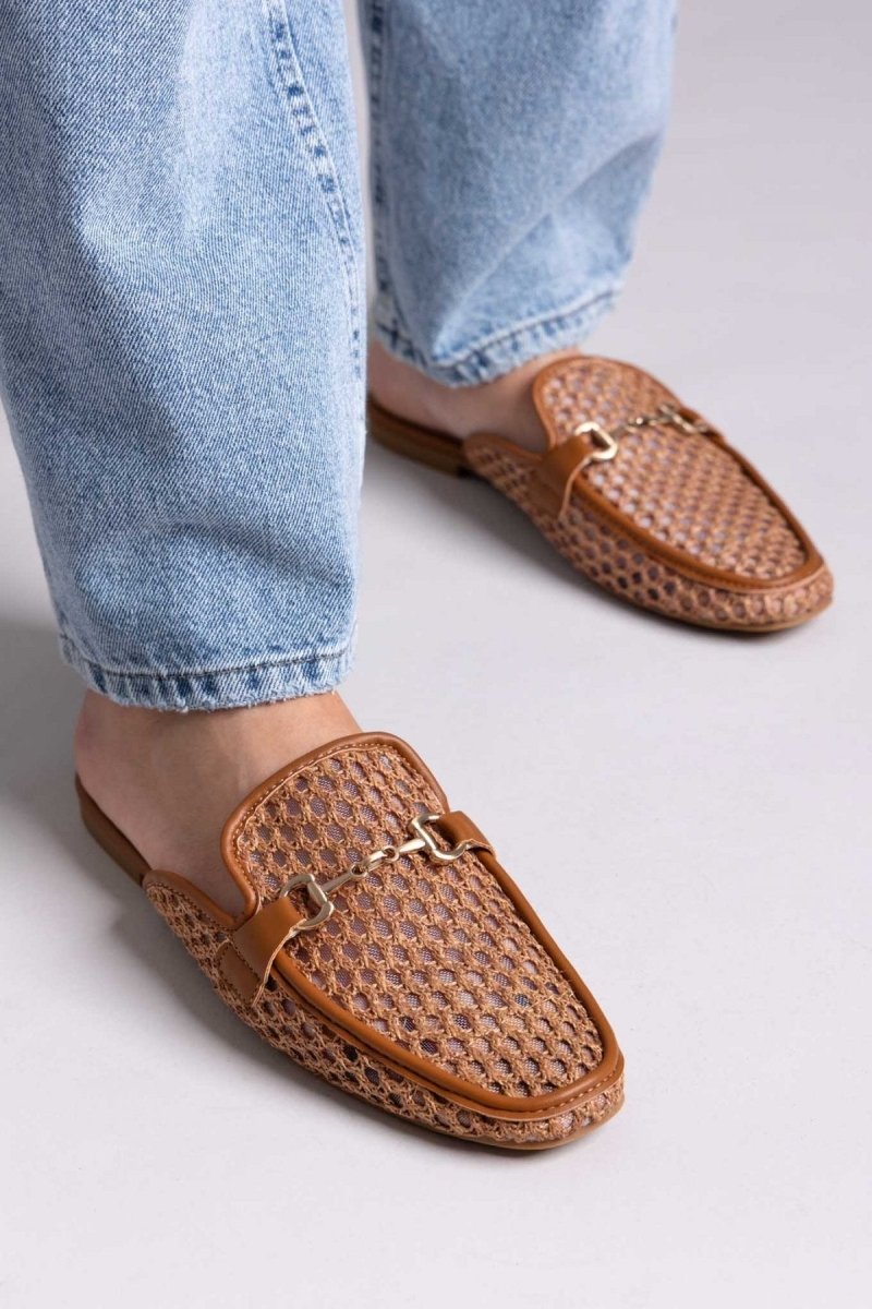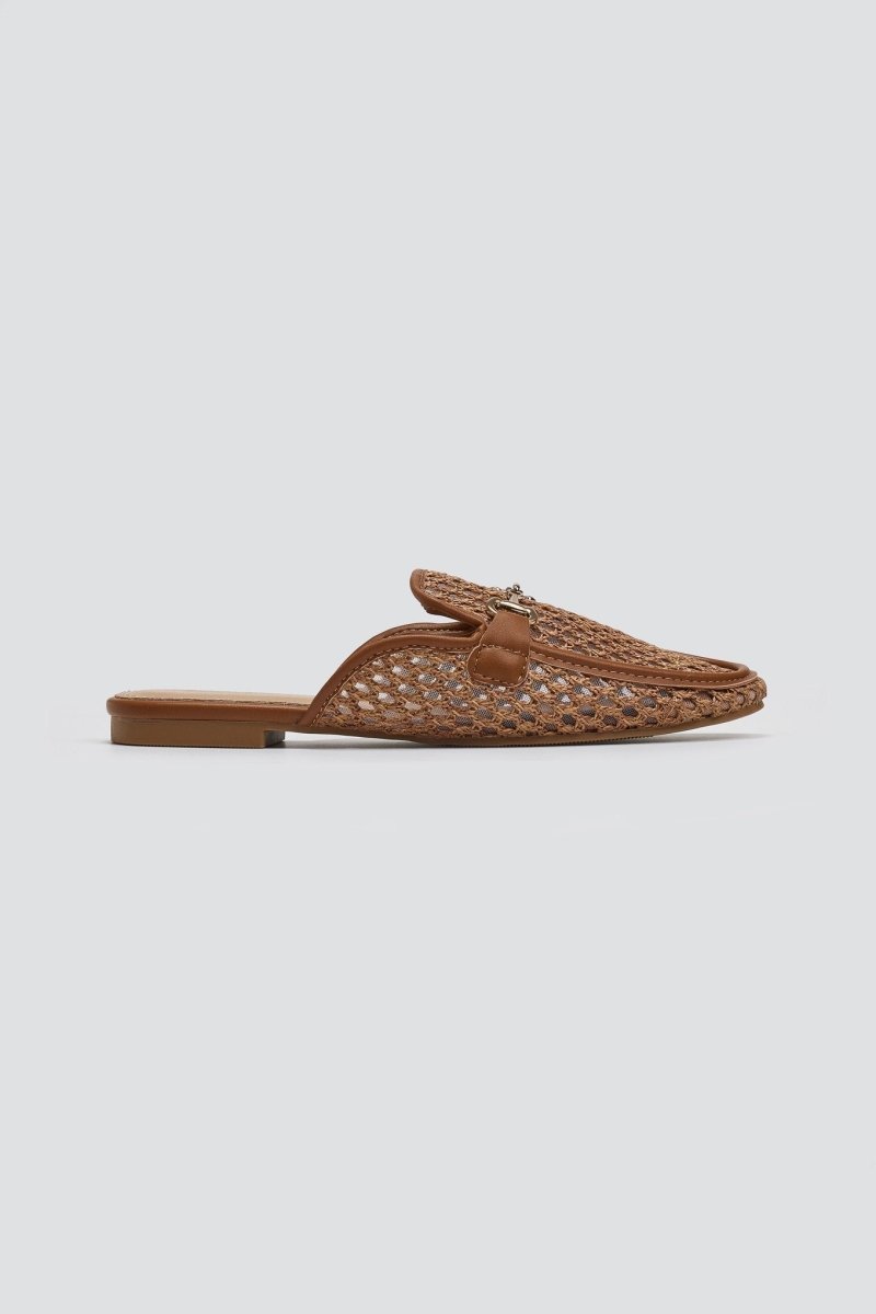 Mules φλατ με διαφάνεια και πλεκτό σχέδιο ERYNN. Μεταλλικό διακοσμητικό στο επάνω μέρος.