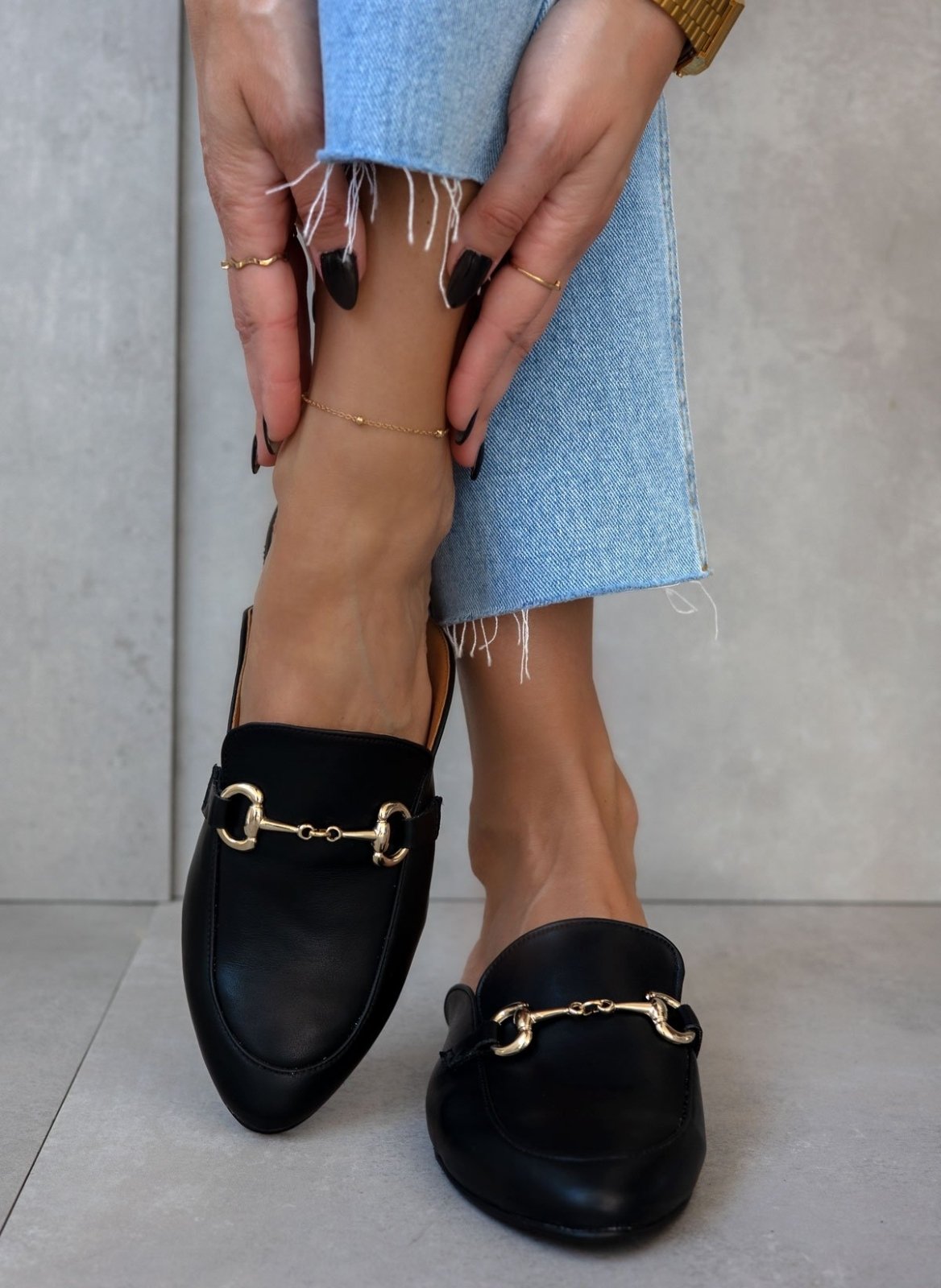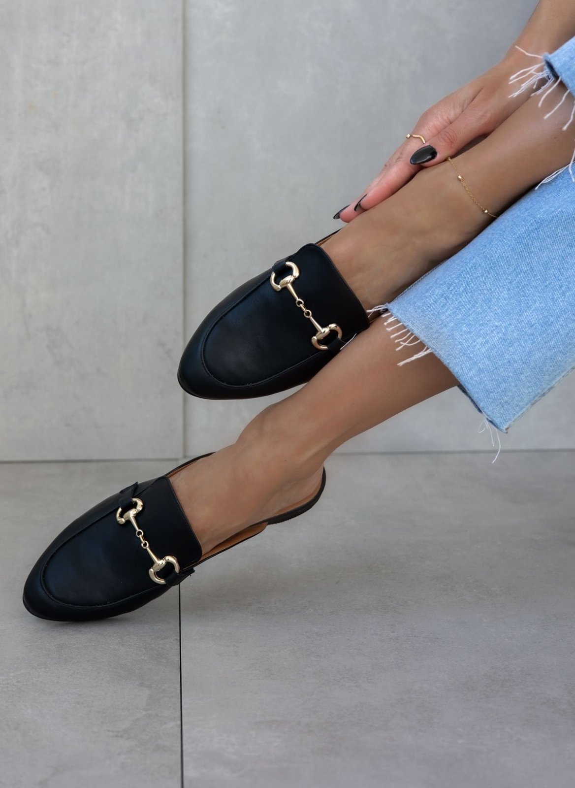 Mules φλατ με μεταλλικό διακοσμητικό TFP - Μαύρο