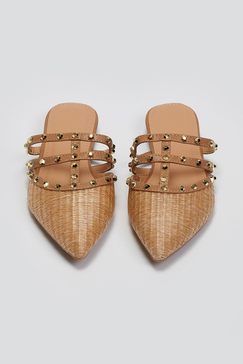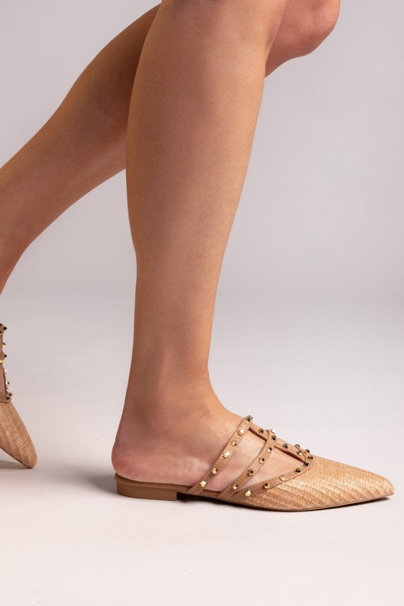 Mules μυτερά από ψάθα ERYNN. Σχέδιο με λουράκια και μεταλλικά τρουκς.