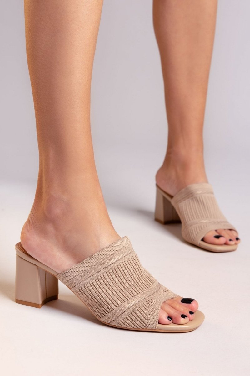 Mules με πλεκτό σχέδιο ERYNN. Χωστή φαρδιά φάσα. Χαμηλό τετράγωνο τακούνι.