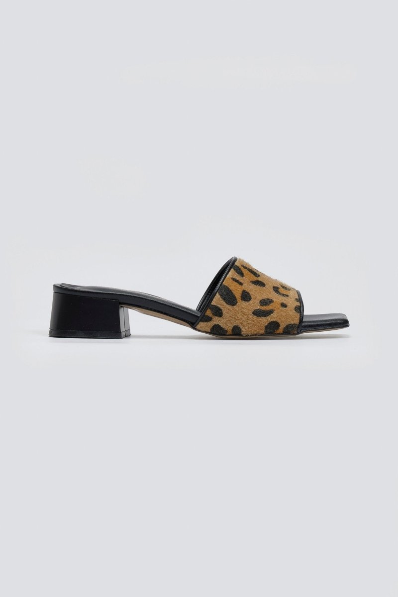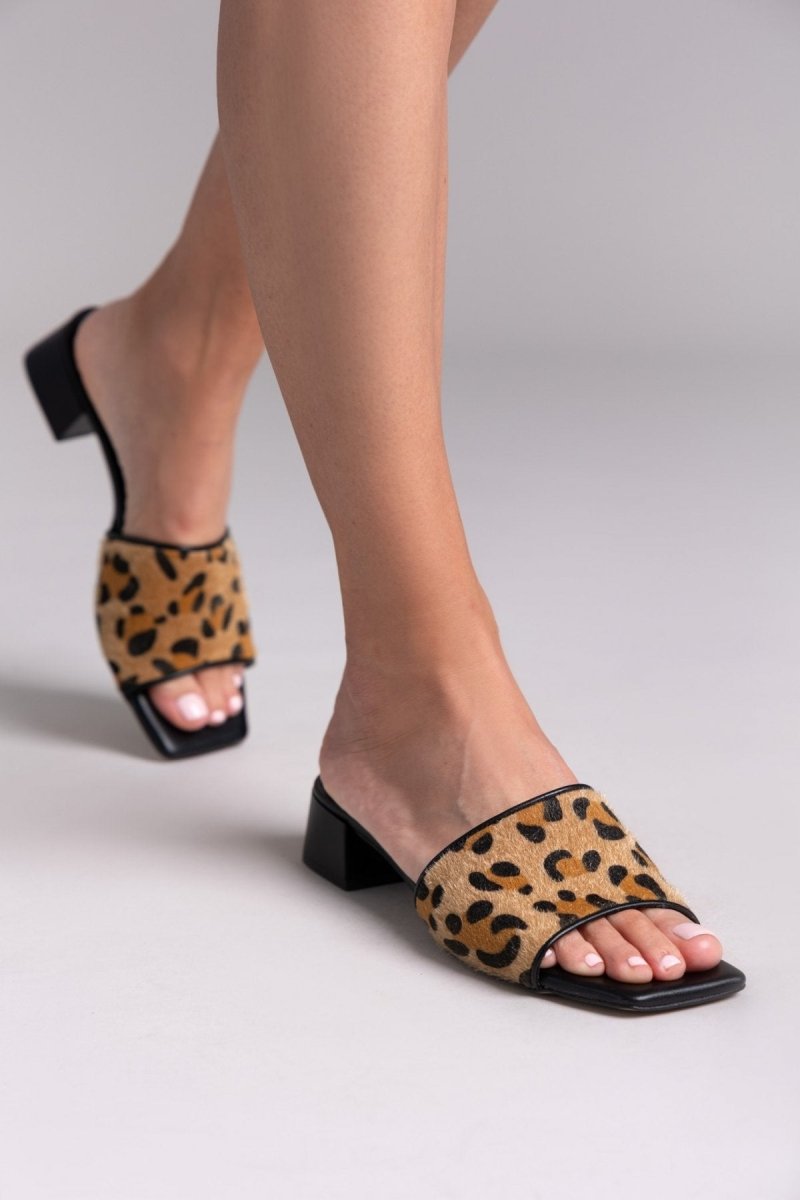 Mules με ponyskin φάσα και animal print TFP. Χαμηλό τακούνι. Ελληνικής κατασκευής.