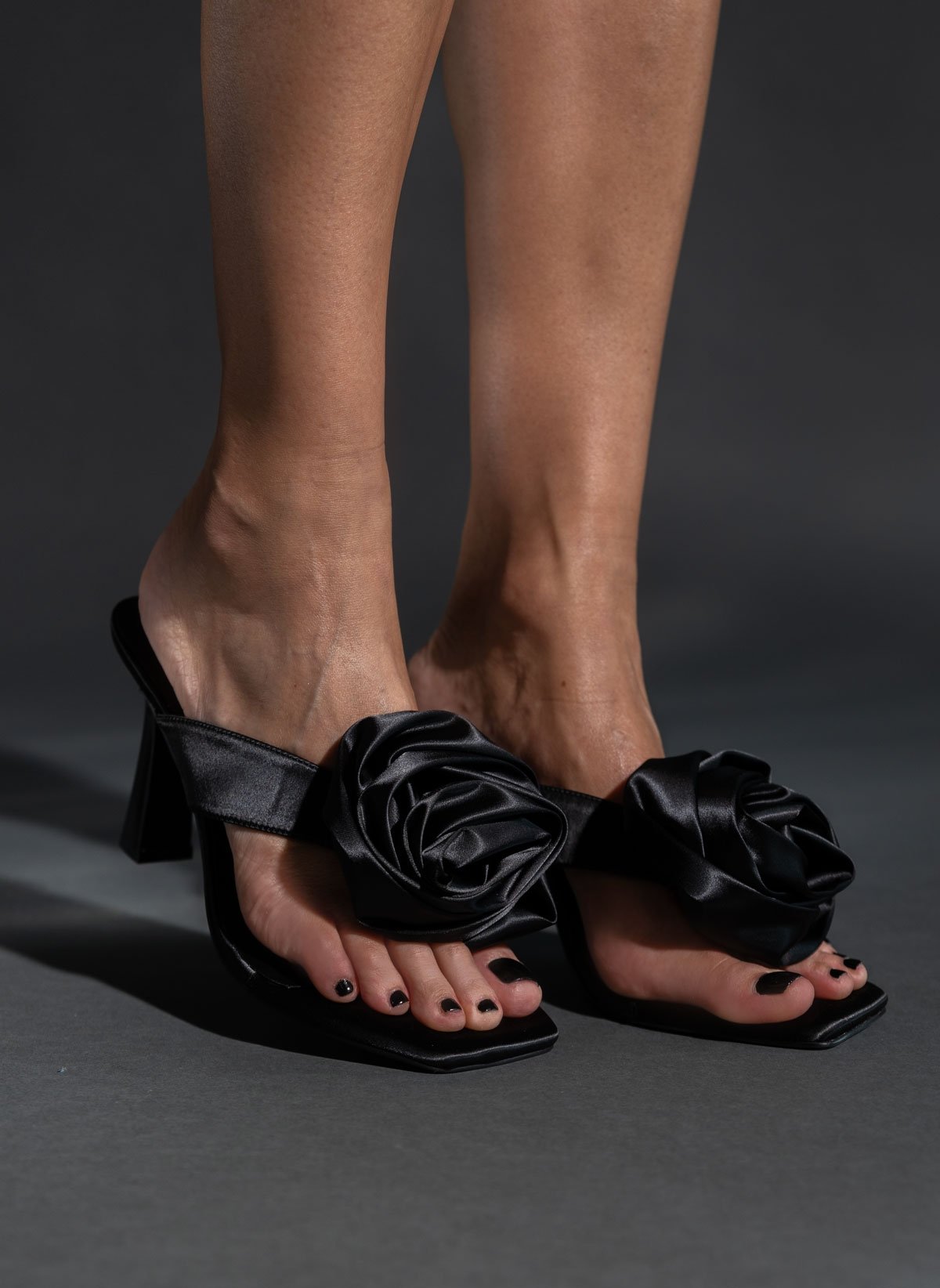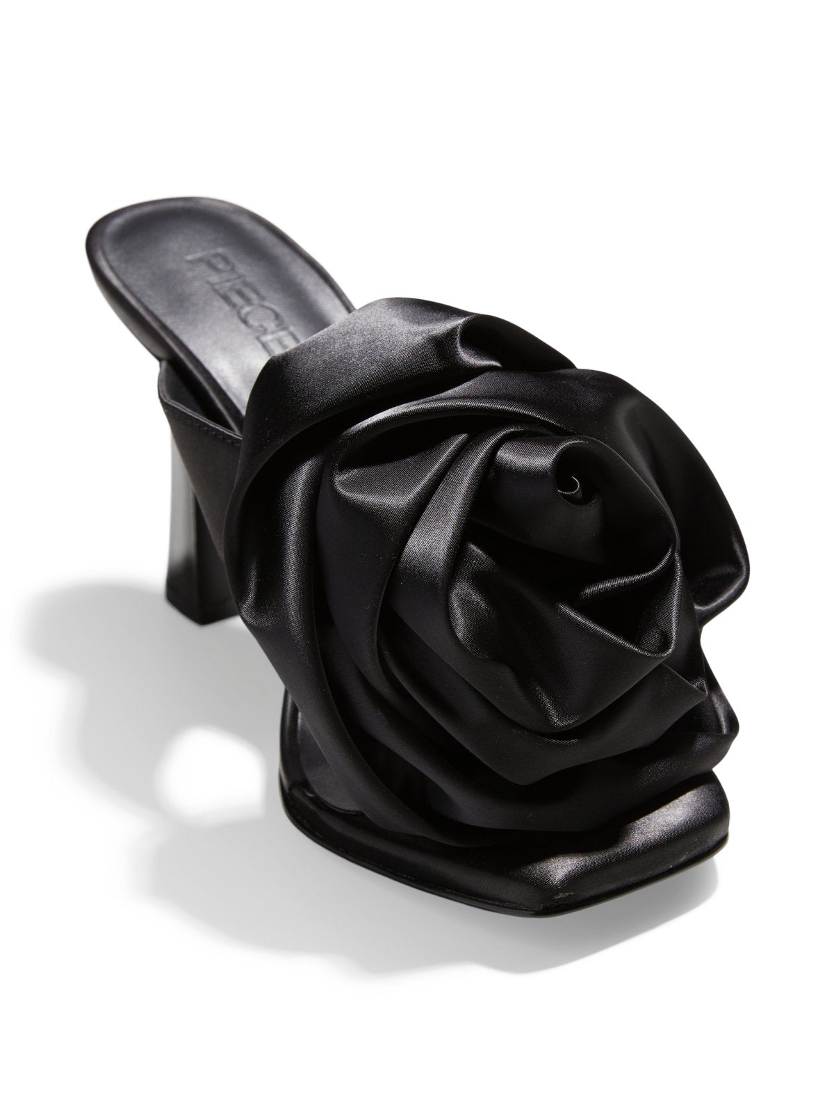 Mules σατέν με oversized λουλούδι PIECES 17146627 - Μαύρο