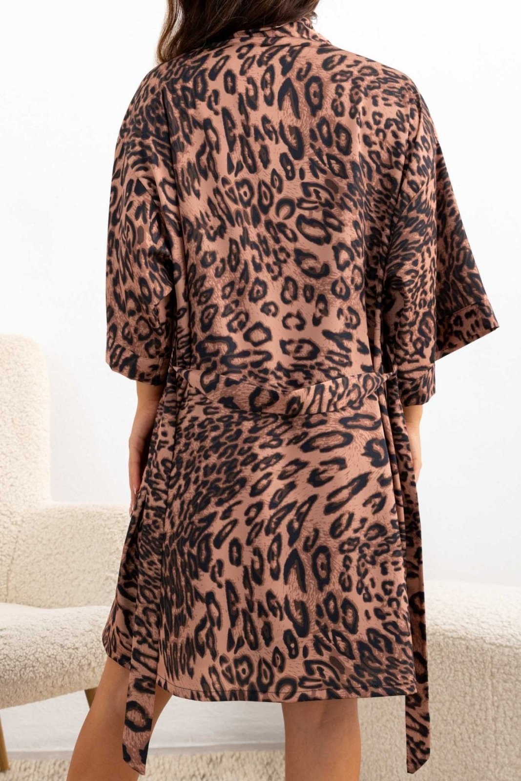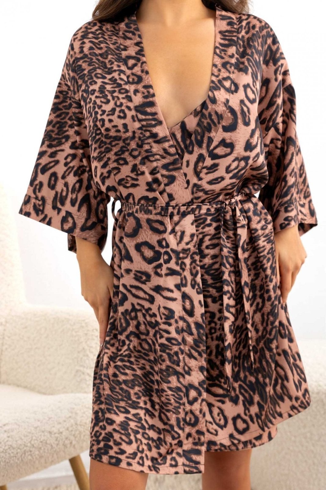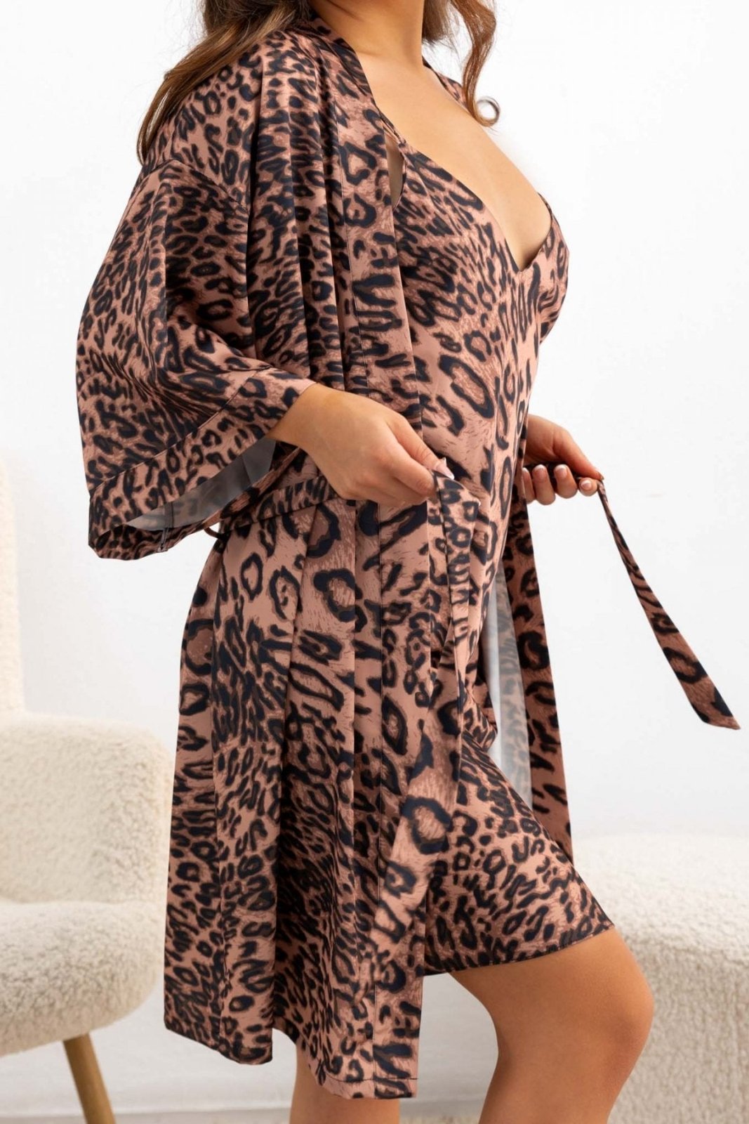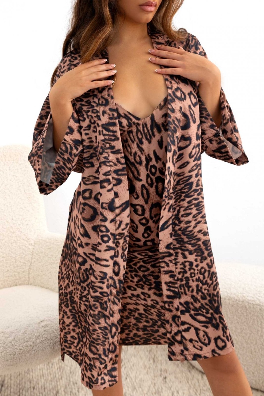 Νυχτικό σατέν με print και ρόμπα - Caramel
