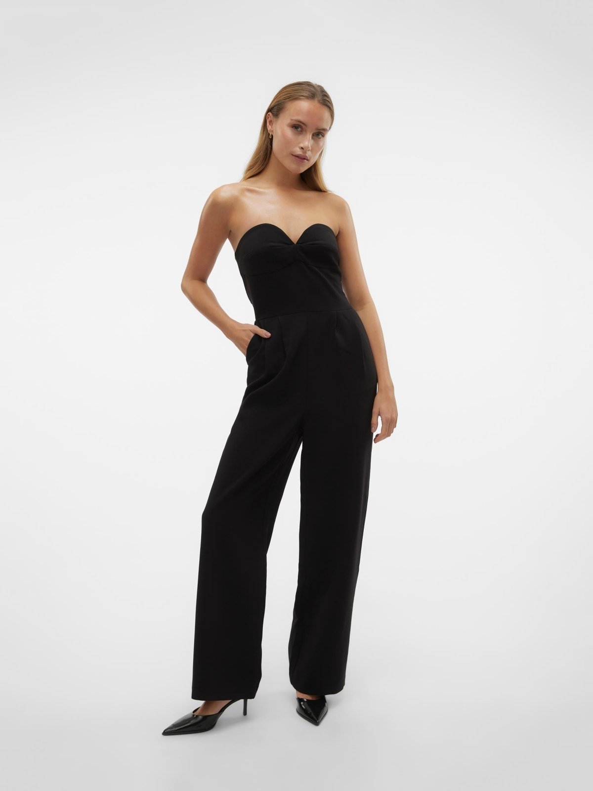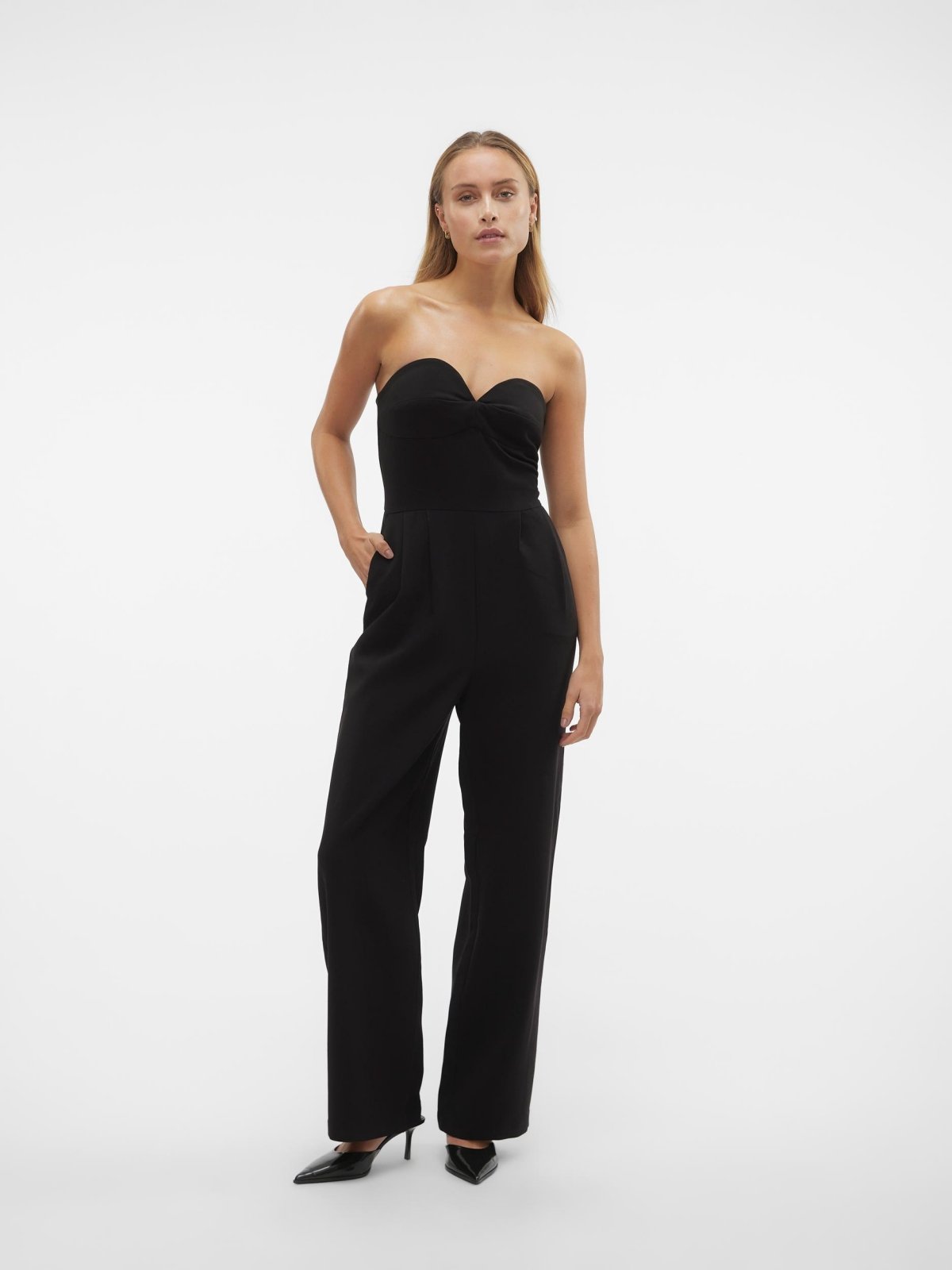 Ολόσωμη φόρμα strapless Aware by Vero Moda. Έχει φαρδιά μπατζάκια με πιέτες. Τσέπες στο πλάι. Κλείνει με φερμουάρ στο πίσω μέρος.