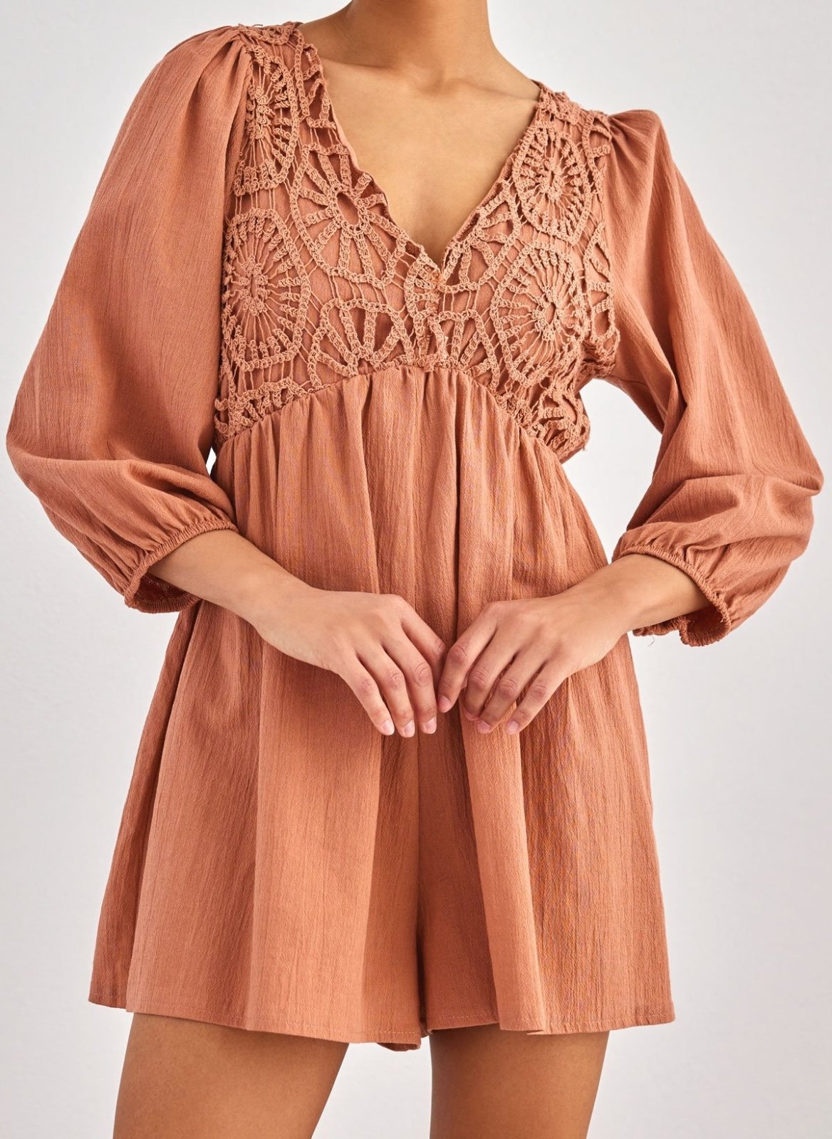 Ολόσωμο σορτς με crocchet σχέδιο - Κεραμιδί