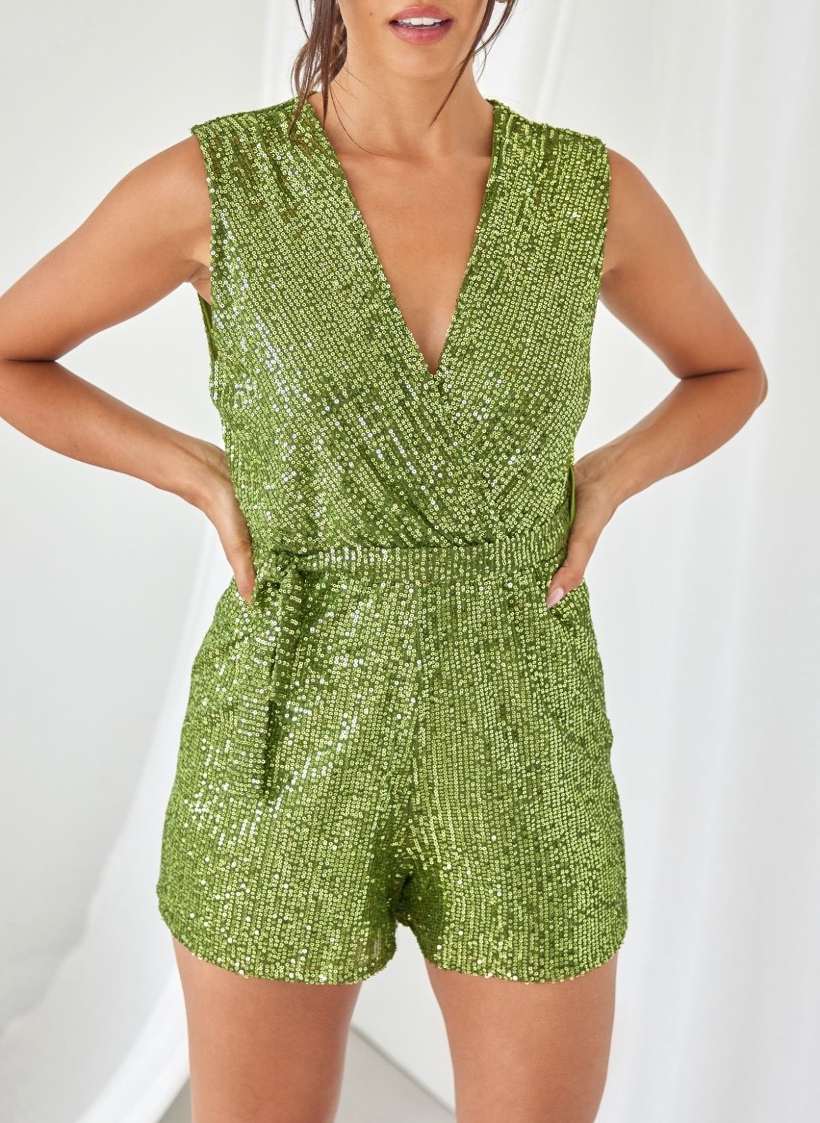 Ολόσωμο σορτς με παγιέτες - Πράσινο